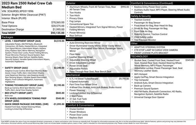Get ready to hit the road in this Ram 2500, a standout choice for drivers looking for reliability, performance, and style! This impressive vehicle is packed with premium features designed to make every drive more enjoyable. Price excludes tax, title, license fee, government fees, and $449 dealer documentary service fee. While every reasonable effort is made to ensure accuracy, we are not responsible for errors or omissions, and vehicles may be sold prior to inquiry—please contact the dealer to confirm availability. All financing is subject to approved credit. Whether you’re searching for used cars in Salt Lake City, a dependable SUV, or a powerful truck, this Ram 2500 delivers everything you need and more. Visit Salt Lake Valley Chrysler Dodge Jeep Ram today to test drive or explore our entire selection of quality pre-owned vehicles. Don’t wait - shop online at www.slvcdjr.com or call 801-484-8755 to learn more! This amazing vehicle comes loaded with options like Bed Utility Group (LED Bed Lighting, MOPAR Deployable Bed Step, and MOPAR Spray In Bedliner), Level 1 Equipment Group (12'' Touchscreen Display, 4G LTE Wi-Fi Hot Spot, 9 Alpine Speakers w/Subwoofer, Alexa Built-In, Apple CarPlay, Auto Adjust In Reverse Exterior Mirrors, Auto Dim Exterior Mirror, Auto High Beam Headlamp Control, Auto Power-Folding Mirrors, Auto-Dimming Exterior Passenger Mirror, Black Exterior Mirrors, Body Color Door Handles, Connected Travel & Traffic Services, Connectivity - US/Canada, Disassociated Touchscreen Display, Exterior Mirrors Courtesy Lamps, Exterior Mirrors w/Heating Element, Exterior Mirrors w/Memory, Exterior Mirrors w/Supplemental Signals, For Details, Visit DriveUconnect.com, For More Info, Call 800-643-2112, Forward & Reverse Utility Lights, Front Door Accent Lighting, Global Telematics Box Module (TBM), Google Android Auto, GPS Antenna Input, GPS Navigation, HD Radio, Integrated Voice Command w/Bluetooth, LED Dome Lamp w/On/Off Switch, LED Interior Lighting, Mirror Running Lights, Off-Road Information Pages, Overhead LED Lamps, Power Adjust Mirrors, Power Adjustable Convex Aux Mirrors, Power Adjustable Pedals w/Memory, Power Heated Fold Telescopic Mirrors w/Memory, Power Telescoping Mirrors, Premium Overhead Console, Radio: Uconnect 5 Nav w/12.0'' Display, Rain Sensitive Windshield Wipers, Rear Door Accent Lighting, Rear Power Sliding Window, Rear Window Defroster, Remote Proximity Keyless Entry, Security Alarm, Selectable Tire Fill Alert, SiriusXM Radio Service, SiriusXM w/360L, and Trailer Tow Pages), Quick Order Package 2HR Rebel (2 Way Rear Headrest Seat, 220 Amp Alternator, 4 Way Front Headrests, 40/20/40 Split Bench Seat, 4x4 Badge, Black Wheel Center Hub, Cloth Power Bench Seat w/Emboss Tread Pattern (B9), Conventional Differential Front Axle, Electric Shift-On-The-Fly Transfer Case, Folding Flat Load Floor Storage, Front Armrest w/Cupholders, Front Center Seat Cushion Storage, Heated Front Seats, Heated Steering Wheel, High Back Seats, Limited Slip Rear Differential w/Electronic Lock, Manual Adjust 4-Way Front Passenger Seat, Painted Semi-Texture Film Instrument Panel Bezels, Power 2-Way Driver Lumbar Adjust, Power Adjust 8-Way Driver Seat, Rear 60/40 Folding Seat, Storage Tray, and Wheels: 18'' x 8.0'' Black Diamond Cut Aluminum), Safety Group (Adaptive Cruise Control w/Stop, Adaptive Steering System, Blind Spot & Cross Path Detection, Full Speed Forward Collision Warning Plus, and Lane Keep Assist), Towing Technology Group (CTR Stop Lamp w/Cargo View Camera, Surround View Camera System, and Trailer Reverse Guidance), 3.73 Axle Ratio, 4-Wheel Disc Brakes, 5th Wheel/Gooseneck Towing Prep Group, 6 Speakers, ABS brakes, Active Noise Control System, Adjustable pedals, Air Conditioning, Alloy wheels, AM/FM radio: SiriusXM with 360L, Apple CarPlay/Android Auto, Auto-dimming Rear-View mirror, Automatic temperature control, Block heater, Brake assist, Cloth Power Bench Seat w/Emboss Tread Pattern, Compass, Delay-off headligh
