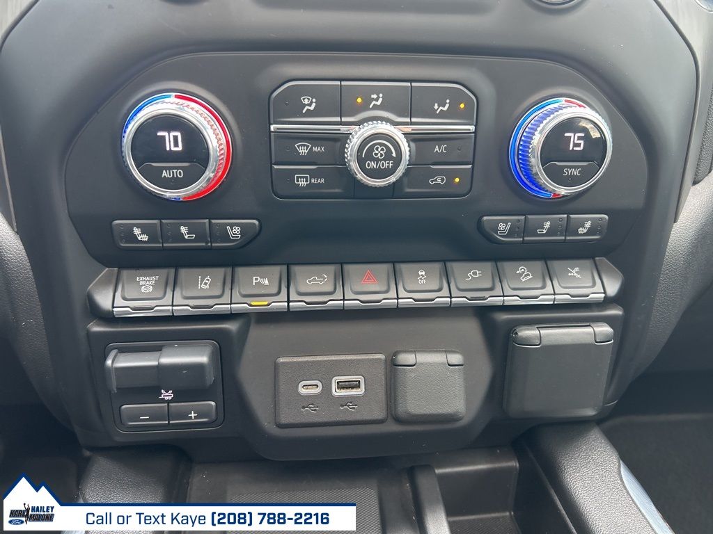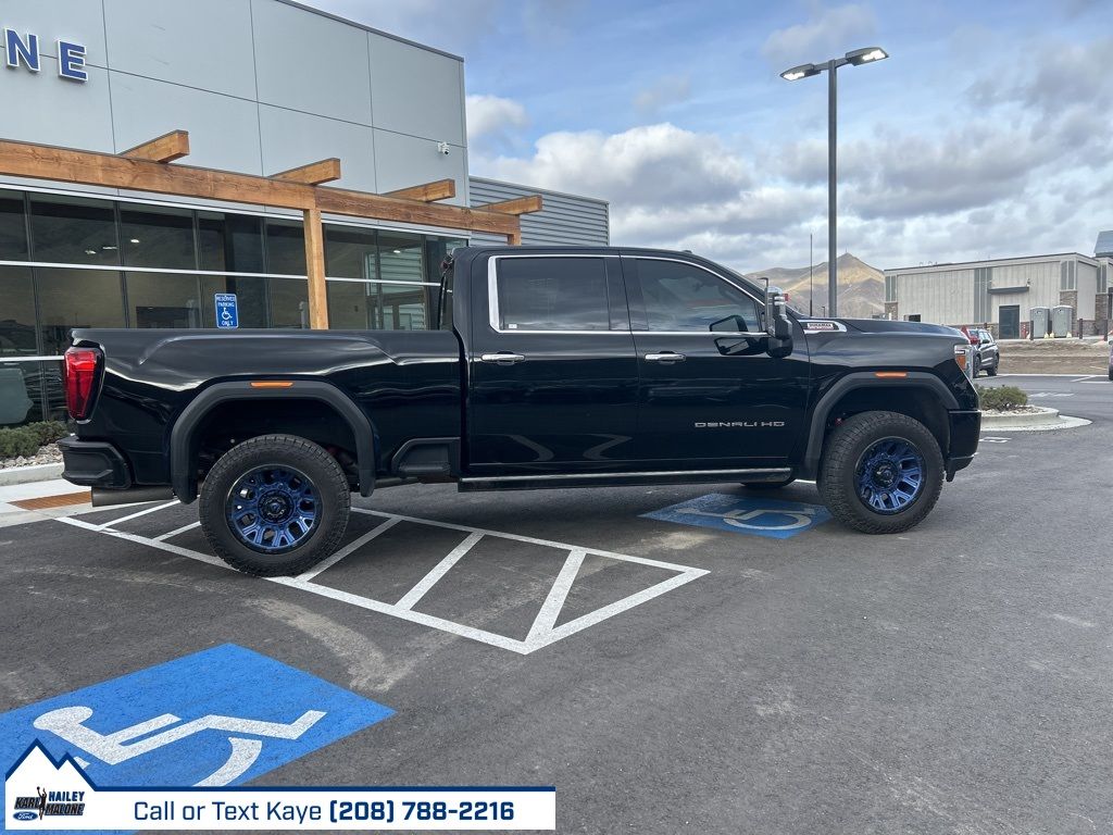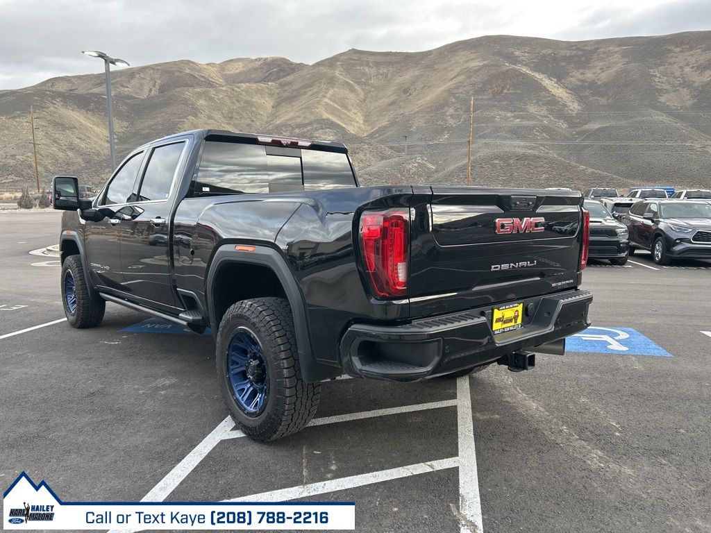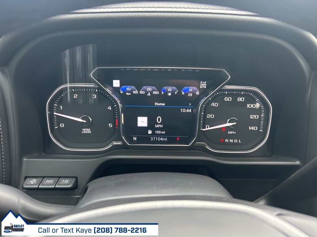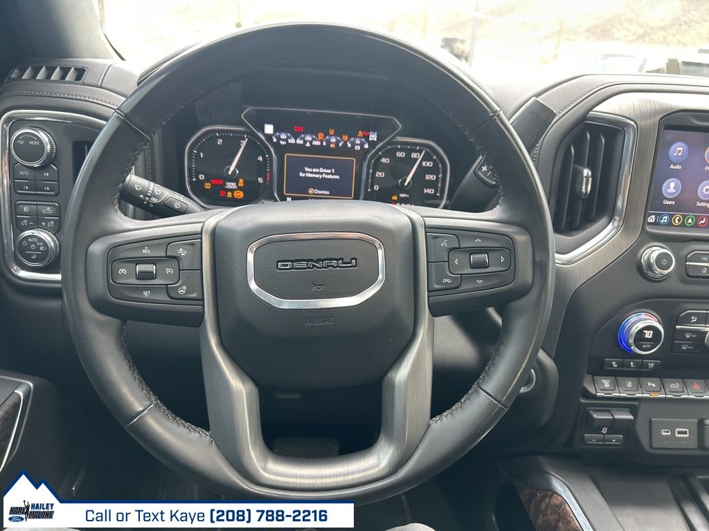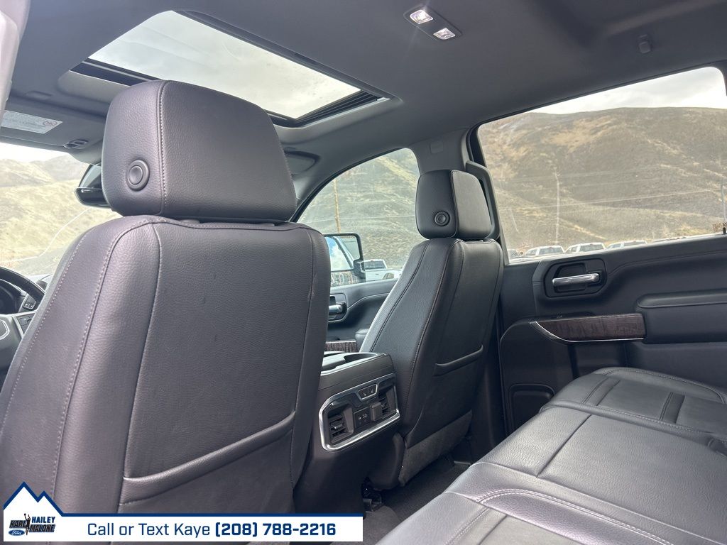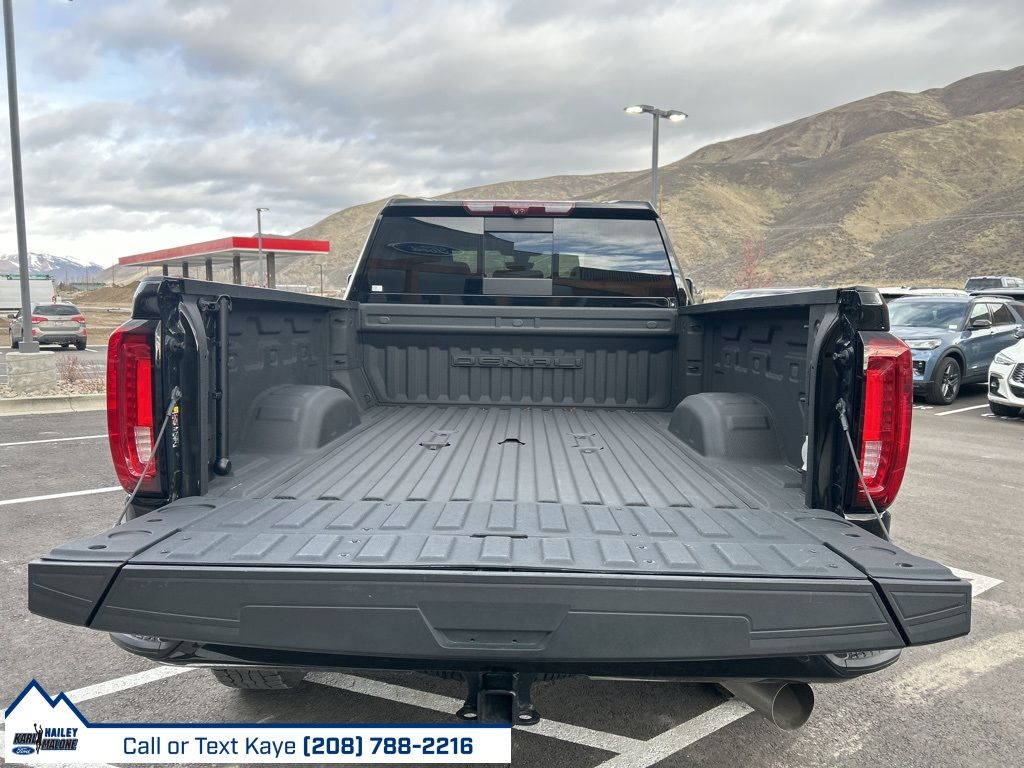 10-Speed Automatic, 4WD, Black Leather, 10-Way Power Driver Seat Adjuster w/Lumbar, 10-Way Power Passenger Seat Adjuster w/Lumbar, 12-Volt Rear Auxiliary Power Outlet, 120-Volt Bed Mounted Power Outlet, 120-Volt Instrument Panel Power Outlet, 2 USB Ports (First Row), 2 USB Ports Inside Console, 2-Speed Active Transfer Case, 220 Amp Alternator, 2nd Row Dual USB Charge-Only Ports, 4-Wheel Disc Brakes, 6'' Rectangular Chromed Tubular Assist Steps, 7 Speakers, ABS brakes, Air Conditioning, Alloy wheels, AM/FM radio: SiriusXM with 360L, Apple CarPlay/Android Auto, Auto High-beam Headlights, Auto-dimming door mirrors, Auto-Dimming Inside Rearview Mirror w/Camera, Auto-dimming Rear-View mirror, Automatic Emergency Braking, Automatic temperature control, Bed View Camera w/2 Trailer Camera Provisions, Bose Premium 7 Speaker Sound System, Brake assist, Bumpers: body-color, Compass, Compass Located In Instrument Cluster, Deep-Tinted Glass, Delay-off headlights, Denali Ultimate Package, Driver Alert Package I, Driver Alert Package II, Driver door bin, Driver Memory, Driver vanity mirror, Dual front impact airbags, Dual front side impact airbags, Electric Rear-Window Defogger, Electrical Lock Control Steering Column, Electronic Stability Control, Engine Block Heater, Exhaust Brake, Floor-Mounted Center Console, Following Distance Indicator, Forge Perforated Leather-Appointed Seat Trim, Forward Collision Alert, Front anti-roll bar, Front Bucket Seats, Front Center Armrest, Front Chrome Recovery Hooks, Front dual zone A/C, Front fog lights, Front License Plate Kit, Front reading lights, Front wheel independent suspension, Fully automatic headlights, Garage door transmitter, Genuine wood console insert, Genuine wood door panel insert, GMC Connected Access Capable, Gooseneck/5th Wheel Prep Package, HD Rear Vision Camera, HD Surround Vision w/2 Trailer View Camera Provisions, Heated 2nd Row Outboard Seats, Heated door mirrors, Heated Driver & Front Outboard Passenger Seats, Heated front seats, Heated rear seats, Heated steering wheel, Heavy-Duty 80 Amp Battery, Hill Descent Control, Hitch Guidance w/Hitch View, Illuminated entry, In-Vehicle Trailering System App, Integrated Trailer Brake Controller, IntelliBeam Automatic High Beam On/Off, Keyless Open & Start, Lane Change Alert w/Side Blind Zone Alert, Lane Departure Warning System, LED Cargo Area Lighting, Low tire pressure warning, Manual Tilt-Wheel/Telescoping Steering Column, Memory seat, Multicolor 15'' Diagonal Head-Up Display, Navigation System, Occupant sensing airbag, Off-Road Suspension, OnStar & GMC Connected Services Capable, Outside temperature display, Overhead airbag, Overhead console, Panic alarm, Passenger door bin, Passenger vanity mirror, Pickup Bed, Polished Exhaust Tip, Power Door Locks, Power door mirrors, Power driver seat, Power Front Passenger Windows w/Express Up/Down, Power Front Windows w/Driver Express Up/Down, Power passenger seat, Power Rear Windows w/Express Down, Power Sliding Rear Window w/Defogger, Power steering, Power Sunroof, Power windows, Power-Retractable Assist Steps, Preferred Equipment Group 5SA, Premium audio system: Premium GMC Infotainment System, ProGrade Trailering System, Radio: AM/FM w/Prem GMC Infotainment System & Navi, Rear Cross Traffic Alert, Rear reading lights, Rear seat center armrest, Rear step bumper, Rear Wheelhouse Liners, Rear window defroster, Remote keyless entry, Remote Vehicle Starter System, Safety Alert Seat, Security system, Signature Denali Grille w/High Gloss Black Mesh, SiriusXM w/360L, Speed control, Speed-sensing steering, Split folding rear seat, Spray-On Pickup Bed Liner w/Denali Logo, Steering Wheel Audio Controls, Steering wheel mounted audio controls, Tachometer, Technology Package, Telescoping steering wheel, Tilt steering wheel, Traction control, Trailer Tire Pressure