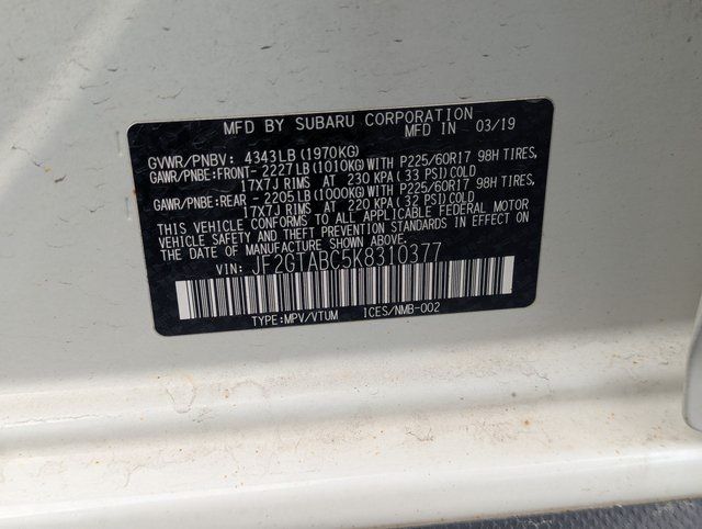 Crystal White Pearl 2019 Subaru Crosstrek 2.0i AWD Lineartronic CVT 2.0L DOHC