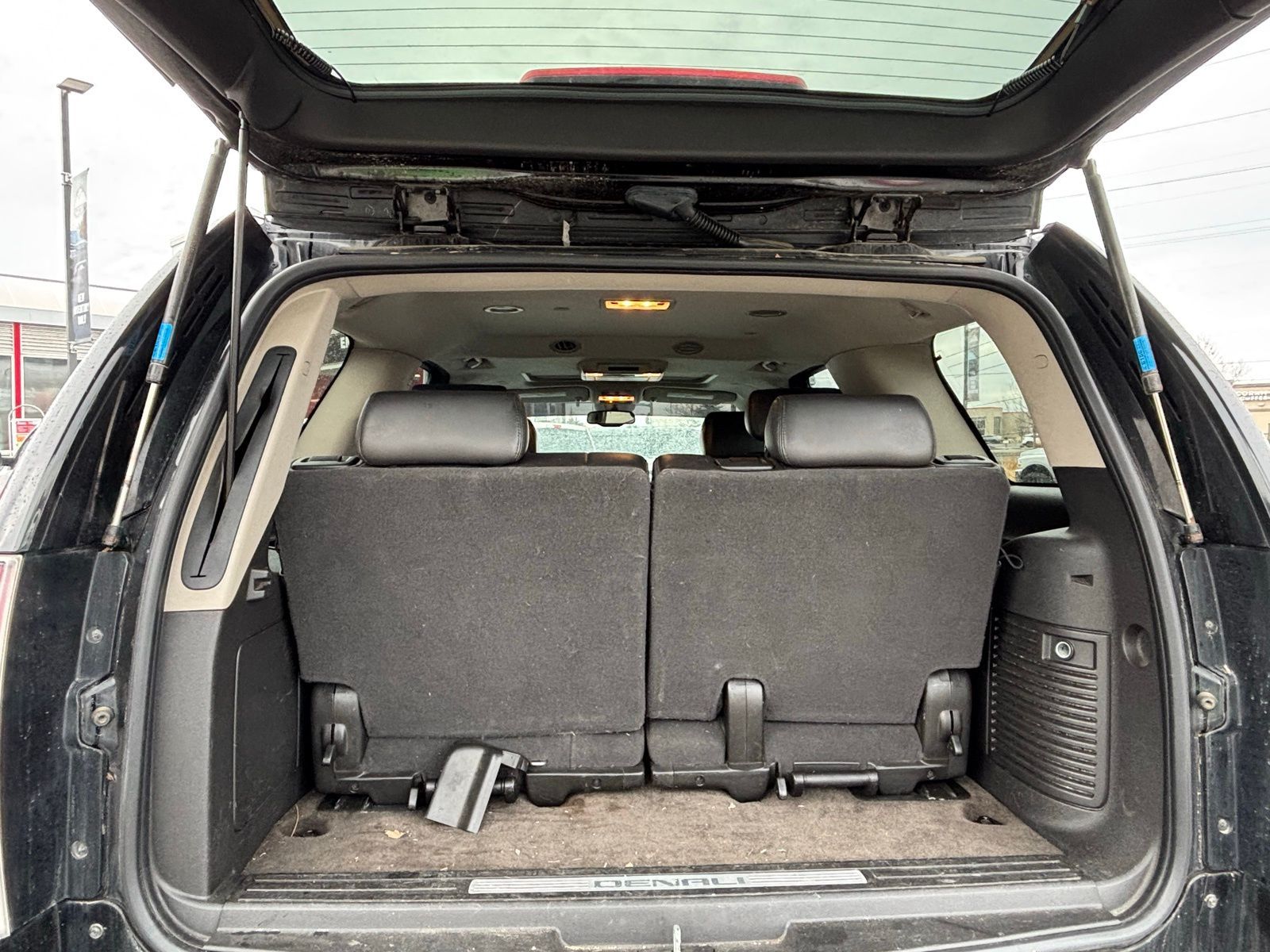 The Denali trim adds luxury features including heated leather seating, navigation, Bose surround audio, and adaptive Autoride suspension for a comfortable highway ride. With three-row seating and all-wheel drive traction, it works well as both a family vehicle and a year-round winter SUV.