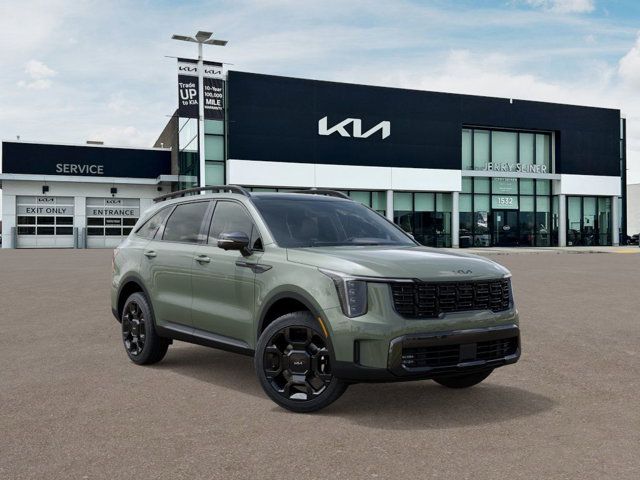 Se habla espanol ~ All new Kia's come with 1 year pre-paid Maintenance with Purchase. See dealer for details.Jungle Green 2026 Kia Sorento 4D Sport Utility X-Line SX AWD 8 Speed Dual Clutch 2.5L I4 DGI Turbocharged DOHC 16V LEV3-SULEV30 281hp AWD.20/27 City/Highway MPGAWD, 12 Speakers, 3rd row seats: split-bench, 4-Wheel Disc Brakes, ABS brakes, Air Conditioning, Alloy wheels, AM/FM radio: SiriusXM, Apple CarPlay & Android Auto, Auto High-beam Headlights, Auto-dimming Rear-View mirror, Automatic temperature control, Brake assist, Bumpers: body-color, Carpeted Floor Mats, Delay-off headlights, Driver door bin, Driver vanity mirror, Dual front impact airbags, Dual front side impact airbags, Electronic Stability Control, Emergency communication system: 911 Connect, Exterior Parking Camera Rear, Four wheel independent suspension, Front anti-roll bar, Front Bucket Seats, Front Center Armrest, Front dual zone A/C, Front fog lights, Front reading lights, Fully automatic headlights, Garage door transmitter: HomeLink, Heated and Ventilated Front Bucket Seats, Heated door mirrors, Heated front seats, Heated steering wheel, Illuminated entry, Knee airbag, Leather Shift Knob, Leather steering wheel, Low tire pressure warning, Navigation System, Occupant sensing airbag, Outside temperature display, Overhead airbag, Overhead console, Panic alarm, Passenger door bin, Passenger vanity mirror, Power door mirrors, Power driver seat, Power Liftgate, Power moonroof, Power passenger seat, Power steering, Power windows, Radio data system, Radio: AM/FM Bose Premium Audio System, Rain sensing wipers, Rear anti-roll bar, Rear reading lights, Rear side impact airbag, Rear window defroster, Rear window wiper, Remote keyless entry, Security system, Speed control, Speed-sensing steering, Split folding rear seat, Spoiler, Steering wheel mounted audio controls, SynTex Artificial Leather Seat Trim, Tachometer, Telescoping steering wheel, Tilt steering wheel, Traction control, Trip computer, Turn signal indicator mirrors, Variably intermittent wipers, Ventilated front seats, and Wheels: 20 Gloss Black x-Line Alloy.