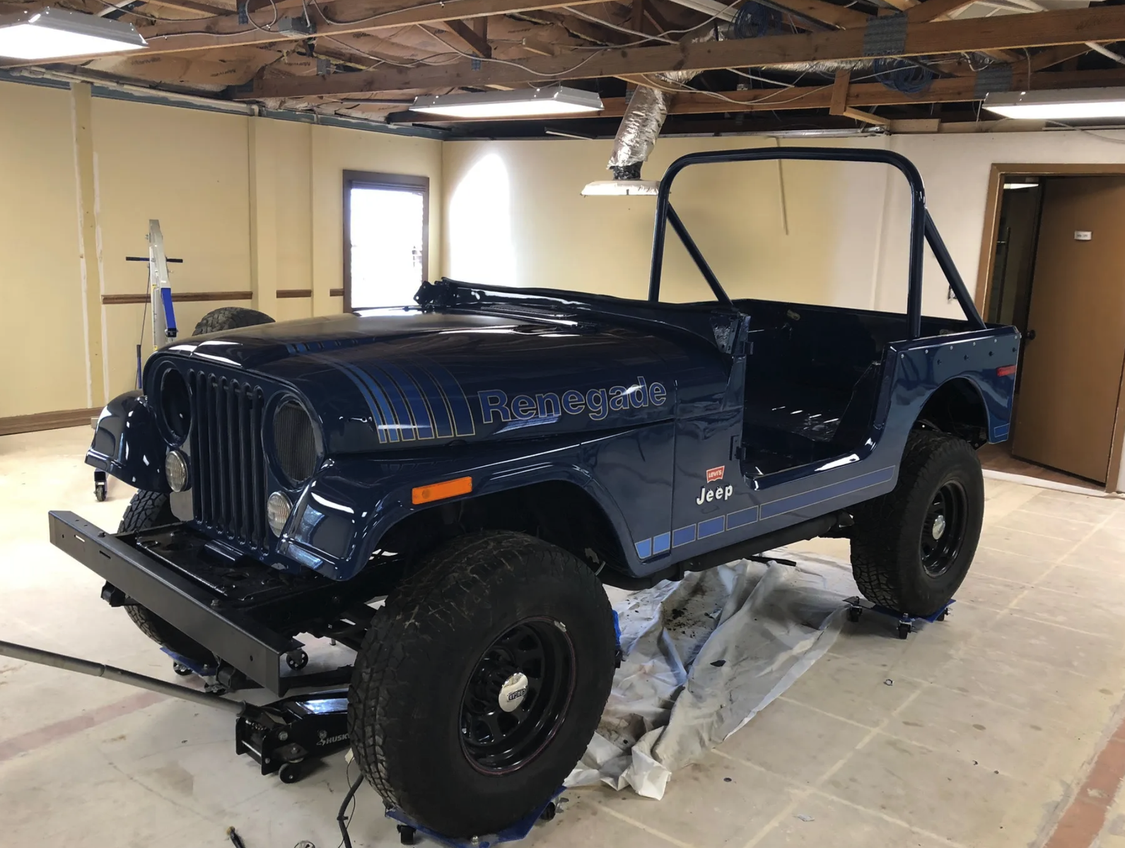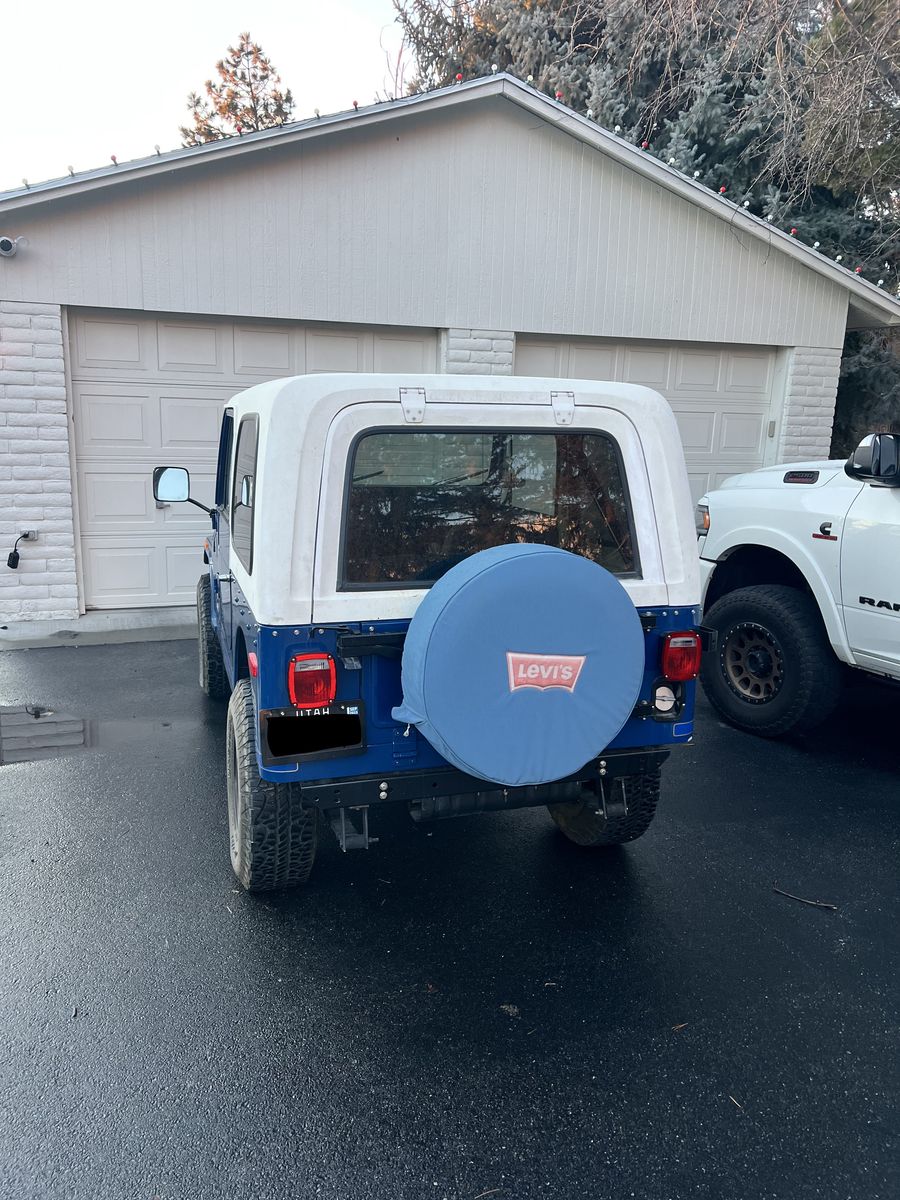 This 1979 Jeep CJ-7 has a replacement 360ci V8 mated to its three-speed automatic transmission and Quadra-Trac dual-range transfer case. A subsequent body-off refurbishment included repairing and refinishing the body in addition to refreshing the interior. Equipment includes power steering and brakes, 15″ Cragar two-piece steel wheels, steel doors, a roll bar, riveted denim upholstery. This CJ-7 is now offered with a bikini top, a removable hard top. Asking $16,000 Obo