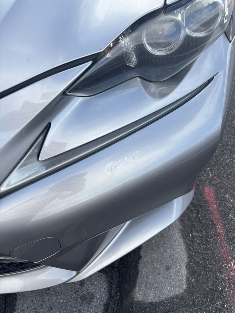 The arm rest in the middle console has some imperfections, but I have a replacement, which is like new. The other two pictures is the drivers side leather against the door(known problem with Lexus leather) and a blemish on the front bumper.
