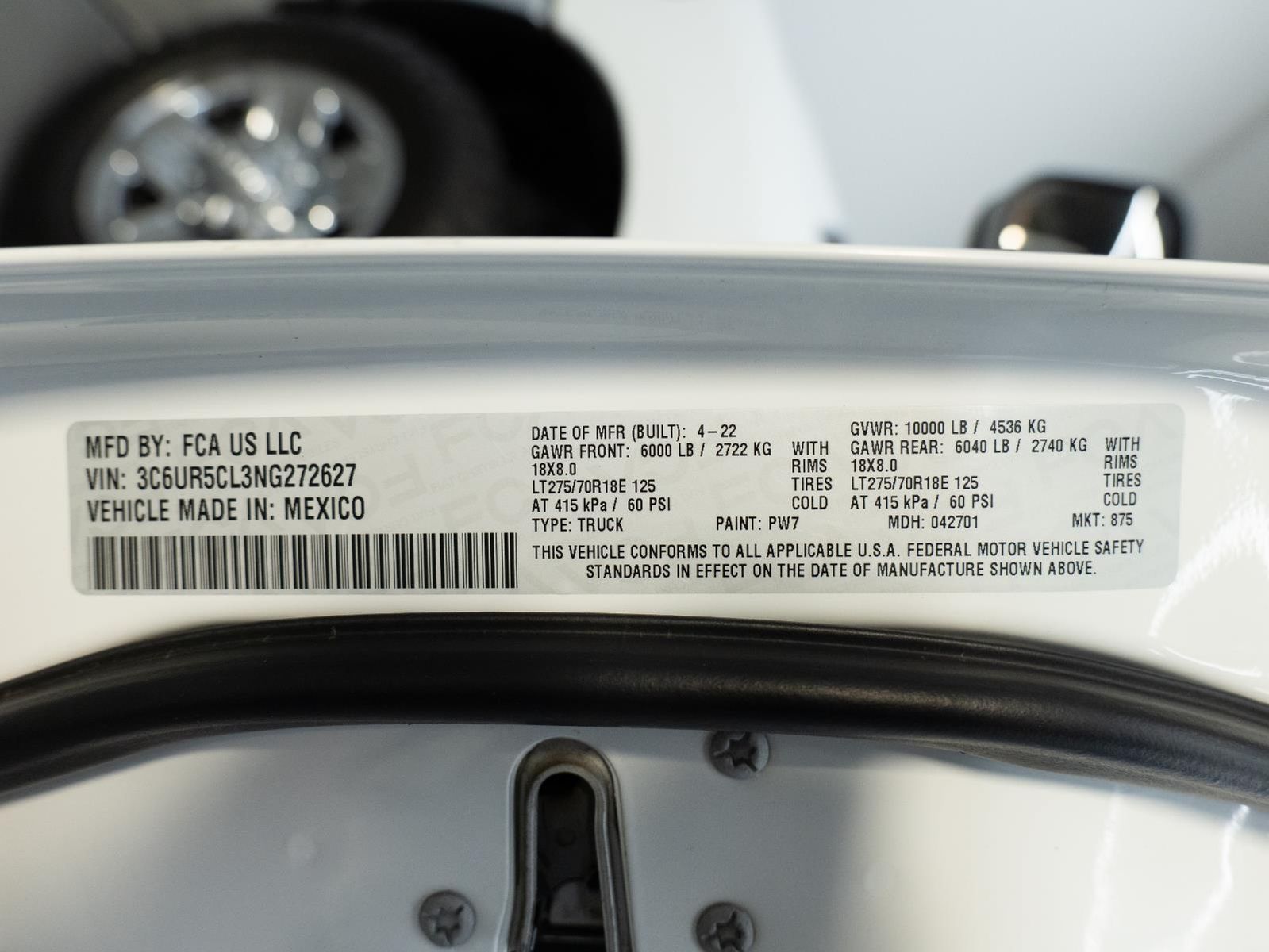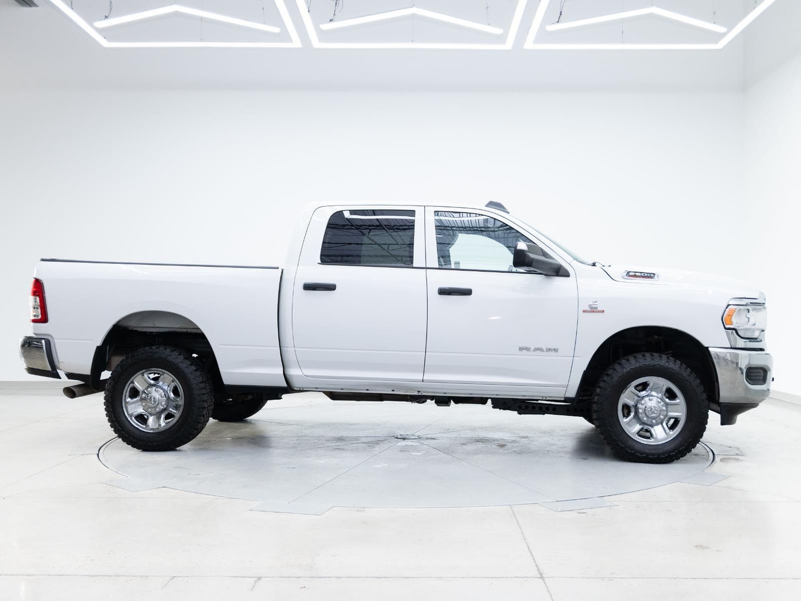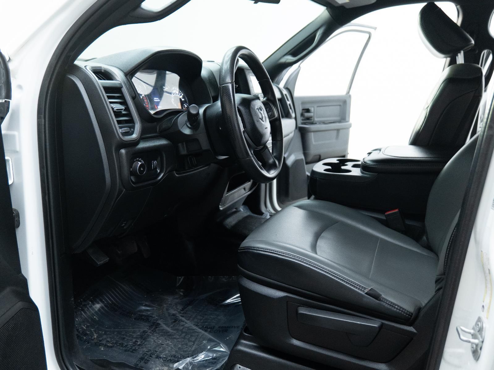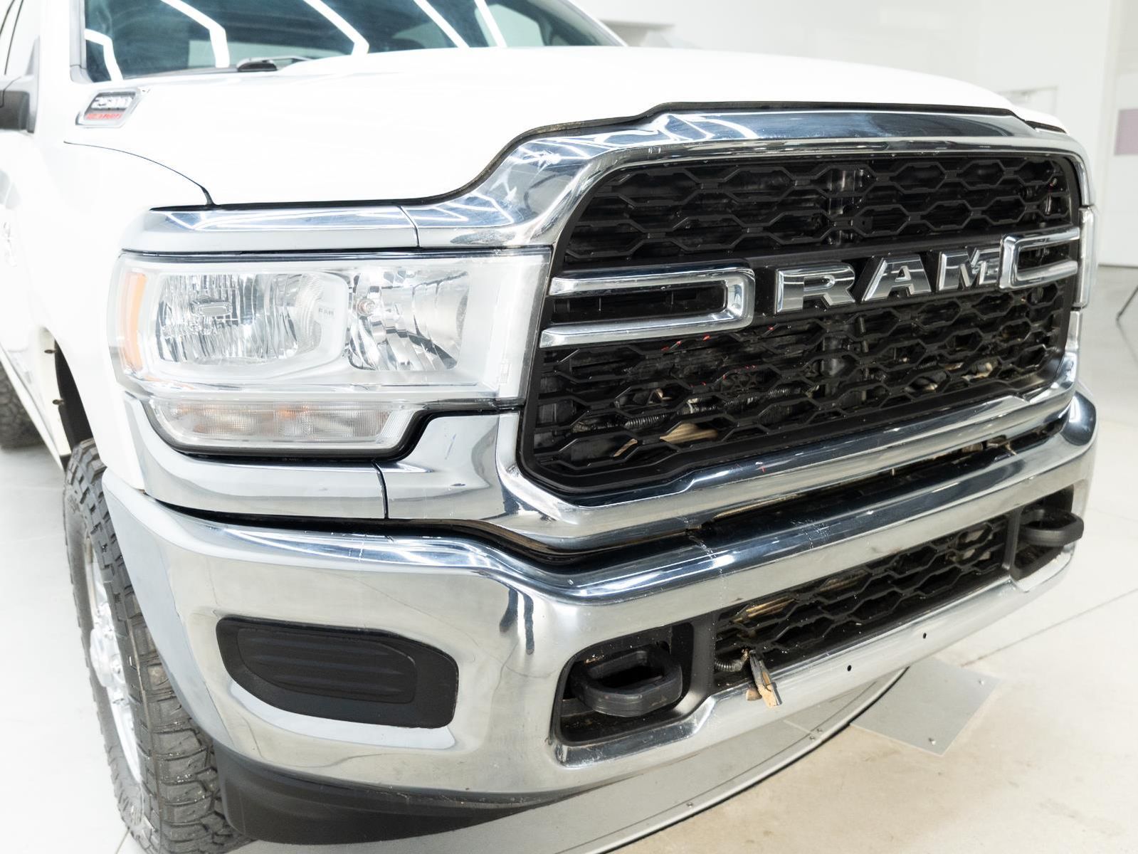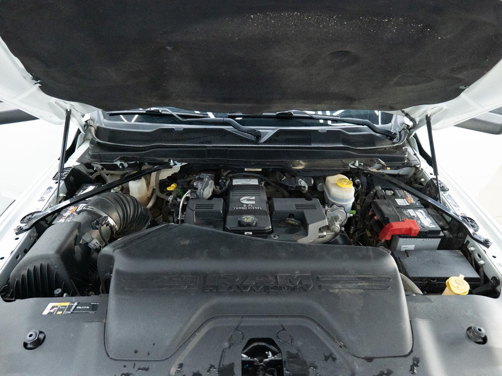 ENGINE: 6.7L I6 CUMMINS TURBO DIESEL, TRANSMISSION: 6-SPEED AUTOMATIC (68RFE), QUICK ORDER PACKAGE 2HA TRADESMAN, 3.73 AXLE RATIO, WHEELS: 18" X 8.0" STEEL CHROME CLAD, TIRES: LT275/70R18E OWL ON/OFF ROAD, BRIGHT WHITE CLEARCOAT, DIESEL GRAY/BLACK, HEAVY DUTY VINYL 40/20/40 SPLIT BENCH SEAT, GVWR: 10,000 LBS, HEAVY DUTY SNOW PLOW PREP GROUP, CHROME APPEARANCE GROUP, ELECTRIC SHIFT-ON-THE-FLY TRANSFER CASE, ANTI-SPIN DIFFERENTIAL REAR AXLE, 220 AMP ALTERNATOR, ENGINE BLOCK HEATER, TRAILER BRAKE CONTROL, TOW HOOKS, POWER ADJUST & HEATED BLACK TOW MIRRORS, FRONT LICENSE PLATE BRACKET, MOPAR SPRAY IN BEDLINER, I/P MOUNTED AUXILIARY SWITCHES, MANUFACTURER'S STATEMENT OF ORIGIN, 115V AUXILIARY FRONT POWER OUTLET