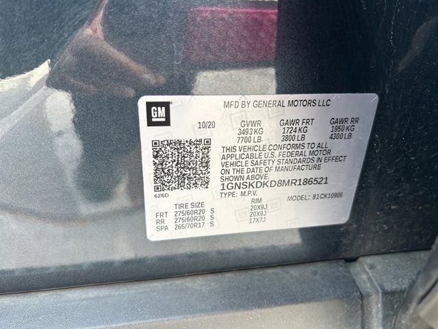 Advanced Trailering Package,Driver Alert Package,License Plate Front Mounting Package,Luxury Package,Max Trailering Package,Preferred Equipment Group 2Z7,Rear Media & Nav Package,Z71 Signature Package (DISC),2 USB Data Ports,9 Speakers,AM/FM radio: SiriusXM with 360L,Bose 9-Speaker Stereo Audio System Feature,HD Radio,Premium audio system: Chevrolet Infotainment 3 Plus,Radio: Chevrolet Infotainment 3 Plus System,Radio: Chevrolet Infotainment 3 Premium System,SiriusXM Radio w/360L,Air Conditioning,Automatic temperature control,Front dual zone A/C,Rear air conditioning,Rear window defroster,Hands-Free Rear Power Programmable Liftgate,Memory seat,Memory Settings,Power driver seat,Power steering,Power windows,Remote keyless entry,Remote Start,Steering wheel mounted audio controls,Universal Home Remote,Automatic Heated Steering Wheel,Four wheel independent suspension,Premium Smooth Ride Suspension,Speed-sensing steering,Traction control,4-Wheel Disc Brakes,ABS brakes,Dual front impact airbags,Dual front side impact airbags,Emergency communication system: OnStar and Chevrolet connected services capable,Front anti-roll bar,Low tire pressure warning,Occupant sensing airbag,Overhead airbag,Rear anti-roll bar,Dual-Pane Power Panoramic Sunroof,Power Liftgate,Brake assist,Electronic Stability Control,Front & Rear Park Assist,Hill Descent Control,Auto High-beam Headlights,Delay-off headlights,Fully automatic headlights,LED Daytime Running Lamps,Driver & Front Outboard Passenger Airbags,Panic alarm,Security system,Speed control,2-Speed Active Electronic AutoTrac Transfer Case,Extra Capacity Cooling System,Black Tubular Assist Steps,Bright Front & Rear Door Sill Plates,Bumpers: body-color,Front High-Approach Angle Fascia,Heated door mirrors,Outside Heated Power-Adjustable Mirrors,Power door mirrors,Roof rack: rails only,Spoiler,1st & 2nd Row Color-Keyed Carpeted Floor Mats,Apple CarPlay/Android Auto,Auto-Dimming Inside Rear-View Mirror,Auto-dimming Rear-View mirror,Color-Keyed Carpeting Floor Covering,Compass,Driver door bin,Driver vanity mirror,Floor Console w/Storage Area,Front reading lights,Garage door transmitter,HD Surround Vision,Illuminated entry,Infotainment Display,Lane Change Alert w/Side Blind Zone Alert,Lane Keep Assist w/Lane Departure Warning,Leather steering wheel,Leather-Wrapped Steering Wheel,Memory Settings For Driver,Outside temperature display,Overhead console,Passenger vanity mirror,Power Tilt & Telescopic Steering Column,Rear Cross Traffic Alert,Rear Pedestrian Alert,Rear reading lights,Rear seat center armrest,Rear Seat Media System,Tachometer,Telescoping steering wheel,Tilt steering wheel,Trip computer,Voltmeter,10-Way Power Driver & Passenger Seat Adjusters,2nd Row Pwr Release 60/40 Split-Folding Bench Seat,3rd Row 60/40 Power-Folding Split-Bench,3rd row seats: split-bench,Front Bucket Seats,Front Center Armrest,Heated 2nd Row Outboard Seats,Heated Driver & Front Passenger Seats,Heated front seats,Leather Seating Surfaces,Power passenger seat,Power Release 2nd Row Bucket Seats,Split folding rear seat,Passenger door bin,Advanced Trailering System,Hitch Guidance w/Hitch View,Integrated Trailer Brake Controller,Red Recovery Hooks,Alloy wheels,Wheels: 20 x 9 Machined Aluminum,Rain sensing wipers,Rear window wiper,Variably intermittent wipers,3.23 Rear Axle Ratio