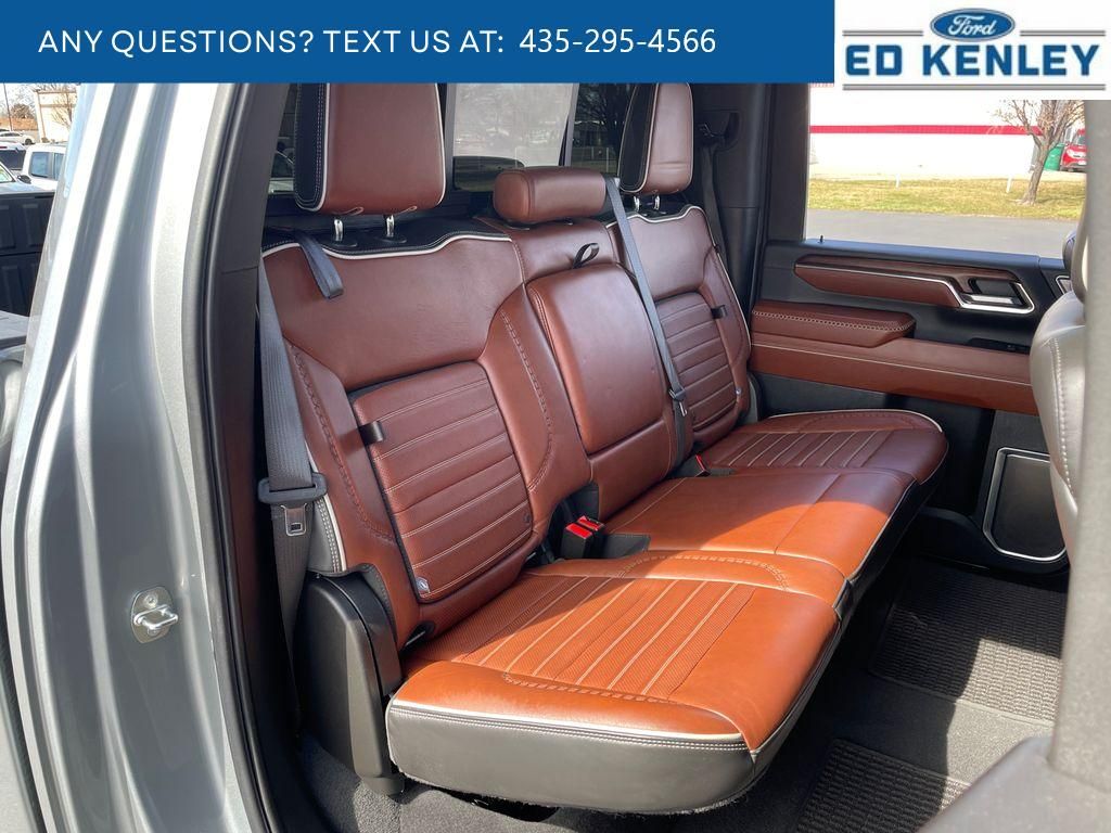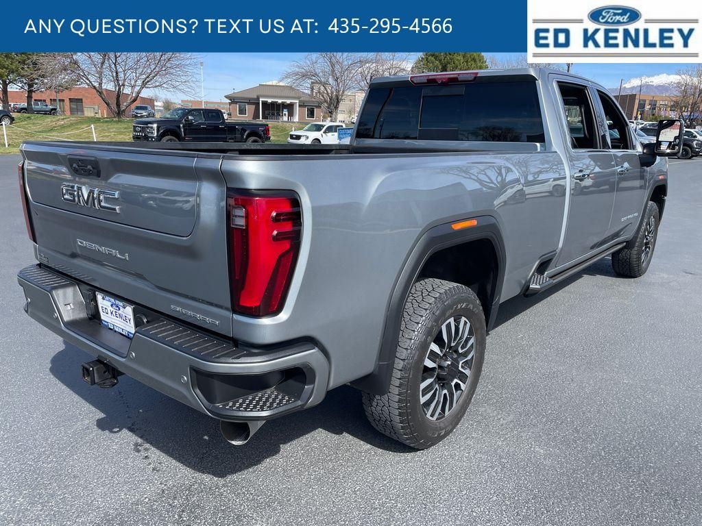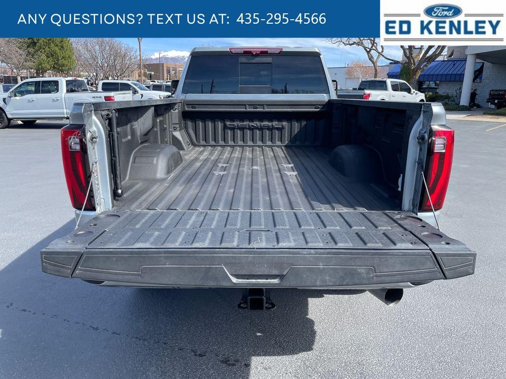Max Trailering Package: Gooseneck/5th Wheel Prep Package; 11,900 lbs (5,398 Kg) GVWR,Preferred Equipment Group 5SB: LED Cargo Area Lighting; Trailer Side Blind Zone Alert; SiriusXM with 360L; Remote Vehicle Starter System; Power Sliding Rear Window with Defogger; Safety Alert Seat; Ultrasonic Front and Rear Park Assist; Trailer Cam Provisions and Trailer Viewing Software; Electric Rear-Window Defogger; Floor-Mounted Center Console; Signature Denali Grille in Vadar Chrome; Unauthorized Entry Theft-Deterrent System; Bed View Camera with Two Trailer Camera Provisions; Front Rain-Sensing Wipers; Trailer Tire Pressure Monitor Sensors; Sierra HD Pro Safety; Wireless Phone Projection; 2 USB Ports; Rear Cross Traffic Alert; 120-Volt Instrument Panel Power Outlet; 2 Charge/data USB Ports Inside Center Console; LED Smoked Amber Roof Marker Lamps; Technology Package; Heated Driver and Front Outboard Passenger Seats; Wireless Charging; X31 Off-Road Package; Steering Wheel Audio Controls; 2 Charge-Only Rear USB Ports; GMC Connected Access Capable; Universal Home Remote; OnStar and GMC Connected Services Capable; 120-Volt Bed Mounted Power Outlet; Heated 2nd Row Outboard Seats; Power Front Passenger Windows with Express Up/down; 2-Speed Active Transfer Case; Deep-Tinted Glass; Spray-On Bedliner with Denali Logo; Integrated Trailer Brake Controller; HD Surround Vision; Ventilated Driver and Front Passenger Seats; Manual Tilt-Wheel/telescoping Steering Column; Power Sunroof; Keyless Open and Start; ProGrade Trailering System; Bose Premium Series 12-Speaker System; Push Button Start; Rear Wheelhouse Liners,Gooseneck/5th Wheel Prep Package,Sterling Metallic,Apple CarPlay/Android Auto smart device wireless mirroring,Forward Collision Alert with Automatic Braking,Front Pedestrian Braking,Wi-Fi Hotspot capable mobile hotspot internet access,HD Rear Vision Camera w/Hitch View rear mounted camera,Adaptive cruise control,Head-up display,Automatic Emergency Braking predictive brake assist system,Cruise control with steering wheel mounted controls,Ventilated driver and front passenger seats,Keyfob remote start,Heated steering wheel,Heated driver and front passenger seats,Heated rear seats,Leather front seat upholstery,Primary monitor touchscreen,Lane Departure Warning,Rear Cross-Traffic Alert collision warning,First-row sliding and tilting glass sunroof with express open/close activation sunshade,Driver seat power reclining, lumbar support, seatback side bolster support, cushion tilt, fore/aft control and height adjustable control,AutoTrac part and full-time 4WD,Duramax 6.6L V-8 diesel direct injection, intercooled turbo, diesel, engine with 470HP,Duramax 6.6L V-8,Front wireless smart device charging,Google Built-In built-in virtual assistant,Teen Driver restricted driving mode/alerts,Keyless Open/Keyless Start with hands-free access and push button start,Keyfob window control,HD Surround Vision w/Hitch View aerial view camera,Smart device remote start,Push-button,GCW Alert weight capacity alert,Video-feed rearview mirror,Stolen Vehicle Assistance vehicle tracker with vehicle slowdown,Bluetooth wireless audio streaming,Transparent Trailer View transparent trailer view,Hitch Guidance vehicle to trailer hitching assist,Gauge cluster display size: 12.30,Front mounted camera with washer,Right side camera,Pickup box camera,Left side camera,Trailer Side Blind Zone Alert blind spot warning,Following Distance Indicator,Trailer tire pressure sensors,Trailer light test,Trailer light malfunction warning,Trailer theft alarm,Dual-zone front climate control,Full gauge cluster screen