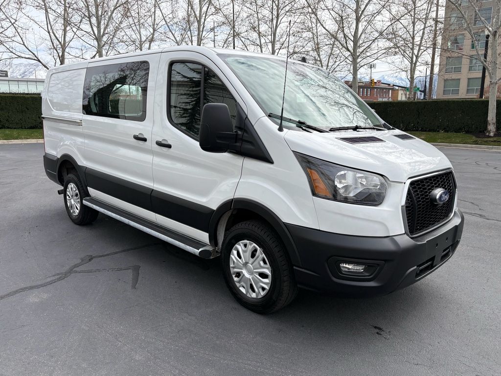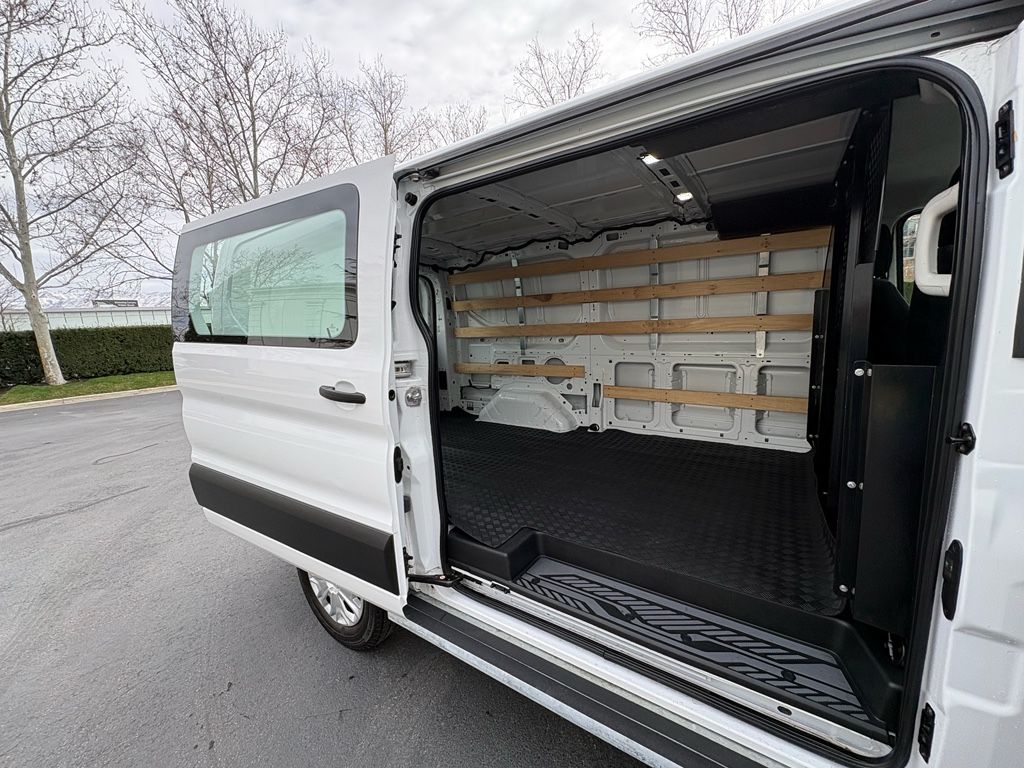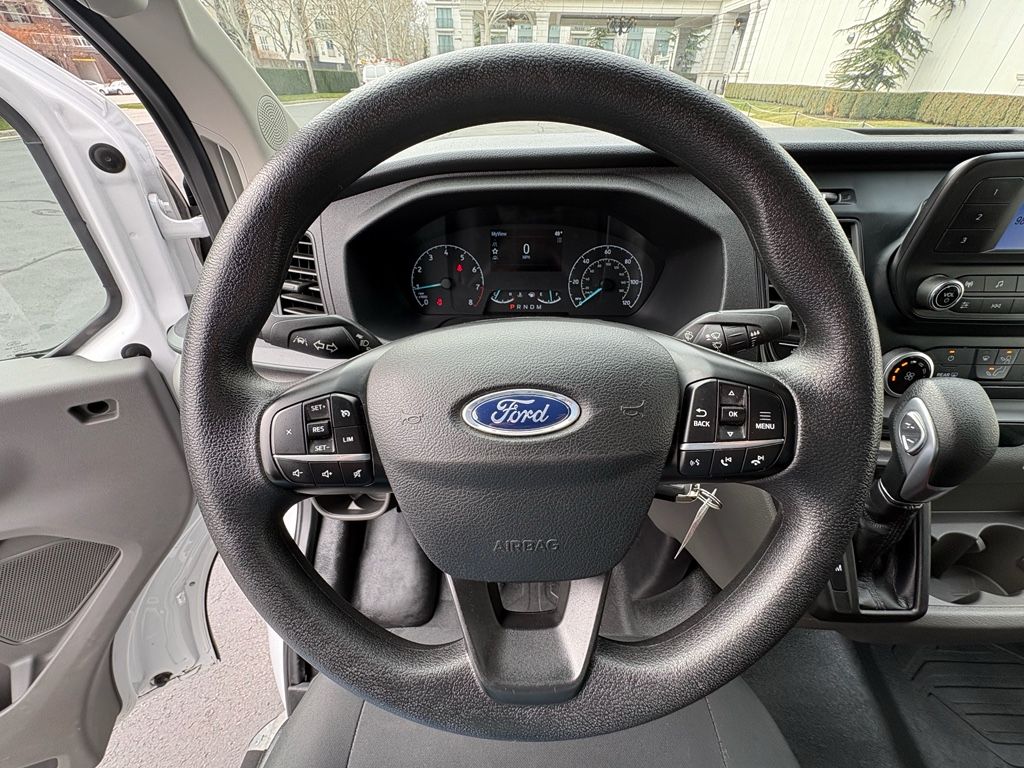 Exterior Upgrade Package: Wiper Activated Headlamps; Honeycomb Mesh Grille with Chrome Surround; 16" Steel Wheels with Full Silver Cover; Black Trimmed Halogen Lamps; Front Fog Lamps; Wiper Activated Headlamps; Honeycomb Mesh Grille with Chrome Surround; 16" Steel Wheels with Full Silver Cover; Black Trimmed Halogen Lamps,Order Code 101A: 16" Silver Steel Wheels with Black Hubcap; AM/FM Stereo; 10-Speed Automatic Transmission with OD and SelectShift; 3.73 Axle Ratio; Vinyl Front Bucket Seats; 3.5L PFDi V6 Flex-Fuel Engine; Dark Palazzo Gray Vinyl Bucket Seats; 235/65R16C 121/119 R AS BSW Tires; Gvwr: 9,070 Lb,Privacy Glass,3.73 Limited-Slip Axle Ratio,Fixed Rear Cargo Door Glass,Large Center Console,Front All-Weather Floor Mats,Daytime Running Lamps,Pre-Collision Assist with Automatic Emergency Braking (AEB) forward collision mitigation,Rear mounted camera,Brake assist system,Lane-Keeping System,Driver Alert,Automatic brake hold,Auto High Beam auto high-beam headlights,SecuriLock immobilizer,Ford Co-Pilot360 w/Side Wind Stabilization electronic stability control system with anti-roll,Hill start assist,Ford Co-Pilot360 - Post Collision Braking automatic post-collision braking system,6 airbags,Driver front impact airbag,Seat mounted side impact driver airbag,Safety Canopy System curtain first-row overhead airbags,Cancellable front passenger air bag,Seat mounted side impact front passenger airbag,Airbag occupancy sensor,Reflector headlights,Halogen headlights,Ford Co-Pilot360 - Autolamp auto on/off headlight control,Delay-off headlights,4-wheel disc brakes,FordPass Connect 4G mobile hotspot internet access,Bluetooth handsfree wireless device connectivity,FordPass App mobile app access,Cruise Control w/Adjustable Speed Limiting Device (ASLD) cruise control with steering wheel mounted controls,Intelligent Access with hands-free access and push button start,Push-button,3 12V power outlets,Capless fuel filler,Auto-locking doors,3.5L V-6 port/direct injection, DOHC, variable valve control, regular unleaded, engine with 275HP,3.5L V-6 DOHC,10-speed automatic,Transmission electronic control,SelectShift Sequential shift control,Automatic,Wireless audio streaming,External memory control,Manual tilting steering wheel,Manual telescopic steering wheel,Vinyl front seat upholstery,Manual climate control,Bucket front seats,Driver seat with 4-way directional controls,Front passenger seat with 4-way directional controls,Wheel hub covers,16 x 6.5-inch front and rear argent steel wheels,LT235/65SR16 AS BSW 720 RPM front and rear tires