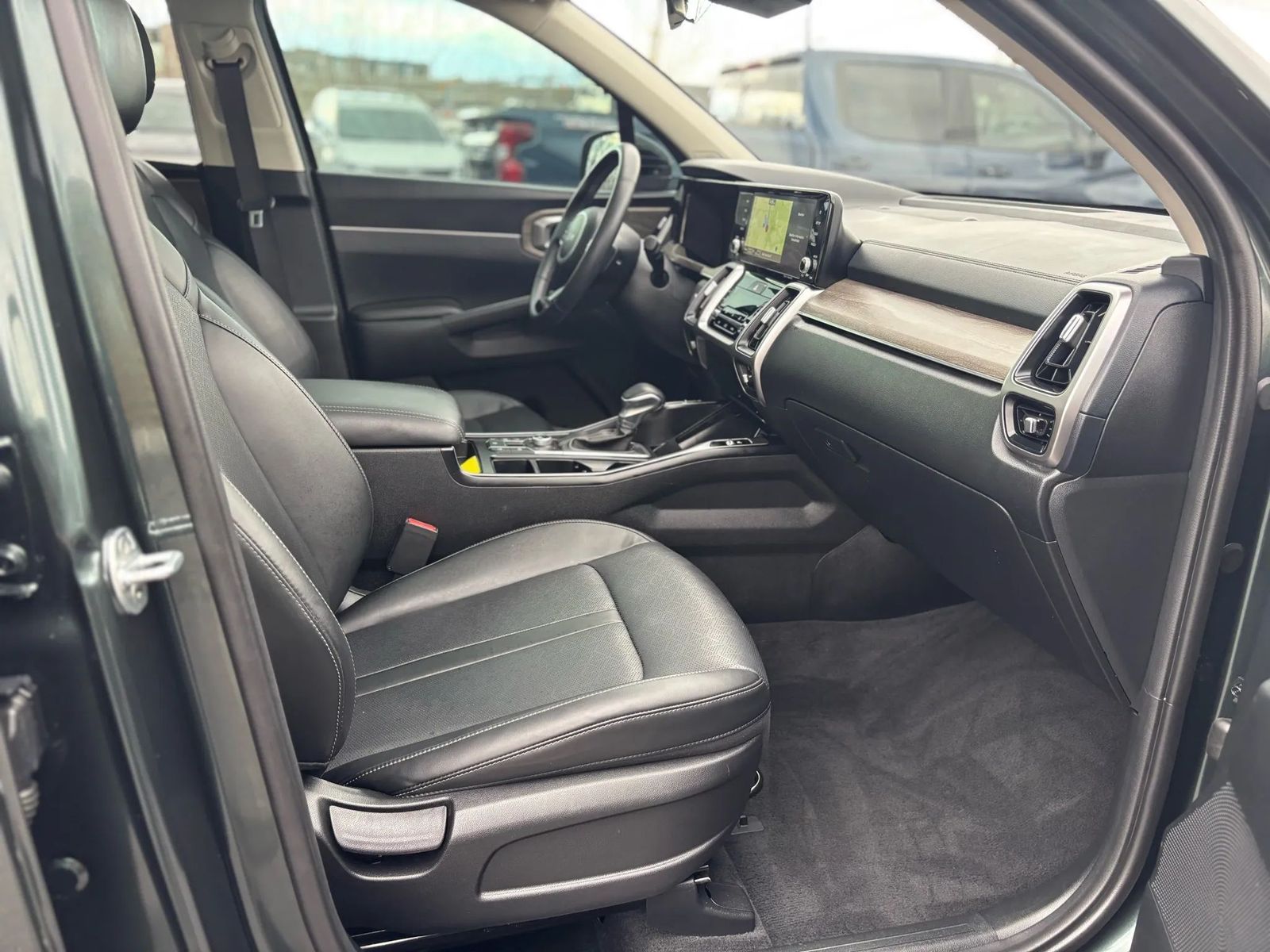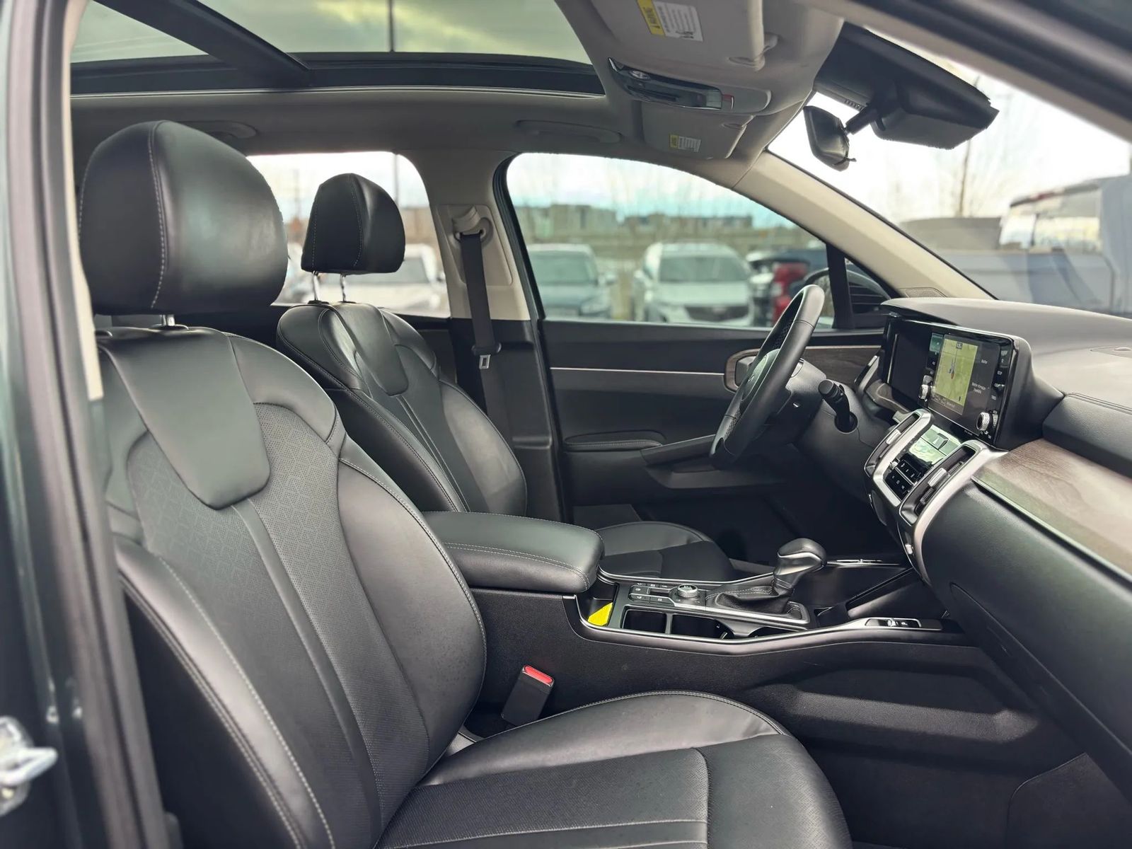 2022 Kia Sorento X-Line EX AWD with turbo, AWD, panoramic roof, 2nd row captain’s chairs, 3rd row seating, navigation, heated seats, wireless phone charger, and tow package. Great color combo, clean inside and out, and a really sharp looking SUV.