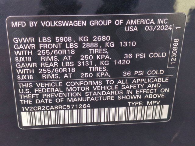 Ken Garff Volkswagen is honored to offer this handsome 2024 Volkswagen Atlas 2.0T Peak Edition SE w/Technology in Deep Black Pearl.CARFAX ONE OWNER, 3.60 Axle Ratio, 3rd row seats: split-bench, 4-Wheel Disc Brakes, 6 Speakers, ABS brakes, Air Conditioning, Alloy wheels, AM/FM radio: SiriusXM with 360L, Auto-dimming Rear-View mirror, Automatic temperature control, Brake assist, Bumpers: body-color, Compass, Delay-off headlights, Driver door bin, Driver vanity mirror, Dual front impact airbags, Dual front side impact airbags, Electronic Stability Control, Emergency communication system: VW Car-Net Safe & Secure 5-year, Exterior Parking Camera Rear, Four wheel independent suspension, Front anti-roll bar, Front Bucket Seats, Front Center Armrest, Front dual zone A/C, Front fog lights, Front reading lights, Fully automatic headlights, Heated door mirrors, Heated front seats, Heated steering wheel, Heated/Actively Ventilated Front Bucket Seats, Illuminated entry, Low tire pressure warning, Occupant sensing airbag, Outside temperature display, Overhead airbag, Overhead console, Panic alarm, Passenger door bin, Passenger vanity mirror, Perforated V-Tex Leatherette Seating Surfaces, Power door mirrors, Power driver seat, Power Liftgate, Power moonroof: Panoramic, Power steering, Power windows, Radio data system, Radio: MIB3 Composition Media, Rain sensing wipers, Rear air conditioning, Rear anti-roll bar, Rear reading lights, Rear seat center armrest, Rear window defroster, Rear window wiper, Remote keyless entry, Security system, Speed control, Speed-sensing steering, Split folding rear seat, Spoiler, Standard Suspension, Steering wheel mounted audio controls, Tachometer, Telescoping steering wheel, Tilt steering wheel, Traction control, Trip computer, Turn signal indicator mirrors, Variably intermittent wipers, Ventilated front seats, Wheels: 18 Black Painted 5-Spoke Alloy.Certified.Volkswagen Certified Pre-Owned Details: * Model Year 2020 and Newer Vehicles: 2-Year or 24,000-Mile (whichever occurs first) Comprehensive Limited Warranty. Model Year 2019 Vehicles: 1-Year or 12,000-Mile (whichever comes first) Comprehensive Limited Warranty. Electric Vehicles Model Year 2019 & Newer: 3-Year or 36,000-Mile (whichever comes first) Comprehensive Limited Warranty. 2 Years of 24-Hour Roadside Assistance, Three Months of SiriusXM Platinum Plan Trial Subscription. * Roadside Assistance * Warranty Deductible: $50 * 100 Point Inspection * Vehicle HistoryBuy with Confidence at Ken Garff Volkswagen! All of our used vehicles go through a rigorous 150 point inspection by our master certified technicians. All of our prices are based off market conditions to be the best value for our customers! We are conveniently located at 115 E University Parkway in Orem, UT 84058. Just 1 Block west of University Mall. Additional Ken Garff VW benefits include: -- A Better Business Rating --Lifetime Garff Care. This includes roadside assistance and towing along the Wasatch Front for as long as you own your car. --Car Fax on every used vehicle. --No Hassle 3-Day Exchange on every new or used vehicle.