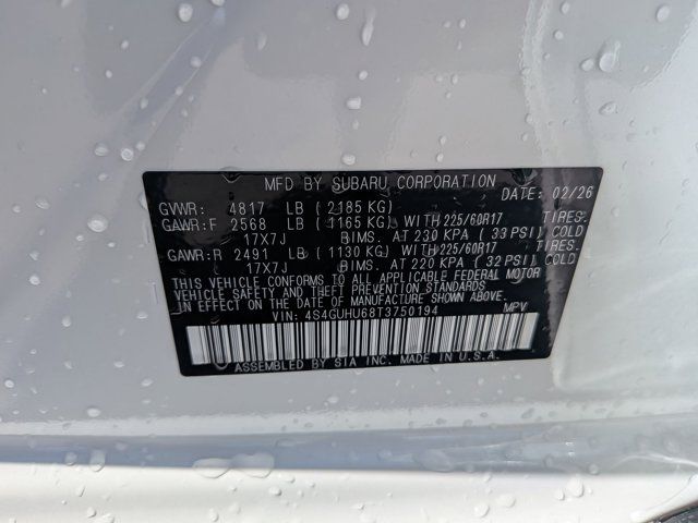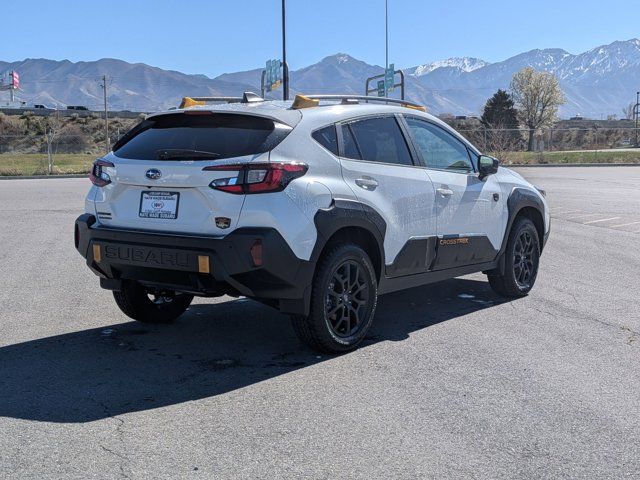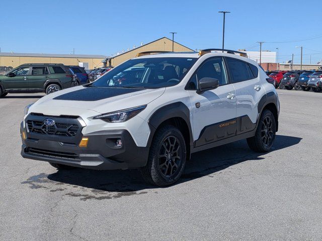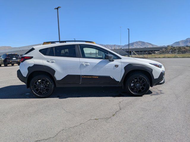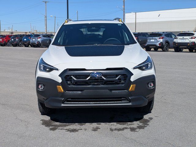 CRYSTAL WHITE PEARL,SPLASH GUARDS - WILDERNESS -inc: Part number J101SFN300,LED UPGRADE -inc: Part number H461SFL060,CROSSTREK MIRROR PACKAGE -inc: Auto-Dimming Mirror w/Compass & HomeLink Part number H501SFN000 Auto-Dimming Exterior Mirror w/Approach Light Part number J201SFN001,REAR BUMPER COVER - WILDERNESS -inc: Part number E771SFN100,BLACK WILDERNESS STARTEX UPHOLSTERY,HARMAN/KARDON AUD & PWR MOONROOF & PWR DRIVER SEAT -inc: 10-Way Power Driver's Seat 2-way lumbar support Power Moonroof tilt up and internal retracting w/auto-open/close and laminated UV and dark tint moonroof glass harman/kardon Speaker System 432 Watt equivalent maximum output amplifier and 10 speakers (4 stacked dash panel side coaxial speakers 2 front door speakers and 4 stacked subwoofer rear door coaxial speakers),All Wheel Drive,Power Steering,ABS,4-Wheel Disc Brakes,Brake Assist,Brake Actuated Limited Slip Differential,Aluminum Wheels,Tires - Front All-Terrain,Tires - Rear All-Terrain,Temporary Spare Tire,Heated Mirrors,Power Mirror(s),Integrated Turn Signal Mirrors,Rear Defrost,Privacy Glass,Intermittent Wipers,Variable Speed Intermittent Wipers,Rear Spoiler,Power Door Locks,Daytime Running Lights,Automatic Headlights,Headlights-Auto-Leveling,LED Headlights,Automatic Highbeams,Fog Lamps,AM/FM Stereo,Satellite Radio,MP3 Capability,Bluetooth Connection,Auxiliary Audio Input,HD Radio,Smart Device Integration,Requires Subscription,MP3 Capability,Steering Wheel Audio Controls,Bluetooth Connection,Bucket Seats,Heated Front Seat(s),Pass-Through Rear Seat,Rear Bench Seat,Adjustable Steering Wheel,Trip Computer,Power Windows,WiFi Hotspot,Leather Steering Wheel,Heated Steering Wheel,Keyless Entry,Power Door Locks,Keyless Start,Keyless Entry,Power Door Locks,Remote Trunk Release,Cruise Control,Adaptive Cruise Control,Climate Control,Multi-Zone A/C,A/C,Premium Synthetic Seats,Driver Vanity Mirror,Passenger Vanity Mirror,Driver Illuminated Vanity Mirror,Passenger Illuminated Visor Mirror,Floor Mats,Cargo Shade,Keyless Start,Smart Device Integration,Power Windows,Power Door Locks,Trip Computer,Security System,Immobilizer,Cruise Control Steering Assist,Traction Control,Stability Control,Traction Control,Front Side Air Bag,Lane Departure Warning,Lane Keeping Assist,Lane Departure Warning,Front Collision Mitigation,Driver Monitoring,Telematics,Requires Subscription,Blind Spot Monitor,Cross-Traffic Alert,Rear Collision Mitigation,Evasion Assist,Tire Pressure Monitor,Driver Air Bag,Passenger Air Bag,Front Head Air Bag,Rear Head Air Bag,Passenger Air Bag Sensor,Front Side Air Bag,Rear Side Air Bag,Knee Air Bag,Child Safety Locks,Back-Up Camera