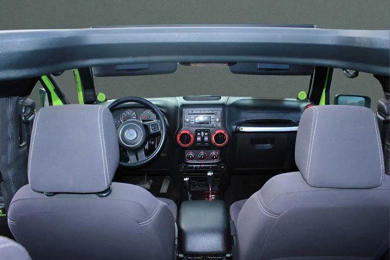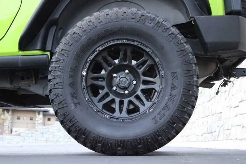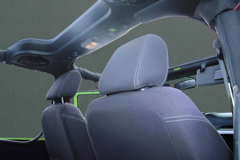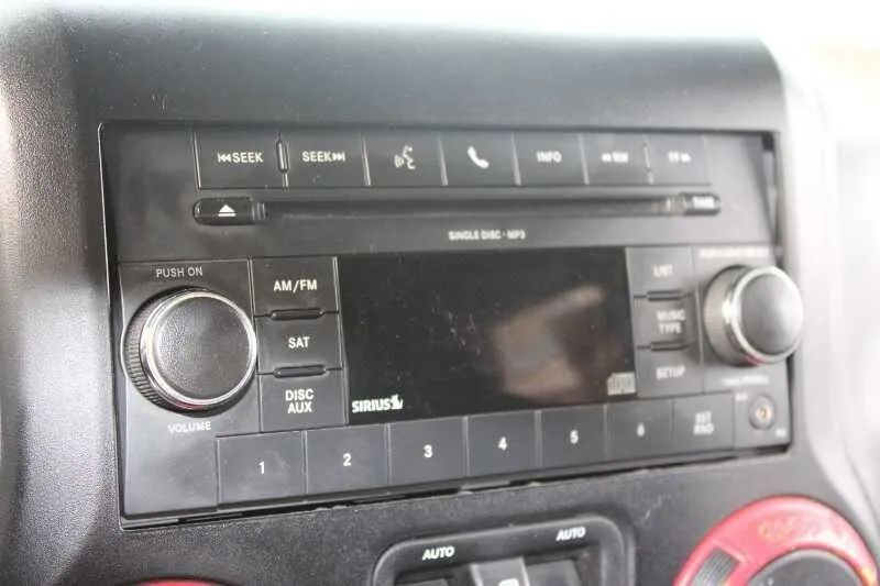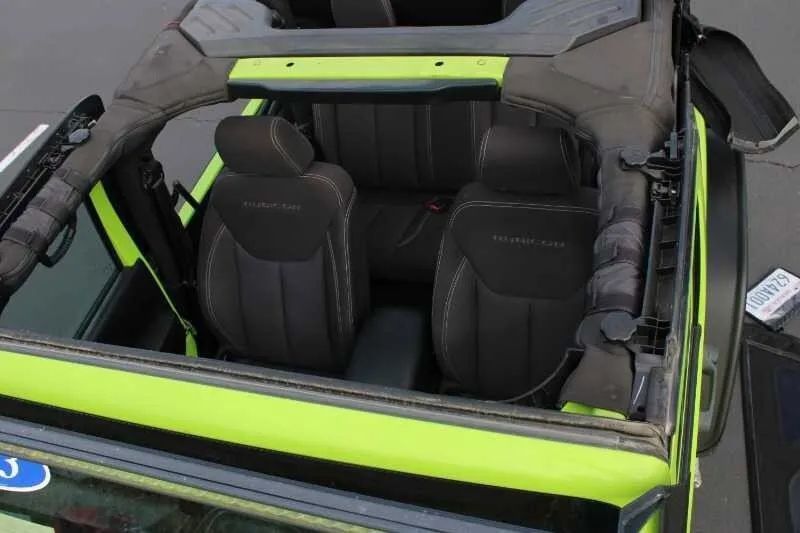 Aluminum Alloy Wheels, LED Taillights, Soft Top Removable roof, Daytime running lights, Front fog lights, Aluminum Alloy Spare wheel, Variable Intermittent Front wipers, Tire Pressure Monitoring System, Front Driver And Passenger Tinted glass, Windshield Tinted glass, Full-size Spare tire size, Auto On/off Headlights, Skid plate(s), Fixed Liftgate window, Side-hinged Rear trunk/liftgate, Black Rear bumper color, Black Window trim, Black Door handle color, Black Mirror color, Manual Folding Side mirror adjustments, Black Grille color, Black Front bumper color, Leather Steering wheel trim, Leather Shift knob trim, Cruise control, Cloth Upholstery, Bucket Front seat, Ambient lighting, Front air conditioning, Alloy Shift knob trim, Carpet Floor mat material, Bench Rear seat, Cargo area floor mat, Rear seat folding, 12V Front Power outlet(s), Front Floor mats, Power steering, Compass, External temperature display, MPG Fuel economy display, Range Fuel economy display, Tilt Steering wheel, Front Console With Storage Center console, Front Reading lights, Tachometer Gauge, Reclining Rear seat manual adjustments, Front Cupholders, Rear Cupholders, Audio Steering wheel mounted controls, Dual Vanity mirrors, Carpet Floor material, Cruise Control Steering wheel mounted controls, Front Seatback Storage, Single Front air conditioning zones, Dual Front Active head restraints, 4-wheel ABS, Hill Ascent Off-road driving assist, Alarm Anti-theft system, Braking assist, Disc Rear brake, Dual Front airbags, Vehicle Immobilizer Anti-theft system, Power brakes, LATCH System Child seat anchors, Electronic brakeforce distribution, Stability control, Traction control, Occupant Sensing Passenger Airbag deactivation, Front Seatbelt pretensioners, Front Seatbelt force limiters, Post-collision Safety System Impact sensor, Disc Front brake, Roll stability control, SiriusXM Satellite radio, 6 Total speakers, USB Auxiliary audio input, IPod/iPhone Auxiliary audio input, Single Disc In-Dash CD, Jack Auxiliary audio input, AM/FM Radio, Radio data system, Part Time 4WD, Manual Hi-lo 4WD selector, Front Tow hooks, Rear Tow hooks, Multi-link Front suspension, 600 CCA Battery rating, 140 Amps Alternator, Solid Live Axle Rear suspension classification, Solid Live Axle Front suspension classification, Trailing Arms Rear suspension, Front stabilizer bar, Rear stabilizer bar