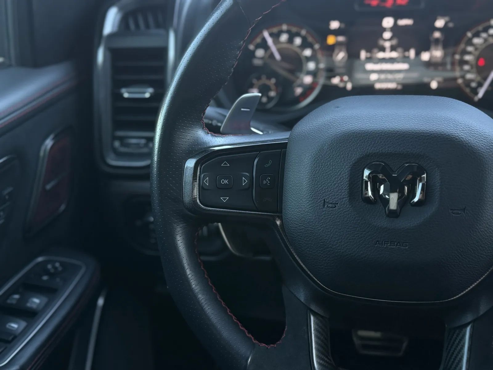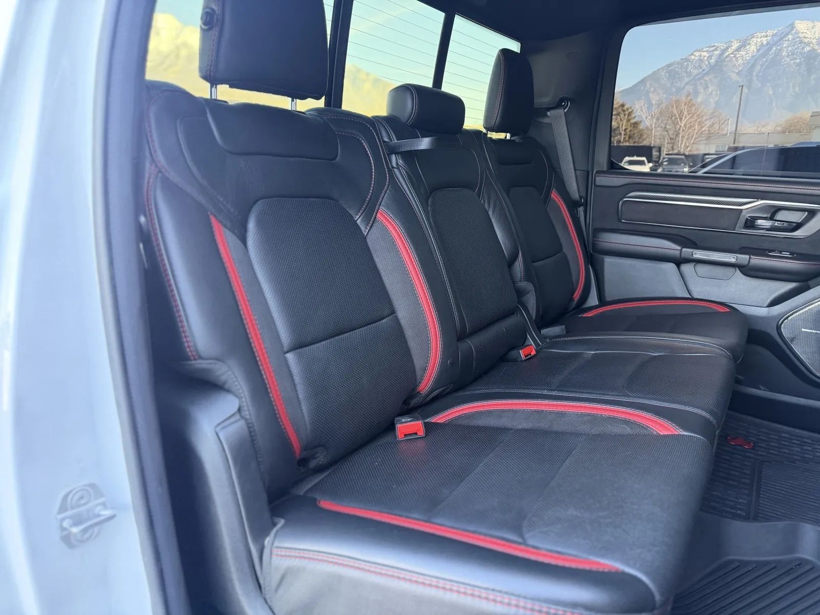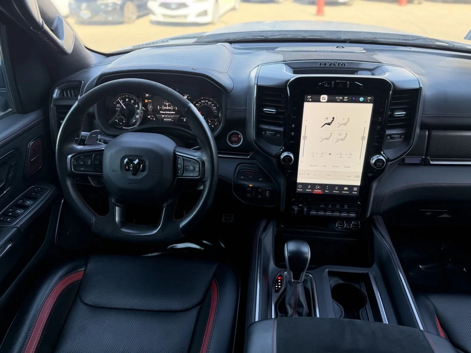 Front Automatic emergency braking, Lane keeping assist, Audible Warning Pre-collision warning system, Visual Warning Pre-collision warning system, Lane deviation sensors, Rearview Camera system, Front Side airbags, Rear Side curtain airbags, Front Side curtain airbags, 4-wheel ABS, Emergency braking preparation, Anti-lockout Power door locks, Auto-locking Power door locks, Brake drying, Hill Ascent Off-road driving assist, Hill Descent Off-road driving assist, Auto Off Electronic parking brake, Trailer stability control, Ventilated Disc Rear brake, Alarm Anti-theft system, Braking assist, Hill holder control, Ventilated Disc Front brake, Dual Front airbags, Vehicle Immobilizer Anti-theft system, Power brakes, LATCH System Child seat anchors, Electronic brakeforce distribution, Stability control, Traction control, In Dash Rearview monitor, Occupant Sensing Passenger Airbag deactivation, Front Seatbelt pretensioners, Front Seatbelt force limiters, Front Emergency locking retractors, Rear Emergency locking retractors, Roll stability control, Front Seatbelt warning sensor, Semi-automatic Adaptive stop and go cruise control, Adaptive cruise control, Head-up display, Proximity Entry System Multi-function remote, Heated steering wheel, Leather Steering wheel trim, Automatic Climate Control Front air conditioning, Dual Front air conditioning zones, 8 Driver seat power adjustments, Paddle Shifter Steering wheel mounted controls, Push-button start, Heated Driver seat, Leather Shift knob trim, Remote engine start, Heated Passenger seat, Auto-dimming Rearview mirror, Heated Rear seat, Sport Bucket Front seat, Cruise control, Leather Dash trim, Ambient lighting, Keyless Entry Multi-function remote, Rubber/vinyl Floor mat material, Alloy Shift knob trim, 60-40 Split Bench Rear seat, 115V Rear Power outlet(s), 115V Front Power outlet(s), Air filtration, Capless fuel filler system, Customizable instrument cluster, Footwell lights, 7 In. Instrument cluster screen size, Alloy Dash trim, Alloy Door trim, Folds Up Rear seat folding, Cloth Upholstery accents, USB Front Power outlet(s), USB-C Front Power outlet(s), USB Rear Power outlet(s), USB-C Rear Power outlet(s), 12V Front Power outlet(s), Rear Center Folding With Storage Armrests, Tilt And Telescopic Steering wheel, Second Row Rear vents, Rear Floor mats, Front Floor mats, 4-way Power Lumbar Driver seat power adjustments, Multi-function display, Front Console With Armrest And Storage Center console, Power steering, Compass, External temperature display, MPG Fuel economy display, Range Fuel economy display, Front Reading lights, Tachometer Gauge, Rear Reading lights, Reclining Driver seat power adjustments, Scuff Plate Door sill trim, Height Driver seat power adjustments, Front Cupholders, Maintenance Due Warnings and reminders, Front Overhead console, Rear Cupholders, 2 One-touch windows, Passenger Illuminating Vanity mirrors, Panic Alarm Multi-function remote, Audio Steering wheel mounted controls, Under Rear Seats Storage, Carpet Floor material, Cruise Control Steering wheel mounted controls, Phone Steering wheel mounted controls, Multi-function Steering wheel mounted controls, Front Seatback Storage, Voice Control Steering wheel mounted controls, In Seat Cushion Storage, Powertrain hour meter, Painted Aluminum Alloy Wheels, Cornering Headlights, LED Headlights, Auto High Beam Dimmer Headlights, LED Daytime running lights, Dual Tip Exhaust, LED Taillights, Power Folding Side mirror adjustments, LED Front fog lights, Power Horizontal Pickup sliding rear window, Driver Side Auto-dimming Side mirrors, Safety Reverse Power windows, Power Locking Tailgate, Power Side mirror adjustments, Heated Side mirrors, Acoustic Windshield Laminated glass, Full-size Matching Spare tire size, Puddle Lamps Exterior entry lights, Approach Lamps Exterior entry lights, Steel Spare wheel, Hood scoop, Variable Intermittent Front wipers, Rear privacy glass, Lift Assist Tailgate, Tire Pressure Monitoring System, Integrated Turn Signals Side mirrors, Powertrain Skid plate(s), Active grille shutters, Solar-tinted glass, Auto On/off Headlights, Rear Skid plate(s), Front Skid plate(s), Auto Delay Off Headlights, Clearance lights, Pickup bed light, Black Fender lip moldings, Black Rear bumper color, Black Window trim, Black Door handle color, Black Mirror color, Black Grille color, Black Headlight bezel color, Black Front bumper color, Black Exhaust tip color, Hotspot Wi-Fi, Touch Screen Display Navigation system, Voice Operated Navigation system, Harman/kardon Premium brand, Wireless Apple CarPlay Smartphone integration, Wireless Android Auto Smartphone integration, 12 In. Infotainment screen size, SiriusXM Guardian Smart device app compatibility, Bluetooth Wireless data link, Voice Operated Hands-free phone call integration, Voice Operated Radio, Bluetooth Auxiliary audio input, Surround sound, HD Radio Radio, Engine Start Smart device app function, 8 Total speakers, Touch Screen Display Radio, 1 Subwoofer, Real Time Traffic Navigation data, App Marketplace Integration Connected in-car apps, With Read Function Electronic messaging assistance, Voice Operated Electronic messaging assistance, SiriusXM Satellite radio, USB Auxiliary audio input, IPod/iPhone Auxiliary audio input, Uconnect Infotainment, Vehicle Location Smart device app function, Lock Operation Smart device app function, Horn/light Operation Smart device app function, Jack Auxiliary audio input, Roadside Assistance Driver assistance app, AM/FM Radio, Radio data system, Driving Performance Connected in-car apps, Speed sensitive volume control, SiriusXM Travel Link Connected in-car apps, Google POIs Connected in-car apps, Google Search Connected in-car apps, Send Destination To Vehicle Navigation data, Active suspension, Straight Line And Turning Automated trailer backup steering, Trailer brake controller, Class IV Trailer hitch, Electronic Suspension control, Ride Control Driver adjustable suspension, Electronic Hi-lo 4