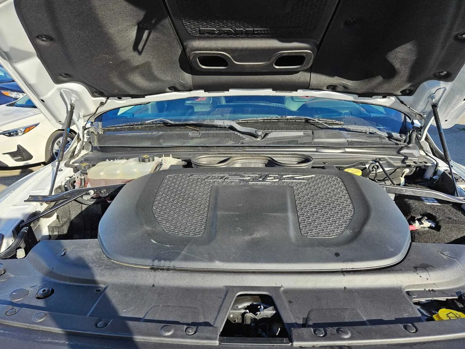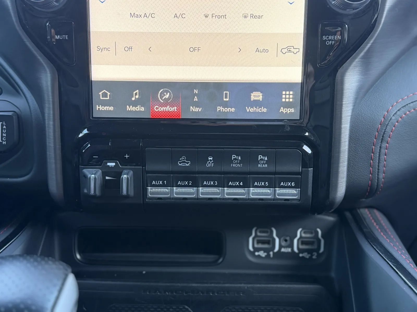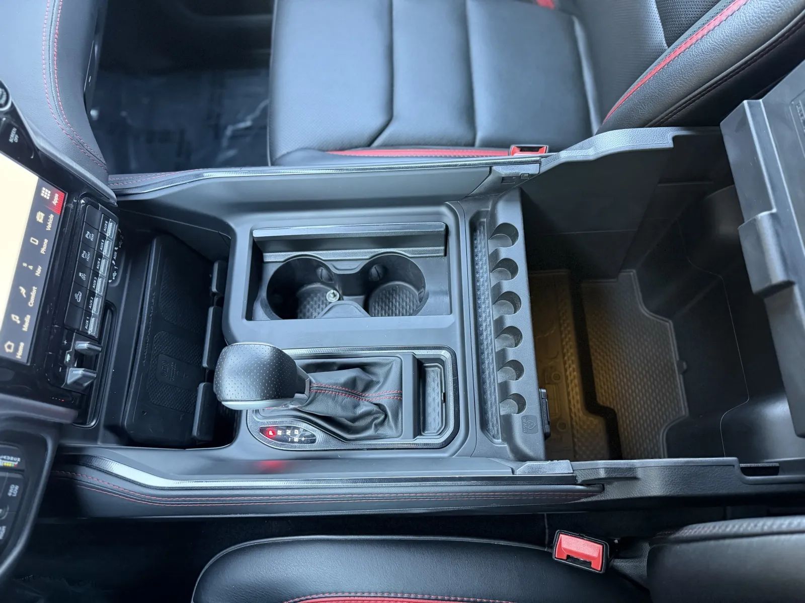 Front Automatic emergency braking, Lane keeping assist, Audible Warning Pre-collision warning system, Visual Warning Pre-collision warning system, Lane deviation sensors, Rearview Camera system, Front Side airbags, Rear Side curtain airbags, Front Side curtain airbags, 4-wheel ABS, Emergency braking preparation, Anti-lockout Power door locks, Auto-locking Power door locks, Brake drying, Hill Ascent Off-road driving assist, Hill Descent Off-road driving assist, Auto Off Electronic parking brake, Trailer stability control, Ventilated Disc Rear brake, Alarm Anti-theft system, Braking assist, Hill holder control, Ventilated Disc Front brake, Dual Front airbags, Vehicle Immobilizer Anti-theft system, Power brakes, LATCH System Child seat anchors, Electronic brakeforce distribution, Stability control, Traction control, In Dash Rearview monitor, Occupant Sensing Passenger Airbag deactivation, Front Seatbelt pretensioners, Front Seatbelt force limiters, Front Emergency locking retractors, Rear Emergency locking retractors, Roll stability control, Front Seatbelt warning sensor, Semi-automatic Adaptive stop and go cruise control, Adaptive cruise control, Head-up display, Proximity Entry System Multi-function remote, Heated steering wheel, Leather Steering wheel trim, Automatic Climate Control Front air conditioning, Dual Front air conditioning zones, 8 Driver seat power adjustments, Paddle Shifter Steering wheel mounted controls, Push-button start, Heated Driver seat, Leather Shift knob trim, Remote engine start, Heated Passenger seat, Auto-dimming Rearview mirror, Heated Rear seat, Sport Bucket Front seat, Cruise control, Leather Dash trim, Ambient lighting, Keyless Entry Multi-function remote, Rubber/vinyl Floor mat material, Alloy Shift knob trim, 60-40 Split Bench Rear seat, 115V Rear Power outlet(s), 115V Front Power outlet(s), Air filtration, Capless fuel filler system, Customizable instrument cluster, Footwell lights, 7 In. Instrument cluster screen size, Alloy Dash trim, Alloy Door trim, Folds Up Rear seat folding, Cloth Upholstery accents, USB Front Power outlet(s), USB-C Front Power outlet(s), USB Rear Power outlet(s), USB-C Rear Power outlet(s), 12V Front Power outlet(s), Rear Center Folding With Storage Armrests, Tilt And Telescopic Steering wheel, Second Row Rear vents, Rear Floor mats, Front Floor mats, 4-way Power Lumbar Driver seat power adjustments, Multi-function display, Front Console With Armrest And Storage Center console, Power steering, Compass, External temperature display, MPG Fuel economy display, Range Fuel economy display, Front Reading lights, Tachometer Gauge, Rear Reading lights, Reclining Driver seat power adjustments, Scuff Plate Door sill trim, Height Driver seat power adjustments, Front Cupholders, Maintenance Due Warnings and reminders, Front Overhead console, Rear Cupholders, 2 One-touch windows, Passenger Illuminating Vanity mirrors, Panic Alarm Multi-function remote, Audio Steering wheel mounted controls, Under Rear Seats Storage, Carpet Floor material, Cruise Control Steering wheel mounted controls, Phone Steering wheel mounted controls, Multi-function Steering wheel mounted controls, Front Seatback Storage, Voice Control Steering wheel mounted controls, In Seat Cushion Storage, Powertrain hour meter, Painted Aluminum Alloy Wheels, Cornering Headlights, LED Headlights, Auto High Beam Dimmer Headlights, LED Daytime running lights, Dual Tip Exhaust, LED Taillights, Power Folding Side mirror adjustments, LED Front fog lights, Power Horizontal Pickup sliding rear window, Driver Side Auto-dimming Side mirrors, Safety Reverse Power windows, Power Locking Tailgate, Power Side mirror adjustments, Heated Side mirrors, Acoustic Windshield Laminated glass, Full-size Matching Spare tire size, Puddle Lamps Exterior entry lights, Approach Lamps Exterior entry lights, Steel Spare wheel, Hood scoop, Variable Intermittent Front wipers, Rear privacy glass, Lift Assist Tailgate, Tire Pressure Monitoring System, Integrated Turn Signals Side mirrors, Powertrain Skid plate(s), Active grille shutters, Solar-tinted glass, Auto On/off Headlights, Rear Skid plate(s), Front Skid plate(s), Auto Delay Off Headlights, Clearance lights, Pickup bed light, Black Fender lip moldings, Black Rear bumper color, Black Window trim, Black Door handle color, Black Mirror color, Black Grille color, Black Headlight bezel color, Black Front bumper color, Black Exhaust tip color, Hotspot Wi-Fi, Touch Screen Display Navigation system, Voice Operated Navigation system, Harman/kardon Premium brand, Wireless Apple CarPlay Smartphone integration, Wireless Android Auto Smartphone integration, 12 In. Infotainment screen size, SiriusXM Guardian Smart device app compatibility, Bluetooth Wireless data link, Voice Operated Hands-free phone call integration, Voice Operated Radio, Bluetooth Auxiliary audio input, Surround sound, HD Radio Radio, Engine Start Smart device app function, 8 Total speakers, Touch Screen Display Radio, 1 Subwoofer, Real Time Traffic Navigation data, App Marketplace Integration Connected in-car apps, With Read Function Electronic messaging assistance, Voice Operated Electronic messaging assistance, SiriusXM Satellite radio, USB Auxiliary audio input, IPod/iPhone Auxiliary audio input, Uconnect Infotainment, Vehicle Location Smart device app function, Lock Operation Smart device app function, Horn/light Operation Smart device app function, Jack Auxiliary audio input, Roadside Assistance Driver assistance app, AM/FM Radio, Radio data system, Driving Performance Connected in-car apps, Speed sensitive volume control, SiriusXM Travel Link Connected in-car apps, Google POIs Connected in-car apps, Google Search Connected in-car apps, Send Destination To Vehicle Navigation data, Active suspension, Straight Line And Turning Automated trailer backup steering, Trailer brake controller, Class IV Trailer hitch, Electronic Suspension control, Ride Control Driver adjustable suspension, Electronic Hi-lo 4
