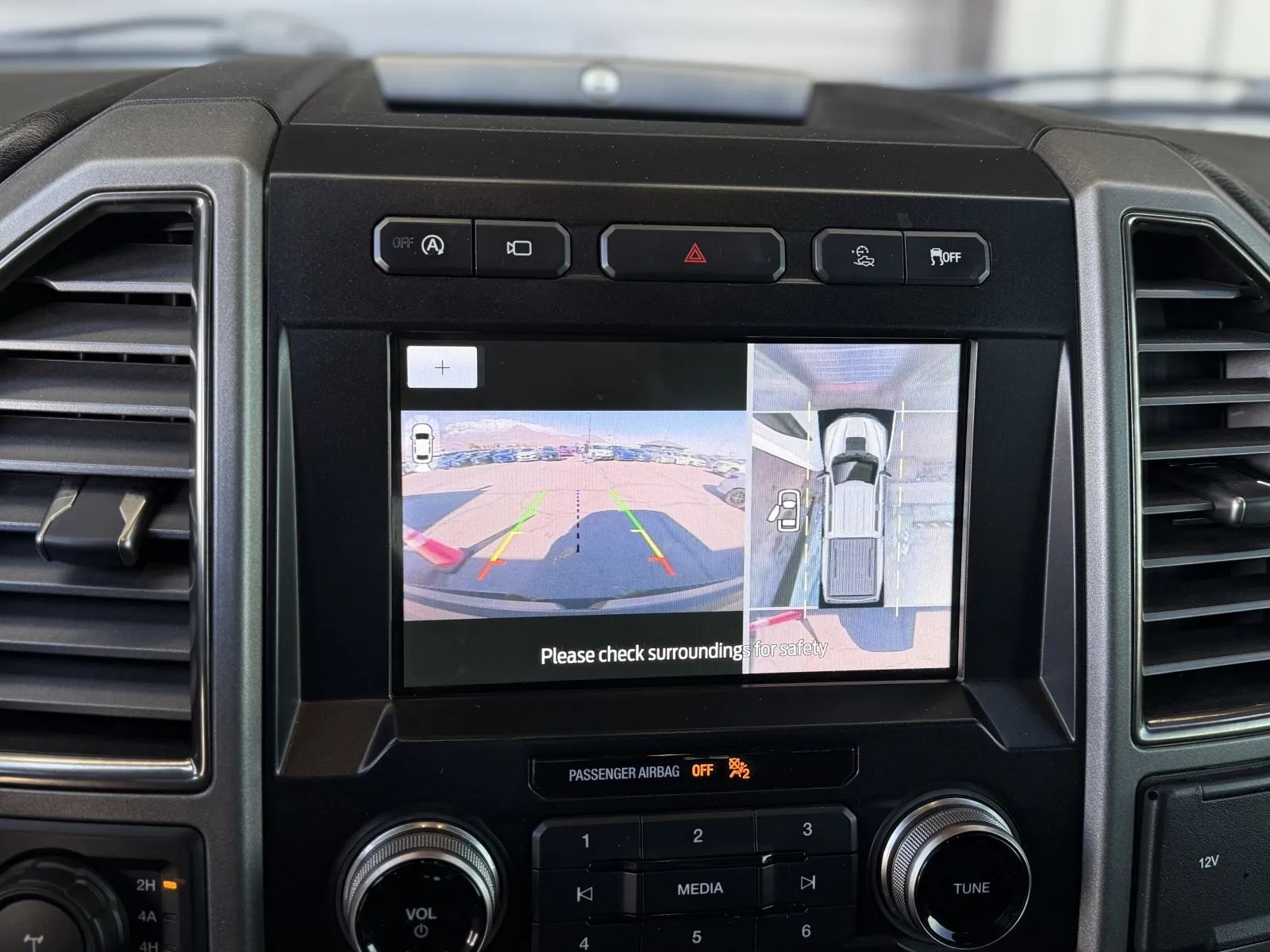 Front Automatic emergency braking, Audible Warning Pre-collision warning system, Visual Warning Pre-collision warning system, Rearview Camera system, Front Side airbags, Rear Side curtain airbags, Front Side curtain airbags, Rear Parking sensors, 4-wheel ABS, Emergency braking preparation, Cornering brake control, Auto-locking Power door locks, Programmable safety key, Hill Descent Off-road driving assist, Auto Off Electronic parking brake, Perimeter Alarm Anti-theft system, Trailer stability control, Ventilated Disc Rear brake, Alarm Anti-theft system, Braking assist, Hill holder control, Ventilated Disc Front brake, Dual Front airbags, Vehicle Immobilizer Anti-theft system, Power brakes, LATCH System Child seat anchors, Electronic brakeforce distribution, Stability control, Traction control, In Dash Rearview monitor, Occupant Sensing Passenger Airbag deactivation, Front Seatbelt pretensioners, Front Seatbelt force limiters, Front Emergency locking retractors, Post-collision Safety System Impact sensor, Alert System Impact sensor, Door Unlock Impact sensor, Roll stability control, Front Seatbelt warning sensor, Aluminum Alloy With Painted Accents Wheels, LED Headlights, Auto High Beam Dimmer Headlights, Dual Tip Exhaust, LED Taillights, Safety Reverse Power windows, Power Locking Tailgate, Running boards, Power Side mirror adjustments, Acoustic Windshield Laminated glass, Daytime running lights, Approach Lamps Exterior entry lights, Steel Spare wheel, Rear Window defogger, Variable Intermittent Front wipers, Rear privacy glass, Tire Pressure Monitoring System, Powertrain Skid plate(s), Active grille shutters, Rear Solar-tinted glass, Full-size Spare tire size, Auto On/off Headlights, Front Skid plate(s), Auto Delay Off Headlights, Spare Only Wheel locks, Pickup bed light, Black Fender lip moldings, Wiper Activated Headlights, Black Rear bumper color, Black Window trim, Black Door handle color, Black Mirror color, Manual Folding Side mirror adjustments, Black Surround Grille color, Black Grille color, Black Running board color, Black Front bumper color, Black Exhaust tip color, Hotspot Wi-Fi, Apple CarPlay Smartphone integration, Android Auto Smartphone integration, FordPass Connect Smart device app compatibility, Bluetooth Wireless data link, Voice Operated Hands-free phone call integration, Voice Operated Radio, Bluetooth Auxiliary audio input, Engine Start Smart device app function, 8 In. Infotainment screen size, Touch Screen Display Radio, 7 Total speakers, App Marketplace Integration Connected in-car apps, With Read Function Electronic messaging assistance, Voice Operated Electronic messaging assistance, SiriusXM Satellite radio, USB Auxiliary audio input, IPod/iPhone Auxiliary audio input, Vehicle Location Smart device app function, Lock Operation Smart device app function, SYNC Infotainment, Horn/light Operation Smart device app function, Maintenance Status Smart device app function, AM/FM Radio, Radio data system, Speed sensitive volume control, Google POIs Connected in-car apps, Google Search Connected in-car apps, Active suspension, Straight Line And Turning Automated trailer backup steering, Trailer brake controller, Class IV Trailer hitch, Auto start/stop, Electronic Suspension control, Ride Control Driver adjustable suspension, Electronic Hi-lo 4WD selector, Part Time W/ On Demand Setting 4WD, Center Locking differential, Rear Locking differential, 4-pin Trailer wiring, 7-pin Trailer wiring, Off-road Tuned suspension, Front Tow hooks, 800 CCA Battery rating, Rear Tow hooks, Drive mode selector, Independent Front suspension classification, Double Wishbone Front suspension, Front struts, 200 Amps Alternator, Auxiliary transmission fluid cooler, Diameter 32 Mm Rear stabilizer bar, Solid Live Axle Rear suspension classification, Diameter 31 Mm Front stabilizer bar, Tow/Haul mode, Battery saver, Tie-down Anchors Pickup bed cargo management, Proximity Entry System Multi-function remote, Leather Steering wheel trim, 8 Driver seat power adjustments, Paddle Shifter Steering wheel mounted controls, Leather Shift knob trim, Garage Door Opener Universal remote transmitter, Auto-dimming Rearview mirror, Variable/speed-proportional Power steering, Cruise control, Cloth Upholstery, Bucket Front seat, Front air conditioning, Aluminum Door sill trim, Keypad entry, Keyless Entry Multi-function remote, Rubber/vinyl Floor mat material, 60-40 Split Bench Rear seat, 115V Rear Power outlet(s), 115V Front Power outlet(s), Air filtration, Capless fuel filler system, Alloy Dash trim, Alloy Door trim, Folds Up Rear seat folding, Transmission Temperature Gauge, Split Rear seat folding, 12V Rear Power outlet(s), 12V Front Power outlet(s), Rear Center Folding With Storage Armrests, Tilt And Telescopic Steering wheel, Rear Floor mats, Front Floor mats, Multi-function display, Oil Pressure Gauge, Front Console With Armrest And Storage Center console, Compass, Rear Center With Cupholders Armrests, External temperature display, MPG Fuel economy display, Range Fuel economy display, Front Reading lights, Tachometer Gauge, Rear Reading lights, Lumbar Driver seat power adjustments, Reclining Driver seat power adjustments, Height Driver seat power adjustments, 4.2 In. Instrument cluster screen size, Front Cupholders, Maintenance Due Warnings and reminders, Front Overhead console, Rear Cupholders, 2 One-touch windows, Panic Alarm Multi-function remote, Audio Steering wheel mounted controls, Dual Vanity mirrors, Under Rear Seats Storage, Carpet Floor material, Cruise Control Steering wheel mounted controls, Phone Steering wheel mounted controls, Multi-function Steering wheel mounted controls, Front Seatback Storage, Voice Control Steering wheel mounted controls, Single Front air conditioning zones, Powertrain hour meter, Sunglasses Holder Storage