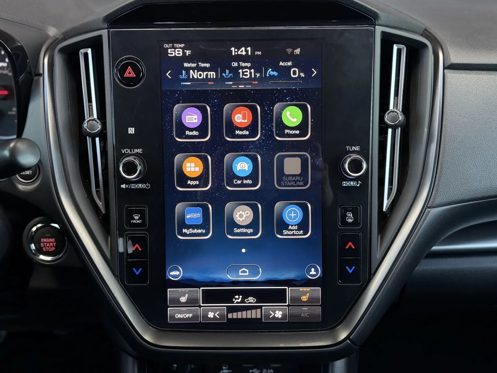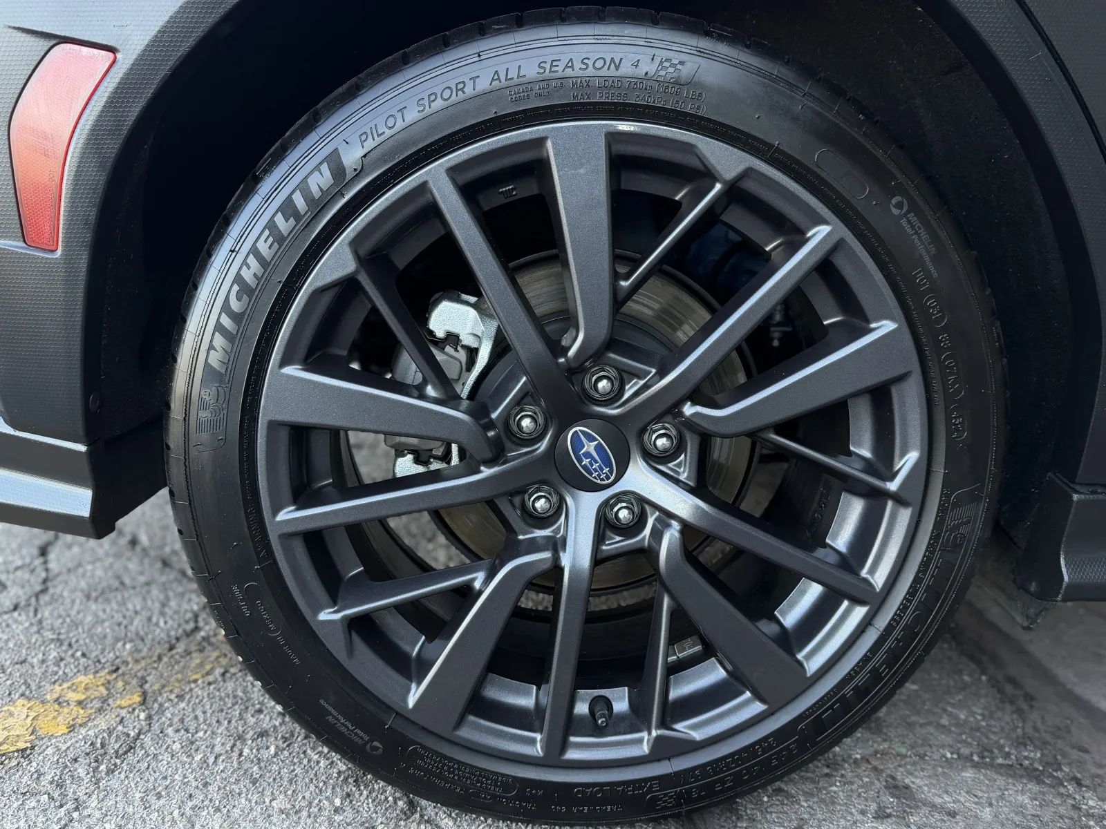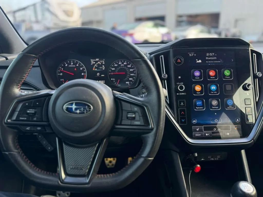 Painted Aluminum Alloy Wheels, LED Headlights, Self-leveling Headlights, Auto High Beam Dimmer Headlights, LED Daytime running lights, Quad Tip Exhaust, LED Front fog lights, Safety Reverse Power windows, Heated windshield wiper rests, Power Side mirror adjustments, Heated Side mirrors, Tire Sealant Spare tire kit, Inflator Kit Spare tire kit, Ground effects/lower spoilers, Hood scoop, Lip Rear spoiler, Rear Window defogger, Variable Intermittent Front wipers, Tire Pressure Monitoring System, Auto On/off Headlights, Auto Delay Off Headlights, Black Fender lip moldings, Front Underguard Bumper detail, Rear Underguard Bumper detail, Wiper Activated Headlights, Black Window trim, Manual Folding Side mirror adjustments, Black Grille color, Stainless Steel Exhaust tip color, Black Headlight bezel color, Check rear seat reminder, Driver Knee airbags, Rearview Camera system, Front Side airbags, Rear Side curtain airbags, Front Side curtain airbags, 4-wheel ABS, Cornering brake control, Auto-locking Power door locks, Ventilated Disc Rear brake, Alarm Anti-theft system, Braking assist, Hill holder control, Ventilated Disc Front brake, Dual Front airbags, Vehicle Immobilizer Anti-theft system, Power brakes, LATCH System Child seat anchors, Electronic brakeforce distribution, Stability control, Traction control, In Dash Rearview monitor, Occupant Sensing Passenger Airbag deactivation, Front Seatbelt pretensioners, Front Seatbelt force limiters, Front Emergency locking retractors, Rear Seatbelt pretensioners, Rear Emergency locking retractors, Front Seatbelt warning sensor, Fuel Cut-off Impact sensor, Proximity Entry System Multi-function remote, Leather Steering wheel trim, Automatic Climate Control Front air conditioning, Dual Front air conditioning zones, Push-button start, Heated Driver seat, Leather Shift knob trim, Heated Passenger seat, Auto-dimming Rearview mirror, Sport Bucket Front seat, Contrast Stitching Upholstery accents, Variable/speed-proportional Power steering, Cruise control, Cloth Upholstery, Simulated Carbon Fiber Door trim, Chrome Interior accents, 60-40 Split Bench Rear seat, Carpet Floor mat material, Air filtration, Footwell lights, Aluminum Alloy Foot pedal trim, Flat Rear seat folding, USB Front Power outlet(s), USB Rear Power outlet(s), Two 12V Front Power outlet(s), Tilt And Telescopic Steering wheel, Rear Floor mats, Front Floor mats, Multi-function display, Front Console With Armrest And Storage Center console, Rear Center With Cupholders Armrests, Rear Folding Armrests, Illuminated Center console, 4 One-touch windows, External temperature display, MPG Fuel economy display, Range Fuel economy display, 6 Driver seat manual adjustments, Front Reading lights, Tachometer Gauge, Door Courtesy lights, Front Cupholders, Maintenance Due Warnings and reminders, Front Overhead console, Dual Illuminating Vanity mirrors, Rear Cupholders, Cargo area light, Metallic Dash trim, Panic Alarm Multi-function remote, Audio Steering wheel mounted controls, Carpet Floor material, Cruise Control Steering wheel mounted controls, Phone Steering wheel mounted controls, Multi-function Steering wheel mounted controls, Front Seatback Storage, Voice Control Steering wheel mounted controls, Trunk Release Multi-function remote, Organizer Tray Center console, 3.5 In. Instrument cluster screen size, Apple CarPlay Smartphone integration, Android Auto Smartphone integration, 11.6 In. Infotainment screen size, MySubaru Smart device app compatibility, Hotspot Compatible Wi-Fi, Bluetooth Wireless data link, Voice Operated Hands-free phone call integration, Voice Operated Radio, Bluetooth Auxiliary audio input, HD Radio Radio, Engine Start Smart device app function, Touch Screen Display Radio, With Read Function Electronic messaging assistance, Voice Operated Electronic messaging assistance, SiriusXM Satellite radio, 6 Total speakers, USB Auxiliary audio input, IPod/iPhone Auxiliary audio input, Voice Guided Directions Satellite communications, Vehicle Location Smart device app function, Lock Operation Smart device app function, STARLINK Infotainment, Horn/light Operation Smart device app function, Maintenance Status Smart device app function, Maintenance Scheduling Smart device app function, Jack Auxiliary audio input, Roadside Assistance Driver assistance app, AM/FM Radio, Radio data system, Speed sensitive volume control, SiriusXM Travel Link Connected in-car apps, Google POIs Connected in-car apps, Google Search Connected in-car apps, Performance exhaust, Sport Tuned suspension, Full Time 4WD, Independent Front suspension classification, Independent Rear suspension classification, MacPherson Front struts, Double Wishbone Rear suspension, Front stabilizer bar, Rear stabilizer bar, Battery saver