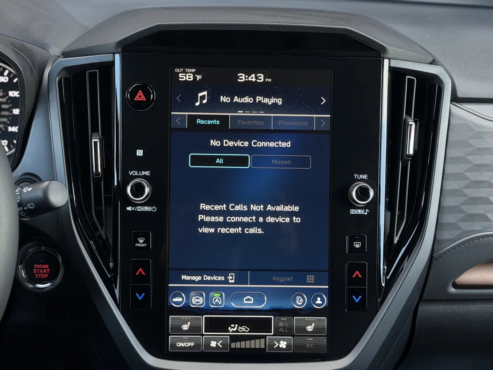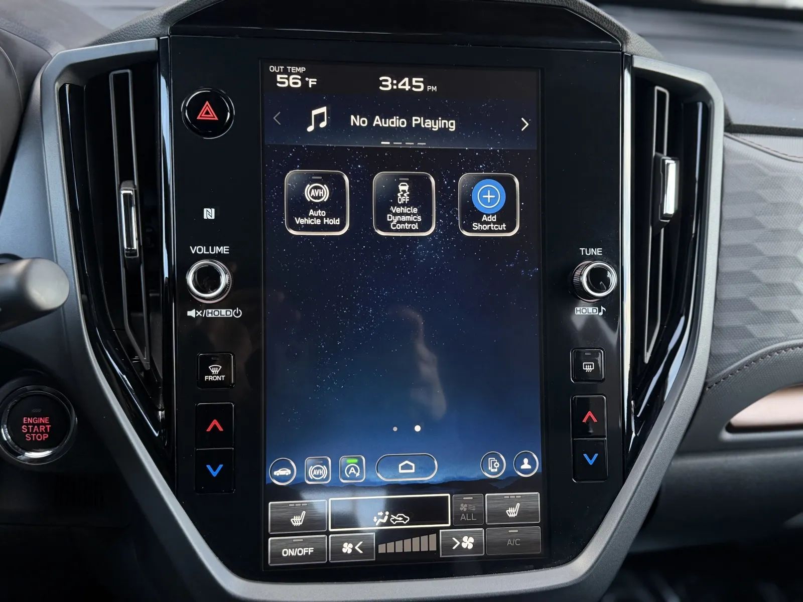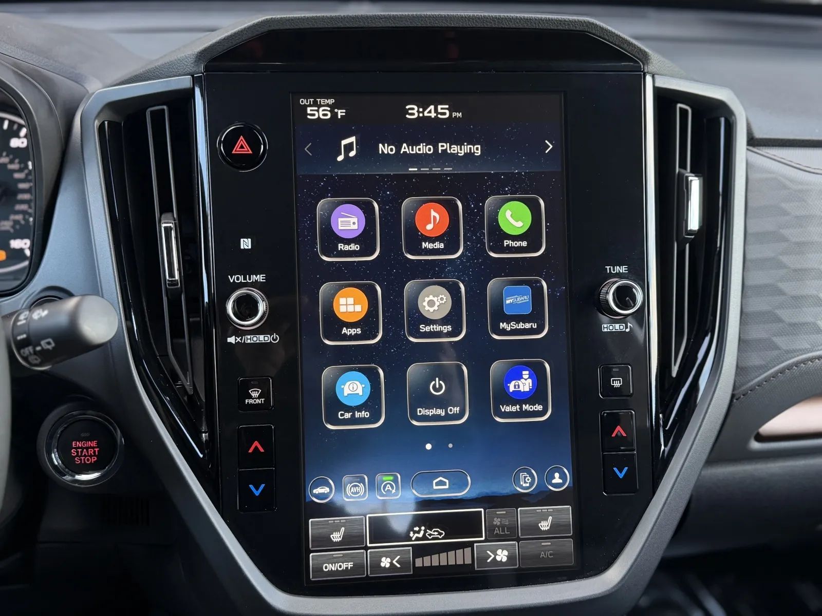 Front Pedestrian Automatic emergency braking, Front Automatic emergency braking, Intersection/junction Turn Automatic emergency braking, Evasive steering assist, Lane keeping assist with blind spot integration, Lane keeping assist, Check rear seat reminder, Pedestrian Detection Pre-collision warning system, Audible Warning Pre-collision warning system, Visual Warning Pre-collision warning system, Sensor/alert Blind spot safety, Rear Cross traffic alert, Lane deviation sensors, Driver Knee airbags, Rearview Camera system, Front Side airbags, Rear Side curtain airbags, Front Side curtain airbags, Rear Parking sensors, 4-wheel ABS, Anti-lockout Power door locks, Cornering brake control, Auto-locking Power door locks, Rear Camera system washer, Intersection/junction Turn Pre-collision warning system, Hill Descent Off-road driving assist, Auto Off Electronic parking brake, Trailer stability control, Ventilated Disc Rear brake, Alarm Anti-theft system, Braking assist, Hill holder control, Ventilated Disc Front brake, Dual Front airbags, Vehicle Immobilizer Anti-theft system, Power brakes, LATCH System Child seat anchors, Electronic brakeforce distribution, Stability control, Traction control, In Dash Rearview monitor, Occupant Sensing Passenger Airbag deactivation, Front Seatbelt pretensioners, Front Seatbelt force limiters, Front Emergency locking retractors, Alert System Impact sensor, Door Unlock Impact sensor, Rear Emergency locking retractors, Front Seatbelt warning sensor, Fuel Cut-off Impact sensor, Semi-automatic Adaptive stop and go cruise control, Lane Centering Autonomous lane guidance, Adaptive cruise control, Proximity Entry System Multi-function remote, 10 Driver seat power adjustments, Leather Steering wheel trim, Automatic Climate Control Front air conditioning, Dual Front air conditioning zones, Paddle Shifter Steering wheel mounted controls, Front Wireless charging station, Push-button start, Heated Driver seat, Heated Passenger seat, Contrast Stitching Upholstery accents, Variable/speed-proportional Power steering, Bucket Front seat, Simulated Leather Shift knob trim, 60-40 Split Bench Rear seat, Leatherette Door trim, Leatherette Dash trim, Leatherette Center console trim, Carpet Floor mat material, Air filtration, Flat Rear seat folding, In Floor Storage, Split Rear seat folding, Retractable Cargo cover, USB Front Power outlet(s), USB-C Front Power outlet(s), USB Rear Power outlet(s), USB-C Rear Power outlet(s), 12V Cargo Area Power outlet(s), 12V Front Power outlet(s), Tilt And Telescopic Steering wheel, Second Row Rear vents, Rear Floor mats, Front Floor mats, Multi-function display, Front Console With Armrest And Storage Center console, Rear Center With Cupholders Armrests, Rear Folding Armrests, Illuminated Center console, External temperature display, MPG Fuel economy display, Range Fuel economy display, Front Reading lights, Tachometer Gauge, Reclining Rear seat manual adjustments, Door Courtesy lights, Metallic-tone Interior accents, Manual Day/night Rearview mirror, Rear Reading lights, Lumbar Driver seat power adjustments, Reclining Driver seat power adjustments, Height Driver seat power adjustments, 4.2 In. Instrument cluster screen size, Front Cupholders, Maintenance Due Warnings and reminders, Front Overhead console, Dual Illuminating Vanity mirrors, Rear Cupholders, Cargo area light, 2 One-touch windows, Panic Alarm Multi-function remote, Audio Steering wheel mounted controls, Cargo Tie-down Anchors And Hooks Storage, Carpet Floor material, Cruise Control Steering wheel mounted controls, Phone Steering wheel mounted controls, Multi-function Steering wheel mounted controls, Front Seatback Storage, Voice Control Steering wheel mounted controls, Sunglasses Holder Storage, Trunk Release Multi-function remote, Organizer Tray Center console, Power Panoramic Moonroof / Sunroof, Painted Aluminum Alloy Wheels, Cornering Headlights, LED Headlights, Self-leveling Headlights, Auto High Beam Dimmer Headlights, LED Taillights, LED Front fog lights, Safety Reverse Power windows, Heated windshield wiper rests, Power Side mirror adjustments, Heated Side mirrors, Acoustic Windshield Laminated glass, Daytime running lights, Approach Lamps Exterior entry lights, Steel Spare wheel, Black Roof rails, Intermittent Rear wiper, Rear Window defogger, Variable Intermittent Front wipers, Rear privacy glass, Auto-on In Reverse Rear wiper, With Washer Rear wiper, Tire Pressure Monitoring System, Integrated Turn Signals Side mirrors, Roofline Rear spoiler, Active grille shutters, Tinted glass, Auto On/off Headlights, Auto Delay Off Headlights, Temporary Spare tire size, One-touch Open/close Moonroof / Sunroof, Sliding Sunshade Moonroof / Sunroof, Anti-trapping Moonroof / Sunroof, Black Fender lip moldings, Front Underguard Bumper detail, Rear Underguard Bumper detail, Wiper Activated Headlights, Fixed Liftgate window, Liftgate Rear trunk/liftgate, Black Rear bumper color, Black Window trim, Black Mirror color, Manual Folding Side mirror adjustments, Black Grille color, Stainless Steel Exhaust tip color, Black Headlight bezel color, Wireless Apple CarPlay Smartphone integration, Wireless Android Auto Smartphone integration, 11.6 In. Infotainment screen size, MySubaru Smart device app compatibility, Hotspot Compatible Wi-Fi, Bluetooth Wireless data link, Voice Operated Hands-free phone call integration, Voice Operated Radio, Bluetooth Auxiliary audio input, HD Radio Radio, Pandora Internet radio app, Engine Start Smart device app function, Touch Screen Display Radio, With Read Function Electronic messaging assistance, Voice Operated Electronic messaging assistance, SiriusXM Satellite radio, 6 Total speakers, Stitcher Internet radio app, AHA Internet radio app, USB Auxiliary audio input, IPod/iPhone Auxiliary audio input, Vehicle Location Smart device app function, Lock Operation Smart device app function, STARLINK Infotainment, Horn/light Operation Smart device app function, Maintenance Statu