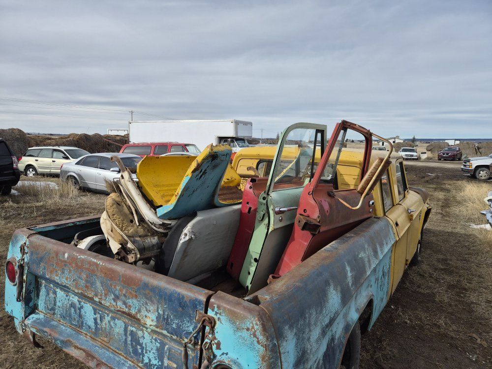 Comes with all the parts necessary to put this truck back together. I will even include a couple extra door cards for the interior doors. There's extra door skins, front bumper. Rear bumper core support extra hinges. Etc, everything you see in the pile of parts.