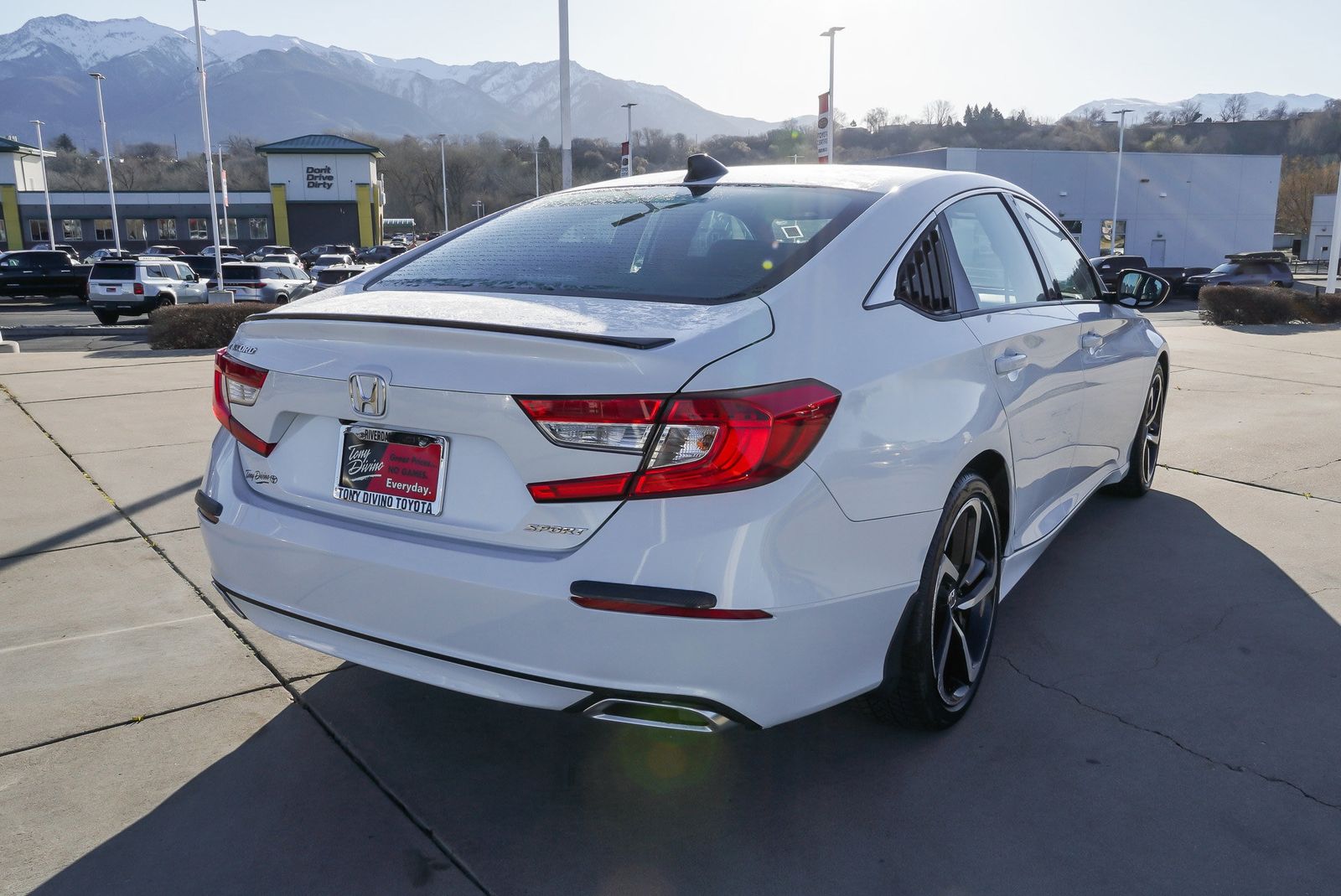 Scores 35 Highway MPG and 29 City MPG! This Honda Accord Sedan delivers a Intercooled Turbo Regular Unleaded I-4 1.5 L/91 engine powering this Variable transmission. Wireless Phone Connectivity, Wheels: 19 Machine-Finished Alloy w/Black Inserts, Vehicle Stability Assist (VSA) Electronic Stability Control (ESC). This Honda Accord Sedan Comes Equipped with These Options Valet Function, Trunk Rear Cargo Access, Trip Computer, Transmission: Continuously Variable -inc: sport mode and paddle shifters, Transmission w/Driver Selectable Mode, Tires: 235/40R19 96V AS, Strut Front Suspension w/Coil Springs, Steel Spare Wheel, Speed Sensitive Variable Intermittent Wipers, Smart Device Integration. Visit Us Today Come in for a quick visit at Tony Divino Toyota , 777 West Riverdale Rd, Riverdale, UT 84405 to claim your Honda Accord Sedan! * Estimated Monthly Payment will depend on vehicle make and model and will be determined upon actual vehicle inspection. All payments are estimates. Tax, title, registration and documentation fee ($349) are extra.* While every reasonable effort is made to ensure the accuracy of this information, we are not responsible for any errors or omissions contained on these pages. Please verify any information in question with Tony Divino Toyota.