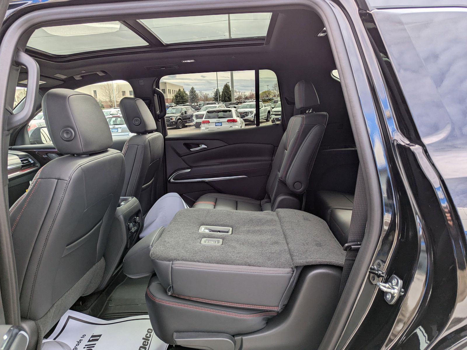 AWD, 12 Speakers, 1st and 2nd Row All-Weather Floor Liners, 3rd Row All-Weather Floor Liner, 3rd row seats: split-bench, 4-Wheel Disc Brakes, 6-Way Power Front Passenger Seat Adjuster, 8-Way Power Driver Seat Adjuster, ABS brakes, Air Conditioning, Alloy wheels, AM/FM radio: SiriusXM with 360L, Apple CarPlay/Android Auto, Auto High-beam Headlights, Auto tilt-away steering wheel, Auto-dimming door mirrors, Automatic temperature control, Bose Premium 12-Speaker Audio System Feature, Brake assist, Bumpers: body-color, Child-Seat-Sensing Airbag, Compass, Delay-off headlights, Driver 4-Way Power Lumbar Seat Adjuster, Driver door bin, Driver vanity mirror, Dual front impact airbags, Dual front side impact airbags, Electronic Stability Control, Emergency communication system: OnStar, Exterior Parking Camera Rear, Floor Liner Package, Four wheel independent suspension, Front anti-roll bar, Front Bucket Seats, Front Center Armrest, Front dual zone A/C, Front Passenger 4-Way Power Lumbar Seat Adjuster, Front reading lights, Fully automatic headlights, Garage door transmitter, Heated door mirrors, Heated Driver and Front Passenger Seats, Heated front seats, Heated rear seats, Heated steering wheel, Illuminated entry, Integrated Cargo Liner, Low tire pressure warning, Memory seat, Navigation System, Occupant sensing airbag, Outside temperature display, Overhead airbag, Overhead console, Panic alarm, Passenger door bin, Passenger vanity mirror, Perforated Leather-Appointed Seat Trim, Power door mirrors, Power driver seat, Power Dual Glass Panoramic Sliding Sunroof, Power Liftgate, Power passenger seat, Power steering, Power windows, Preferred Equipment Group 2RS, Radio data system, Radio: : Audio System w/17.7 Diagonal Display, Rain sensing wipers, Rear air conditioning, Rear anti-roll bar, Rear reading lights, Rear window defroster, Rear window wiper, Remote keyless entry, Security system, SiriusXM with 360L Trial Subscription, Speed control, Speed-sensing steering, Spoiler, Sport steering wheel, Steering wheel memory, Steering wheel mounted audio controls, Tachometer, Telescoping steering wheel, Tilt steering wheel, Traction control, Trip computer, Turn signal indicator mirrors, Variably intermittent wipers, Ventilated Driver and Front Passenger Seats, Ventilated front seats, Voltmeter, Wheels: 22 High Gloss Black Painted Aluminum, AWD.