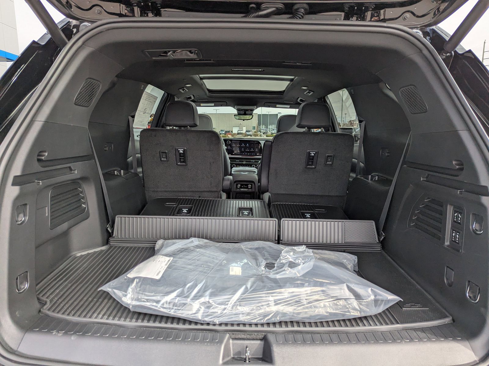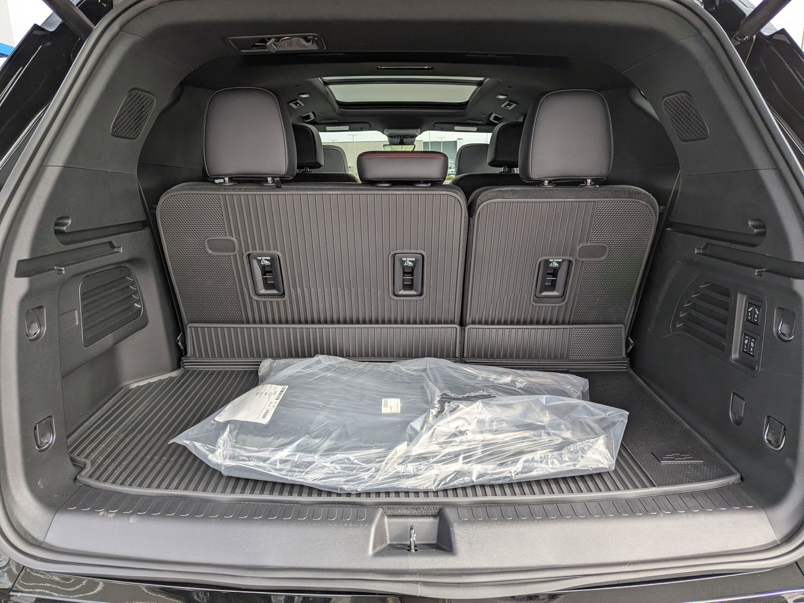 SUNROOF POWER DUAL GLASS PANORAMIC SLIDING WITH POWER SUNSHADE,LPO ALL-WEATHER FLOOR LINER THIRD ROW,RS JET BLACK WITH TORCH RED ACCENTS PERFORATED LEATHER-APPOINTED SEAT TRIM,LICENSE PLATE FRONT MOUNTING PACKAGE (will be forced on orders with ship-to states that require a front license plate),WHEELS 22 (55.9 CM) HIGH GLOSS BLACK PAINTED ALUMINUM (STD),MOSAIC BLACK METALLIC,ENGINE 2.5L TURBO DOHC SIDI WITH VARIABLE VALVE TIMING (VVT) (328 hp [244 kW] @ 5500 rpm 326 lb-ft of torque [442 N-m] @ 3500 rpm) (STD),TRANSMISSION 8-SPEED AUTOMATIC (STD),SEATS FRONT BUCKET (STD),LPO FLOOR LINER PACKAGE includes (CAV) Integrated cargo liner LPO (RIA) first and second row all-weather floor liners LPO and (RIB) third row all-weather floor liner LPO,LPO INTEGRATED CARGO LINER,RS PREFERRED EQUIPMENT GROUP includes standard equipment,LPO ALL-WEATHER FLOOR LINERS FIRST AND SECOND ROW,Heated Front Seat(s),Remote Engine Start,Heated Steering Wheel,Cruise Control,Premium Sound System,Rear Parking Aid,Telematics,Lane Departure Warning,Automatic Parking,Lane Keeping Assist,Adaptive Cruise Control,Requires Subscription,Cruise Control Steering Assist,Driver Monitoring,Front Collision Warning,Automatic Highbeams,Cruise Control,Lane Departure Warning,Lane Keeping Assist,Adaptive Cruise Control,Front Collision Mitigation,Front Collision Warning,Rear Collision Mitigation,Back-Up Camera,Aerial View Display System,Tow Hitch,Turbocharged,All Wheel Drive,ABS,4-Wheel Disc Brakes,Aluminum Wheels,Tires - Front Performance,Tires - Rear Performance,Conventional Spare Tire,Temporary Spare Tire,Automatic Headlights,Automatic Highbeams,Privacy Glass,Privacy Glass,Heated Mirrors,Power Mirror(s),Integrated Turn Signal Mirrors,Power Folding Mirrors,Intermittent Wipers,Variable Speed Intermittent Wipers,Rain Sensing Wipers,Remote Trunk Release,Power Liftgate,AM/FM Stereo,Bluetooth Connection,Auxiliary Audio Input,Smart Device Integration,Requires Subscription,Premium Sound System,Satellite Radio,Requires Subscription,WiFi Hotspot,Bucket Seats,3rd Row Seat,Bucket Seats,Leather Seats,Power Driver Seat,Driver Adjustable Lumbar,Power Passenger Seat,Passenger Adjustable Lumbar,Heated Front Seat(s),Heated Front Seat(s),Cooled Front Seat(s),Bucket Seats,Rear Bucket Seats,Heated Rear Seat(s),3rd Row Seat,Power Driver Seat,Adjustable Steering Wheel,Mirror Memory,Seat Memory,Floor Mats,Floor Mats,Adjustable Steering Wheel,Heated Steering Wheel,Power Windows,Keyless Entry,Power Door Locks,Remote Engine Start,Universal Garage Door Opener,Cruise Control,Adaptive Cruise Control,MP3 Capability,Auxiliary Audio Input,Auxiliary Audio Input,Climate Control,Multi-Zone A/C,A/C,Rear A/C,A/C,Rear A/C,Back-Up Camera,Brake Assist,Front Collision Mitigation,Front Collision Warning,Front Collision Mitigation,Front Collision Warning,Cross-Traffic Alert,Rear Collision Mitigation,Driver Air Bag,Passenger Air Bag,Front Side Air Bag,Rear Side Air Bag,Passenger Air Bag Sensor,Telematics,Requires Subscription,Telematics,Navigation from Telematics,Requires Subscription,Telematics,Navigation from Telematics,WiFi Hotspot,Requires Subscription,Driver Restriction Features,Back-Up Camera,Aerial View Display System,Blind Spot Monitor,Evasion Assist,Cruise Control,Telematics,Lane Departure Warning,Lane Keeping Assist,Adaptive Cruise Control,Requires Subscription,Cruise Control Steering Assist,Driver Monitoring,Rear Parking Aid,Automatic Parking,Front Collision Warning,Front Collision Warning,Driver Monitoring,Passenger Air Bag Sensor,Tire Pressure Monitor