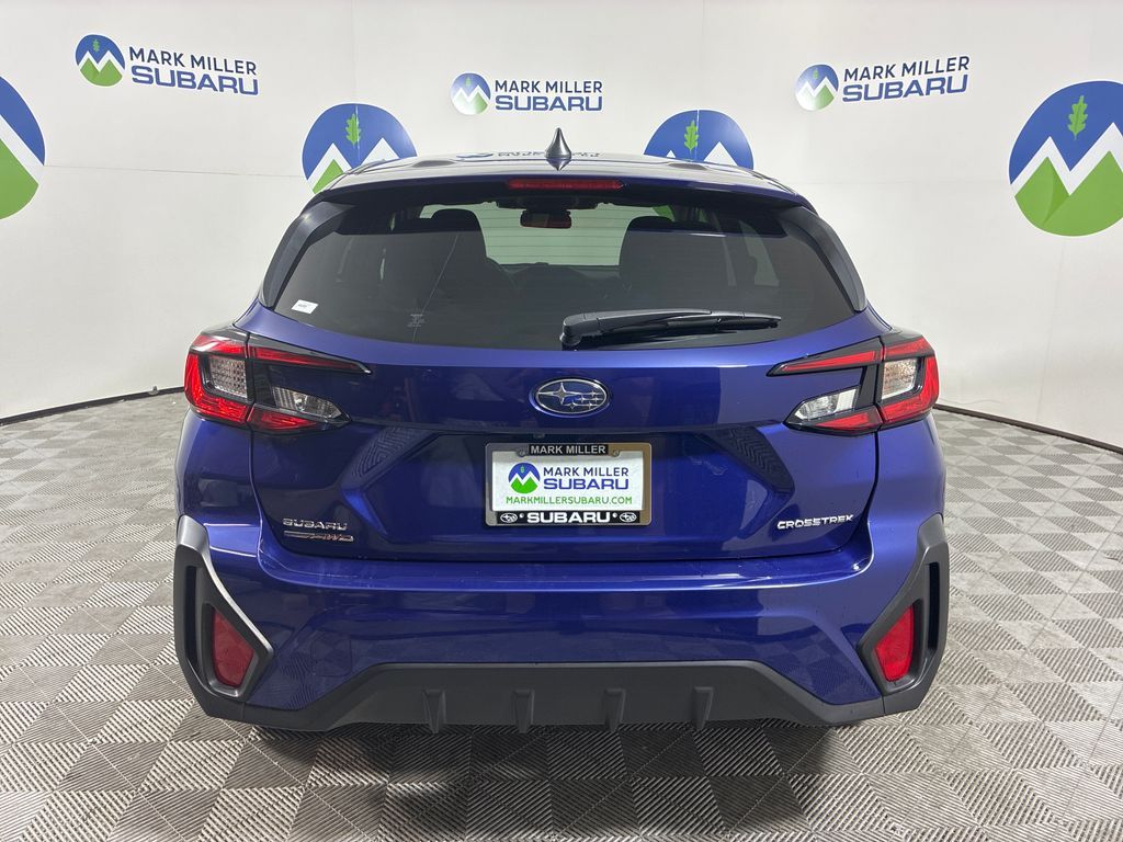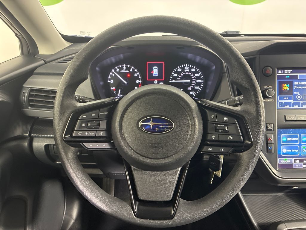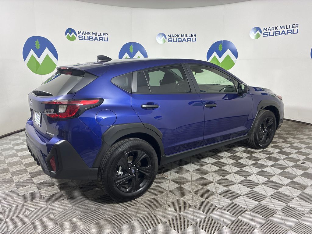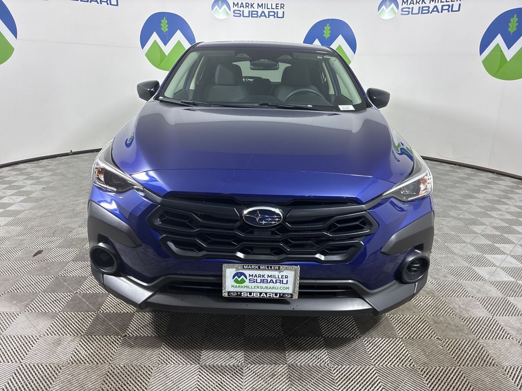 This 2024 Sapphire Blue Pearl Subaru Crosstrek Base AWD is well equipped and includes these features and benefits: Standard Model, 3.90 Axle Ratio, 4 Speakers, 4-Wheel Disc Brakes, ABS brakes, Air Conditioning, Alloy wheels, AM/FM radio: SiriusXM, Anti-whiplash front head restraints, Auto High-beam Headlights, Automatic temperature control, Brake assist, Bumpers: body-color, Cloth Upholstery, Driver door bin, Driver vanity mirror, Dual front impact airbags, Dual front side impact airbags, Electronic Stability Control, Exterior Parking Camera Rear, Four wheel independent suspension, Front anti-roll bar, Front Bucket Seats, Front Center Armrest, Front dual zone A/C, Front reading lights, Fully automatic headlights, Illuminated entry, Knee airbag, Low tire pressure warning, Occupant sensing airbag, Outside temperature display, Overhead airbag, Overhead console, Panic alarm, Passenger door bin, Passenger vanity mirror, Power door mirrors, Power steering, Power windows, Radio data system, Radio: Subaru STARLINK Dual 7.0'' Multimedia System, Rear anti-roll bar, Rear window defroster, Rear window wiper, Remote keyless entry, Security system, Speed control, Speed-sensing steering, Split folding rear seat, Spoiler, STARLINK/Apple CarPlay/Android Auto, Steering wheel mounted audio controls, Tachometer, Telescoping steering wheel, Tilt steering wheel, Traction control, Trip computer, Variably intermittent wipers, and Wheels: 17'' x 7.0J Dark Gray Aluminum Alloy.