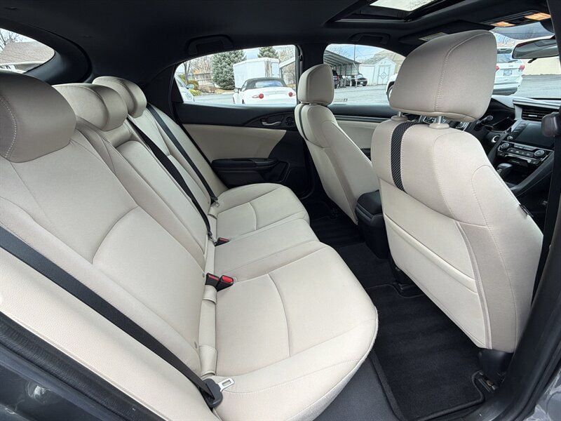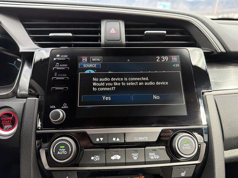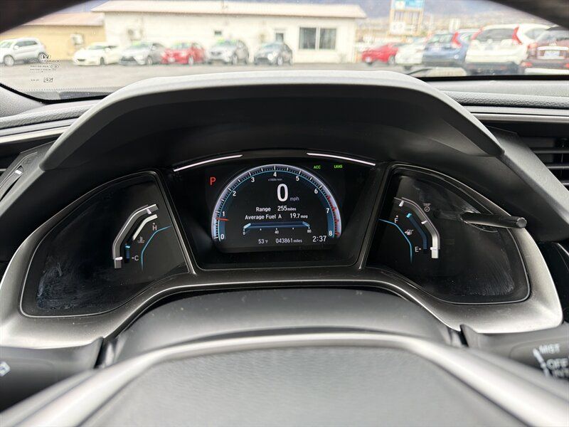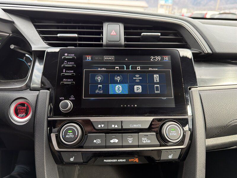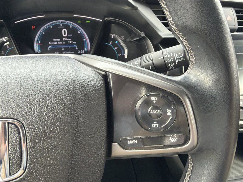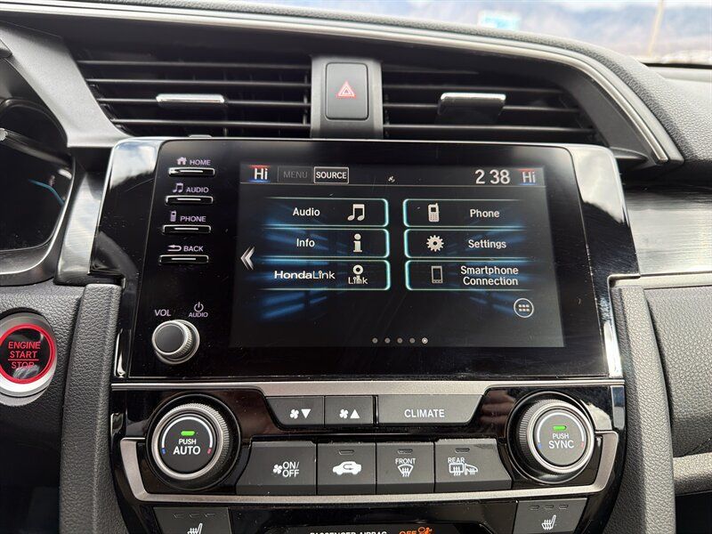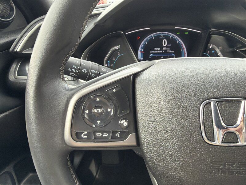 INSTALLED FEATURES: Air filtration, Front air conditioning: automatic climate control, Front air conditioning zones: dual, Rear vents: second row, Airbag deactivation: occupant sensing passenger, Front airbags: dual, Side airbags: front, Side curtain airbags: front / rear, Antenna type: diversity / mast, Auxiliary audio input: Bluetooth / iPod/iPhone / USB, Internet radio app: Pandora, Radio: AM/FM / HD radio / touch screen display / voice operated, Radio data system, Satellite radio: SiriusXM, Speed sensitive volume control, Total speakers: 8, Watts: 180, ABS: 4-wheel, Braking assist, Cornering brake control, Electronic brakeforce distribution, Electronic parking brake: auto off, Front brake type: ventilated disc, Power brakes, Rear brake type: disc, Armrests: rear center folding with storage / rear center with cupholders, Dash trim: simulated alloy, Door trim: simulated alloy, Floor mat material: carpet, Floor material: carpet, Floor mats: front / rear, Shift knob trim: leather, Steering wheel trim: leather, Adaptive cruise control, Adaptive stop and go cruise control: semi-automatic, Assist handle: front / rear, Autonomous lane guidance: lane centering, Capless fuel filler system, Cargo area light, Cargo cover: retractable, Center console: front console with armrest and storage, Courtesy lights: door, Cupholders: front / rear, Multi-function remote: panic alarm / proximity entry system / trunk release, One-touch windows: 2, Power outlet(s): 12V front, Power steering: variable/speed-proportional, Power windows: lockout button, Push-button start, Reading lights: front, Rearview mirror: manual day/night, Remote engine start, Steering wheel: tilt and telescopic, Steering wheel mounted controls: audio / cruise control / multi-function / phone, Storage: cargo tie-down anchors and hooks / door pockets / front seatback, Vanity mirrors: dual illuminating, Door handle color: body-color, Front bumper color: body-color, Grille color: black, Mirror color: body-color, Rear bumper color: body-color, Rear spoiler: roofline, Rear spoiler color: body-color, Rear trunk/liftgate: liftgate, Window trim: chrome, Connected in-car apps: Google POIs / Google search, Infotainment: HondaLink, Infotainment screen size: 7 in., Smartphone integration: Android Auto / Apple CarPlay, Clock, Digital odometer, External temperature display, Fuel economy display: MPG / range, Gauge: boost / tachometer, Multi-function display, Trip odometer, Warnings and reminders: low battery / low fuel level / maintenance due / turn off headlights, Daytime running lights: LED, Exterior entry lights: approach lamps, Front fog lights: LED, Headlights: auto delay off / auto high beam dimmer / auto on/off / halogen, Taillights: LED, Side mirror adjustments: manual folding / power, Side mirrors: heated, Battery: maintenance-free, Battery saver, Drive mode selector, Moonroof / Sunroof: anti-trapping / one-touch open/close / power glass / sliding sunshade / tilt/slide, Automatic emergency braking: front / front pedestrian, Blind spot safety: camera display, Camera system: rear multi-view, Child safety door locks, Child seat anchors: LATCH system, Crumple zones: front, Lane deviation sensors, Lane keeping assist, Pre-collision warning system: audible warning / pedestrian detection / visual warning, Rearview monitor: in dash, Emergency locking retractors: front / rear, Front seatbelts: 3-point, Rear seatbelts: 3-point, Seatbelt force limiters: front, Seatbelt pretensioners: front, Seatbelt warning sensor: front, Driver seat: heated, Driver seat manual adjustments: 6 / height / reclining, Front headrests: 2 / adjustable, Front seat type: bucket, Passenger seat: heated, Passenger seat manual adjustments: 4 / reclining, Rear headrests: 3 / adjustable, Rear seat folding: split, Rear seat type: 60-40 split bench, Upholstery: cloth, Anti-theft system: alarm / vehicle immobilizer, Power door locks: anti-lockout / auto-locking, Hill holder control, Stability control, Traction control, Front shock type: gas, Front spring type: coil, Front stabilizer bar: diameter 26 mm, Front struts: MacPherson, Front suspension classification: independent, Front suspension type: lower control arms, Rear shock type: gas, Rear spring type: coil, Rear stabilizer bar: diameter 17 mm, Rear suspension classification: independent, Rear suspension type: multi-link, Driver assistance app: roadside assistance, Electronic messaging assistance: with read function, Hands-free phone call integration: voice operated, Smart device app compatibility: HondaLink, Smart device app function: maintenance scheduling / maintenance status, Wireless data link: Bluetooth, Spare tire mount location: inside, Spare tire size: temporary, Spare wheel type: steel, Tire Pressure Monitoring System, Wheels: aluminum alloy, Front wipers: variable intermittent, Laminated glass: acoustic windshield, Liftgate window: fixed, Power windows: safety reverse, Rear wiper: auto-on in reverse / intermittent / with washer, Window defogger: rear