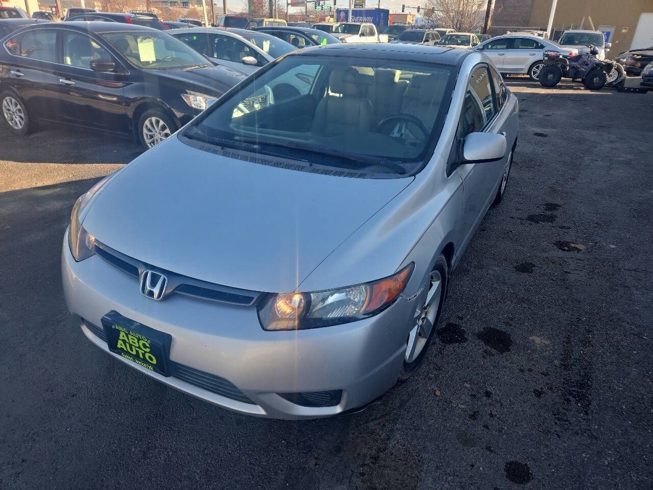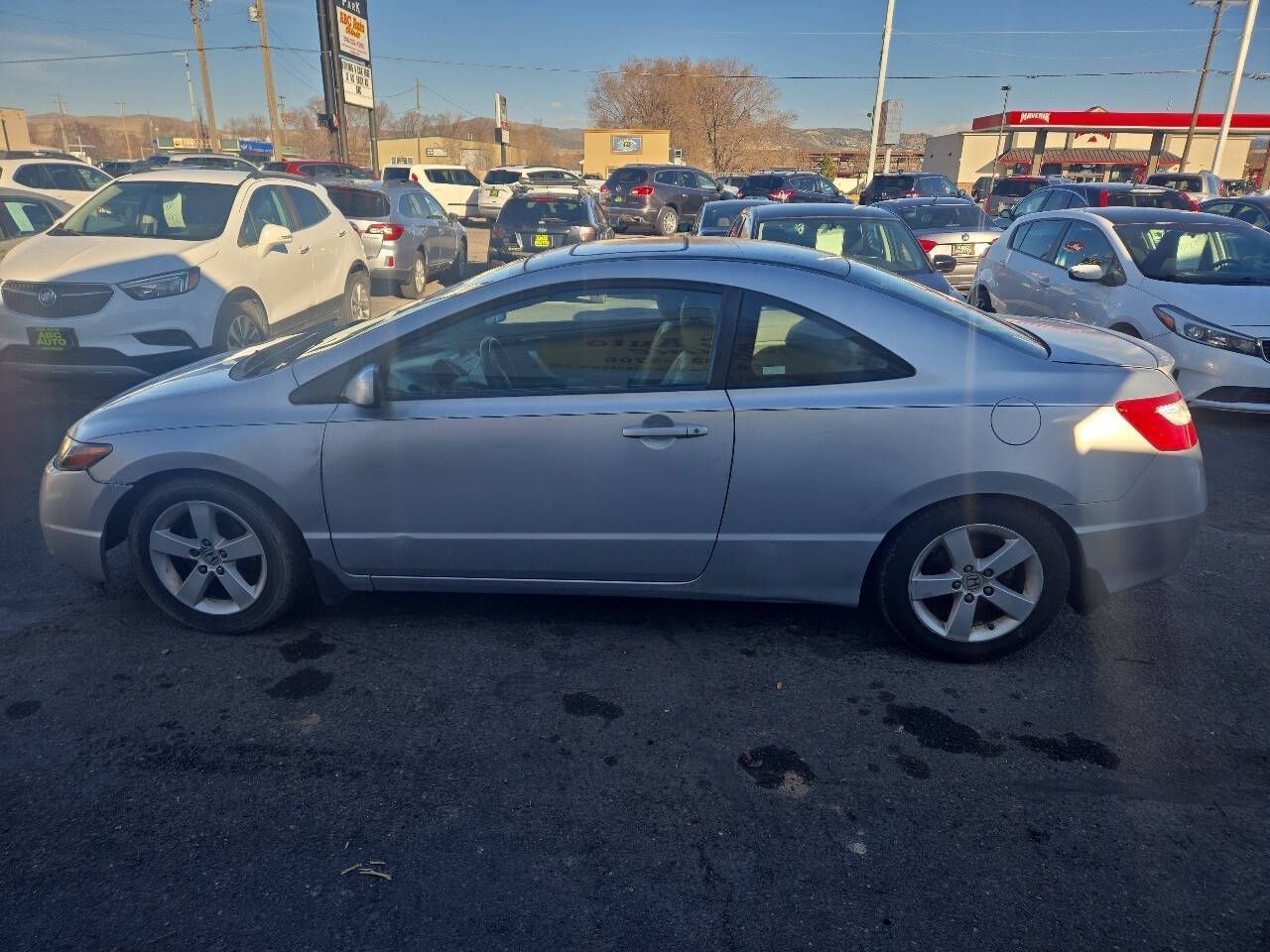 Check out this 2008 Honda Civic coupe EX rated at 25 mpg. city and 32 highway. This civic is equipped with leather interior, power windows, power locks, cruise control, am/fm/multi cd, sun roof alloy wheels and more. the interior is clean and has been well cared for and it runs great. The title is clean, there are no check engine lights, and only 167k miles. If your looking for a great get around car with the reliability of a Honda come by and check her out. 208-237-4700