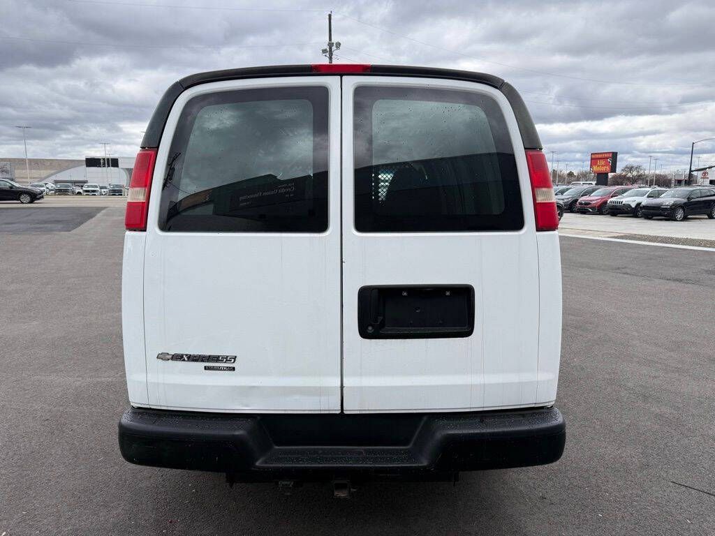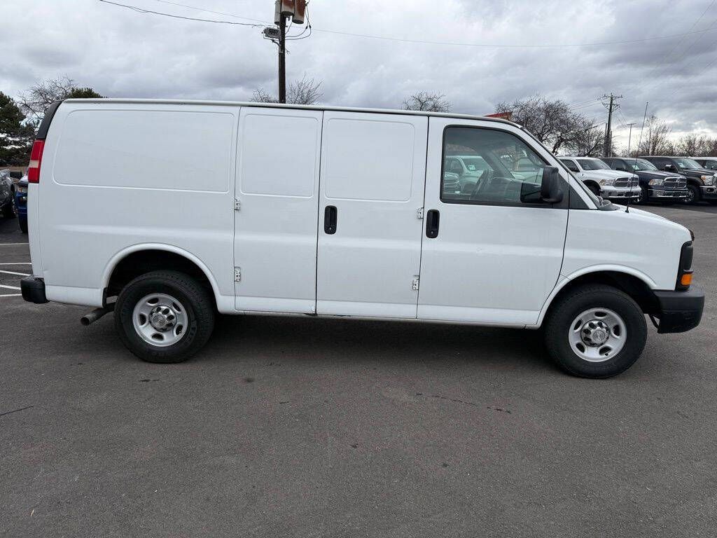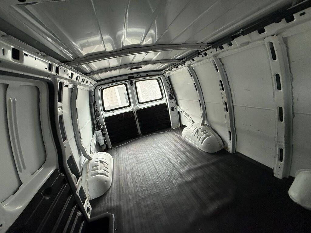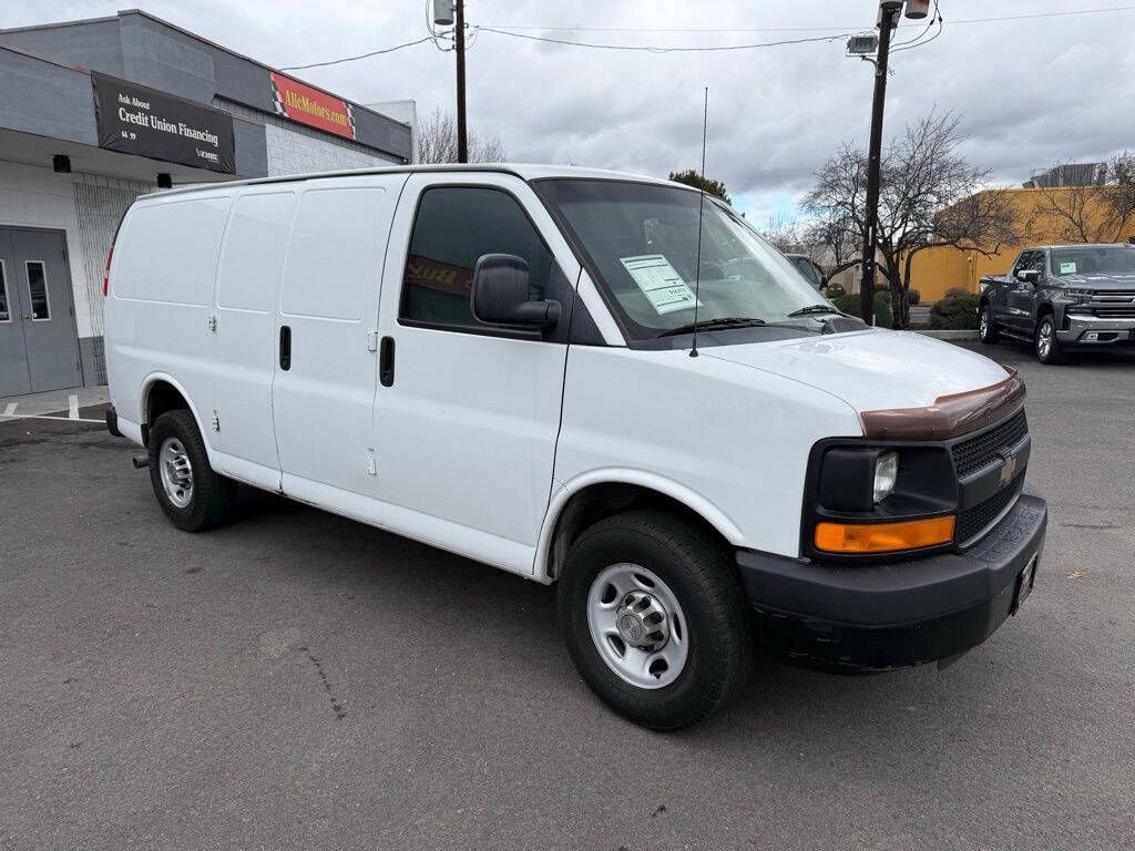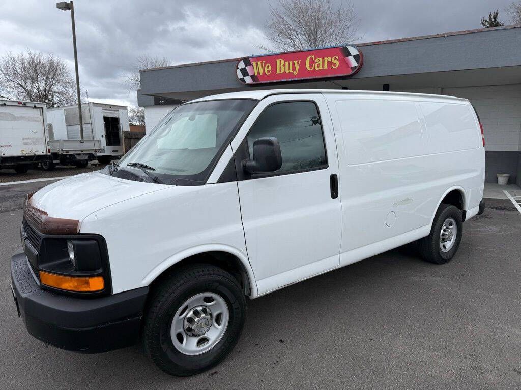 Summit White 2014 Chevrolet Express 2500 Work Van Cargo RWD 6-Speed Automatic HD with Electronic Overdrive Vortec 4.8L V8 SFI 16'' x 6.5'' Steel Wheels, 2 Speakers, 3.42 Rear Axle Ratio, 4-Wheel Disc Brakes, ABS brakes, Air Conditioning, Convenience Package, Delay-off headlights, Driver door bin, Driver's Seat Mounted Armrest, Dual front impact airbags, Electronic Stability Control, Engine Cover Console w/Swing-Out Storage Bin, External Transmission Oil Cooler, Fixed Rear Door Glass, Fixed Rear Door Window Glass, Front anti-roll bar, Front Bucket Seats, Front wheel independent suspension, Fully automatic headlights, Heavy-Duty Rear Locking Differential, Inside Rear-View Manual Day/Night Mirror, Low tire pressure warning, Passenger cancellable airbag, Passenger door bin, Passenger seat mounted armrest, Power Door Locks w/Lock-Out Protection, Power steering, Power windows, Preferred Equipment Group 1, Reclining Front High-Back Bucket Seats, Reclining High-Back Front Bucket Seats, Tachometer, Traction control, Trip computer, Variably intermittent wipers, Vinyl Seat Trim, Voltmeter.