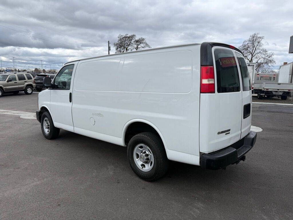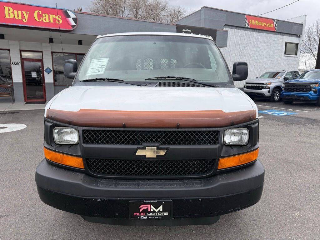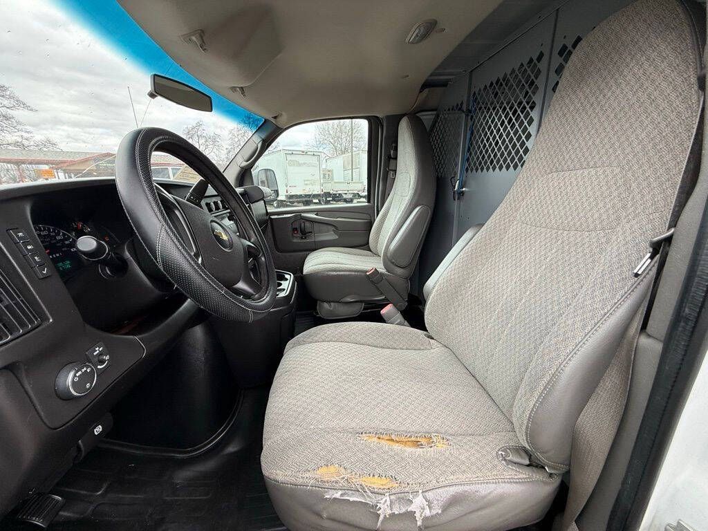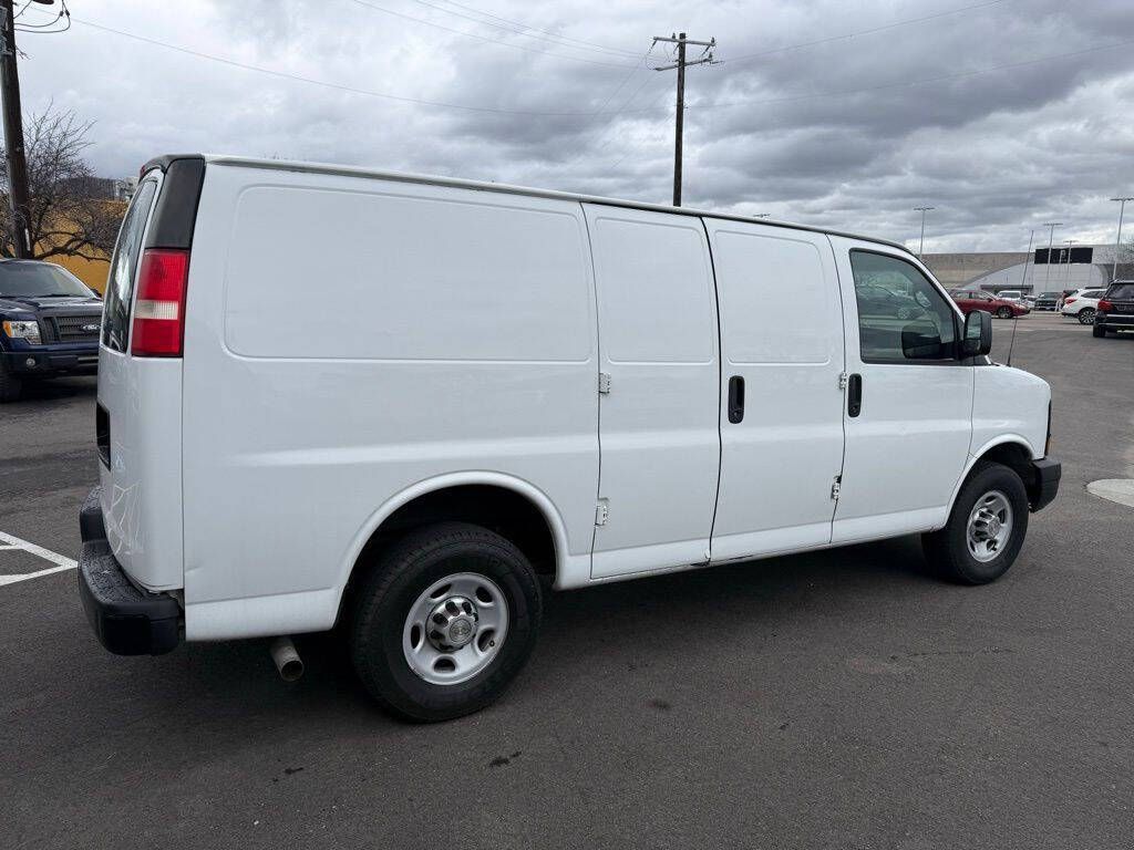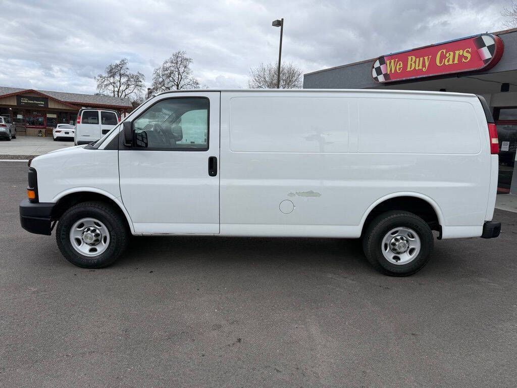 Summit White 2014 Chevrolet Express 2500 Work Van Cargo RWD 6-Speed Automatic HD with Electronic Overdrive Vortec 4.8L V8 SFI 16'' x 6.5'' Steel Wheels, 2 Speakers, 3.42 Rear Axle Ratio, 4-Wheel Disc Brakes, ABS brakes, Air Conditioning, Convenience Package, Delay-off headlights, Driver door bin, Driver's Seat Mounted Armrest, Dual front impact airbags, Electronic Stability Control, Engine Cover Console w/Swing-Out Storage Bin, External Transmission Oil Cooler, Fixed Rear Door Glass, Fixed Rear Door Window Glass, Front anti-roll bar, Front Bucket Seats, Front wheel independent suspension, Fully automatic headlights, Heavy-Duty Rear Locking Differential, Inside Rear-View Manual Day/Night Mirror, Low tire pressure warning, Passenger cancellable airbag, Passenger door bin, Passenger seat mounted armrest, Power Door Locks w/Lock-Out Protection, Power steering, Power windows, Preferred Equipment Group 1, Reclining Front High-Back Bucket Seats, Reclining High-Back Front Bucket Seats, Tachometer, Traction control, Trip computer, Variably intermittent wipers, Vinyl Seat Trim, Voltmeter.