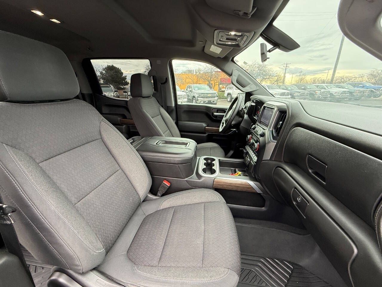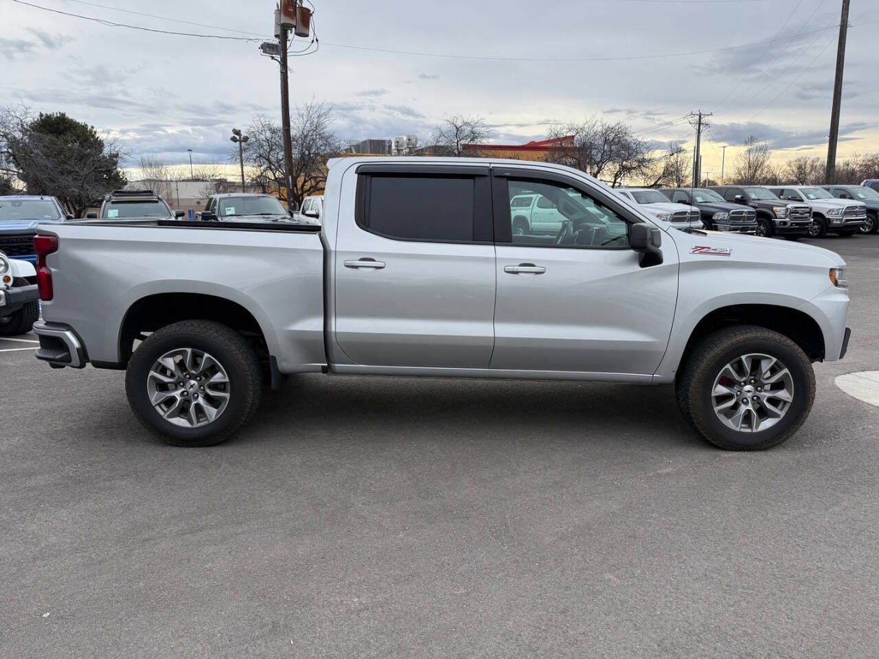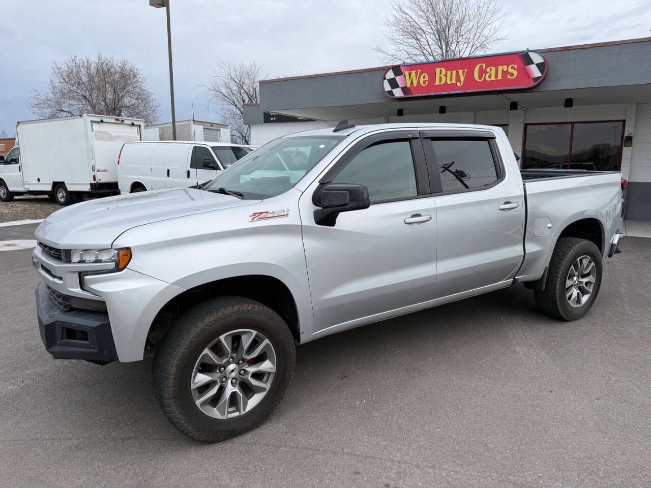 Silver Ice Metallic 2020 Chevrolet Silverado 1500 RST 4WD 10-Speed Automatic EcoTec3 6.2L V8 10-Speed Automatic, 4WD, Black Cloth, 10-Way Power Driver Seat w/Lumbar, 12-Volt Rear Auxiliary Power Outlet, 120-Volt Bed Mounted Power Outlet, 120-Volt Instrument Panel Power Outlet, 170 Amps Alternator, 2 USB Ports, 2 USB Ports (First Row), 220 Amps Alternator, 3.23 Rear Axle Ratio, 4-Way Manual Driver Seat Adjuster, 4-Wheel Disc Brakes, 4.2'' Diagonal Color Display Driver Info Center, 40/20/40 Front Split-Bench Seat, 4G LTE Wi-Fi Hot Spot Capable, 6 Speakers, 6-Speaker Audio System, ABS brakes, Air Conditioning, All-Star Edition, All-Weather Floor Liner (LPO) (AAK), Alloy wheels, Apple CarPlay/Android Auto, Auxiliary External Transmission Oil Cooler, Bed Protection Package, Bluetooth® For Phone, Body Color Grille, Brake assist, Bumpers: body-color, Chevrolet Connected Access Capable, Chevytec Spray-On Black Bedliner, Cloth Rear Seat w/Storage Package, Cloth Seat Trim, Color-Keyed Carpeting Floor Covering, Compass, Convenience Package, Convenience Package II, Convenience Package w/Buckets Seats, Deep-Tinted Glass, Delay-off headlights, Driver door bin, Driver vanity mirror, Dual Exhaust w/Polished Outlets, Dual front impact airbags, Dual front side impact airbags, Dual-Zone Automatic Climate Control, Electric Rear-Window Defogger, Electrical Lock Control Steering Column, Electronic Stability Control, External Engine Oil Cooler, Floor Mounted Center Console, Front anti-roll bar, Front Bucket Seats, Front Center Armrest w/Storage, Front fog lights, Front Frame-Mounted Black Recovery Hooks, Front LED Fog Lamps, Front License Plate Kit, Front reading lights, Front Rubberized Vinyl Floor Mats, Front wheel independent suspension, Fully automatic headlights, HD Radio, HD Rear Vision Camera, Heated door mirrors, Heated Driver & Front Outboard Passenger Seats, Heated Steering Wheel, Heavy Duty Suspension, Heavy-Duty Rear Locking Differential, High Capacity Air Filter, High Gloss Black Mirror Caps, Hill Descent Control, Hitch Guidance, Illuminated entry, Integrated Trailer Brake Controller, Keyless Open & Start, Leather Wrapped Steering Wheel, LED Cargo Area Lighting, Low tire pressure warning, Manual Tilt-Wheel Steering Column, Manual Tilt/Telescoping Steering Column, Occupant sensing airbag, Off-Road Suspension, OnStar & Chevrolet Connected Services Capable, Outside temperature display, Overhead airbag, Overhead console, Panic alarm, Passenger door bin, Passenger vanity mirror, Power Door Locks, Power door mirrors, Power Front Windows w/Driver Express Up/Down, Power Front Windows w/Passenger Express Down, Power Rear Windows w/Express Down, Power Sliding Rear Window w/Rear Defogger, Power steering, Power windows, Preferred Equipment Group 1SP, Premium Bose 7-Speaker Sound System, Radio data system, Radio: Chevrolet Infotainment 3 Plus System, Radio: Chevrolet Infotainment 3 System, Rear 60/40 Folding Bench Seat (Folds Up), Rear Dual USB Charging-Only Ports, Rear reading lights, Rear Rubberized-Vinyl Floor Mats, Rear step bumper, Rear Vision Camera, Rear Wheelhouse Liners, Rear window defroster, Remote keyless entry, Remote Vehicle Starter System, Security system, Single-Zone Manual/Semi-Automatic Air Conditioning, SiriusXM w/360L, Speed control, Speed-sensing steering, Split folding rear seat, Steering Wheel Audio Controls, Steering wheel mounted audio controls, Steering Wheel Mounted Electronic Cruise Control, Tachometer, Theft Deterrent System (Unauthorized Entry), Tilt steering wheel, Traction control, Trailering Package, Trip computer, Universal Home Remote, Urethane Steering Wheel, Variably intermittent wipers, Voltmeter, Wheels: 18'' x 8.5'' Bright Silver Painted Aluminum, Wheels: 20'' x 9'' Painted Aluminum, Z71 Off-Road & Protection Package, Z71 Off-Road Package, 10-Speed Automatic, 4WD, Black Cloth.