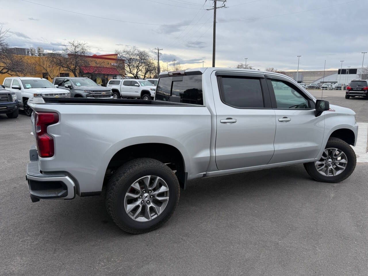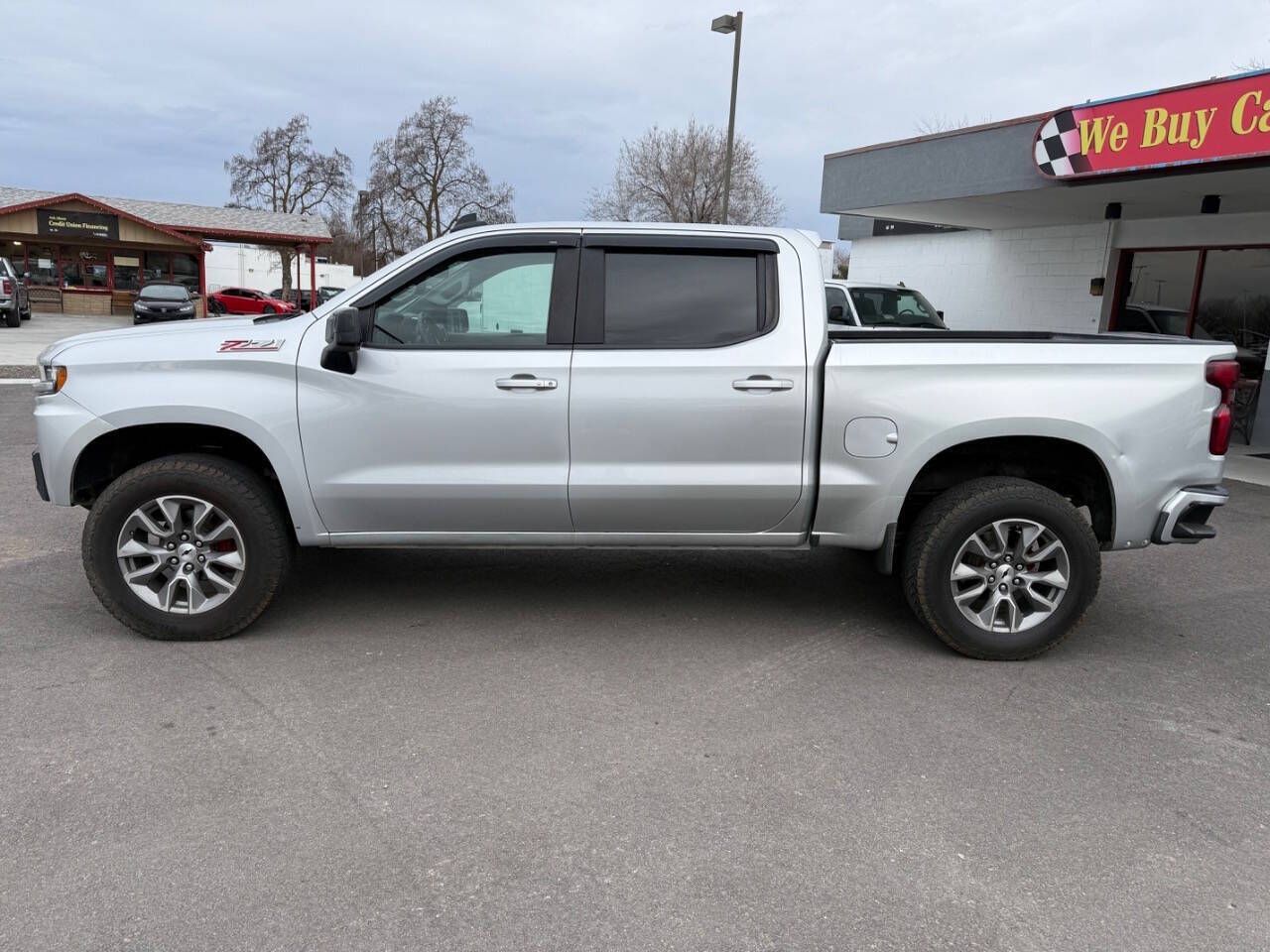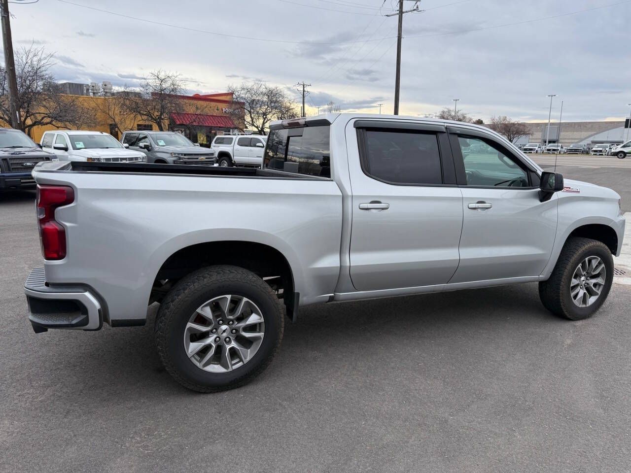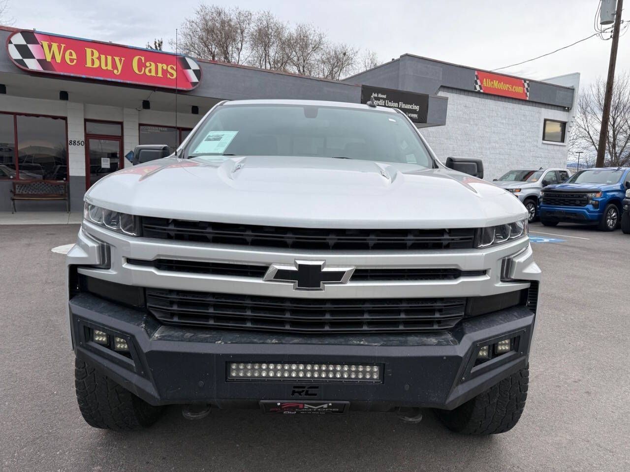 Silver Ice Metallic 2020 Chevrolet Silverado 1500 RST 4WD 10-Speed Automatic EcoTec3 6.2L V8 10-Speed Automatic, 4WD, Black Cloth, 10-Way Power Driver Seat w/Lumbar, 12-Volt Rear Auxiliary Power Outlet, 120-Volt Bed Mounted Power Outlet, 120-Volt Instrument Panel Power Outlet, 170 Amps Alternator, 2 USB Ports, 2 USB Ports (First Row), 220 Amps Alternator, 3.23 Rear Axle Ratio, 4-Way Manual Driver Seat Adjuster, 4-Wheel Disc Brakes, 4.2'' Diagonal Color Display Driver Info Center, 40/20/40 Front Split-Bench Seat, 4G LTE Wi-Fi Hot Spot Capable, 6 Speakers, 6-Speaker Audio System, ABS brakes, Air Conditioning, All-Star Edition, All-Weather Floor Liner (LPO) (AAK), Alloy wheels, Apple CarPlay/Android Auto, Auxiliary External Transmission Oil Cooler, Bed Protection Package, Bluetooth® For Phone, Body Color Grille, Brake assist, Bumpers: body-color, Chevrolet Connected Access Capable, Chevytec Spray-On Black Bedliner, Cloth Rear Seat w/Storage Package, Cloth Seat Trim, Color-Keyed Carpeting Floor Covering, Compass, Convenience Package, Convenience Package II, Convenience Package w/Buckets Seats, Deep-Tinted Glass, Delay-off headlights, Driver door bin, Driver vanity mirror, Dual Exhaust w/Polished Outlets, Dual front impact airbags, Dual front side impact airbags, Dual-Zone Automatic Climate Control, Electric Rear-Window Defogger, Electrical Lock Control Steering Column, Electronic Stability Control, External Engine Oil Cooler, Floor Mounted Center Console, Front anti-roll bar, Front Bucket Seats, Front Center Armrest w/Storage, Front fog lights, Front Frame-Mounted Black Recovery Hooks, Front LED Fog Lamps, Front License Plate Kit, Front reading lights, Front Rubberized Vinyl Floor Mats, Front wheel independent suspension, Fully automatic headlights, HD Radio, HD Rear Vision Camera, Heated door mirrors, Heated Driver & Front Outboard Passenger Seats, Heated Steering Wheel, Heavy Duty Suspension, Heavy-Duty Rear Locking Differential, High Capacity Air Filter, High Gloss Black Mirror Caps, Hill Descent Control, Hitch Guidance, Illuminated entry, Integrated Trailer Brake Controller, Keyless Open & Start, Leather Wrapped Steering Wheel, LED Cargo Area Lighting, Low tire pressure warning, Manual Tilt-Wheel Steering Column, Manual Tilt/Telescoping Steering Column, Occupant sensing airbag, Off-Road Suspension, OnStar & Chevrolet Connected Services Capable, Outside temperature display, Overhead airbag, Overhead console, Panic alarm, Passenger door bin, Passenger vanity mirror, Power Door Locks, Power door mirrors, Power Front Windows w/Driver Express Up/Down, Power Front Windows w/Passenger Express Down, Power Rear Windows w/Express Down, Power Sliding Rear Window w/Rear Defogger, Power steering, Power windows, Preferred Equipment Group 1SP, Premium Bose 7-Speaker Sound System, Radio data system, Radio: Chevrolet Infotainment 3 Plus System, Radio: Chevrolet Infotainment 3 System, Rear 60/40 Folding Bench Seat (Folds Up), Rear Dual USB Charging-Only Ports, Rear reading lights, Rear Rubberized-Vinyl Floor Mats, Rear step bumper, Rear Vision Camera, Rear Wheelhouse Liners, Rear window defroster, Remote keyless entry, Remote Vehicle Starter System, Security system, Single-Zone Manual/Semi-Automatic Air Conditioning, SiriusXM w/360L, Speed control, Speed-sensing steering, Split folding rear seat, Steering Wheel Audio Controls, Steering wheel mounted audio controls, Steering Wheel Mounted Electronic Cruise Control, Tachometer, Theft Deterrent System (Unauthorized Entry), Tilt steering wheel, Traction control, Trailering Package, Trip computer, Universal Home Remote, Urethane Steering Wheel, Variably intermittent wipers, Voltmeter, Wheels: 18'' x 8.5'' Bright Silver Painted Aluminum, Wheels: 20'' x 9'' Painted Aluminum, Z71 Off-Road & Protection Package, Z71 Off-Road Package, 10-Speed Automatic, 4WD, Black Cloth.