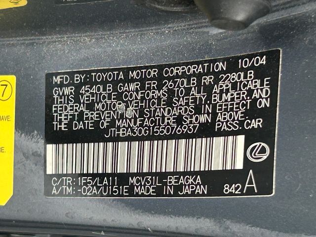Silver 2005 Lexus ES 330 FWD 5-Speed Automatic with Overdrive 3.3L V6 SMPI DOHC Leather.