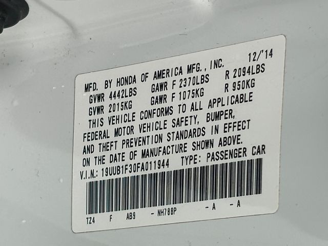 White 2015 Acura TLX FWD 8-Speed Dual-Clutch 2.4L DOHC 16V