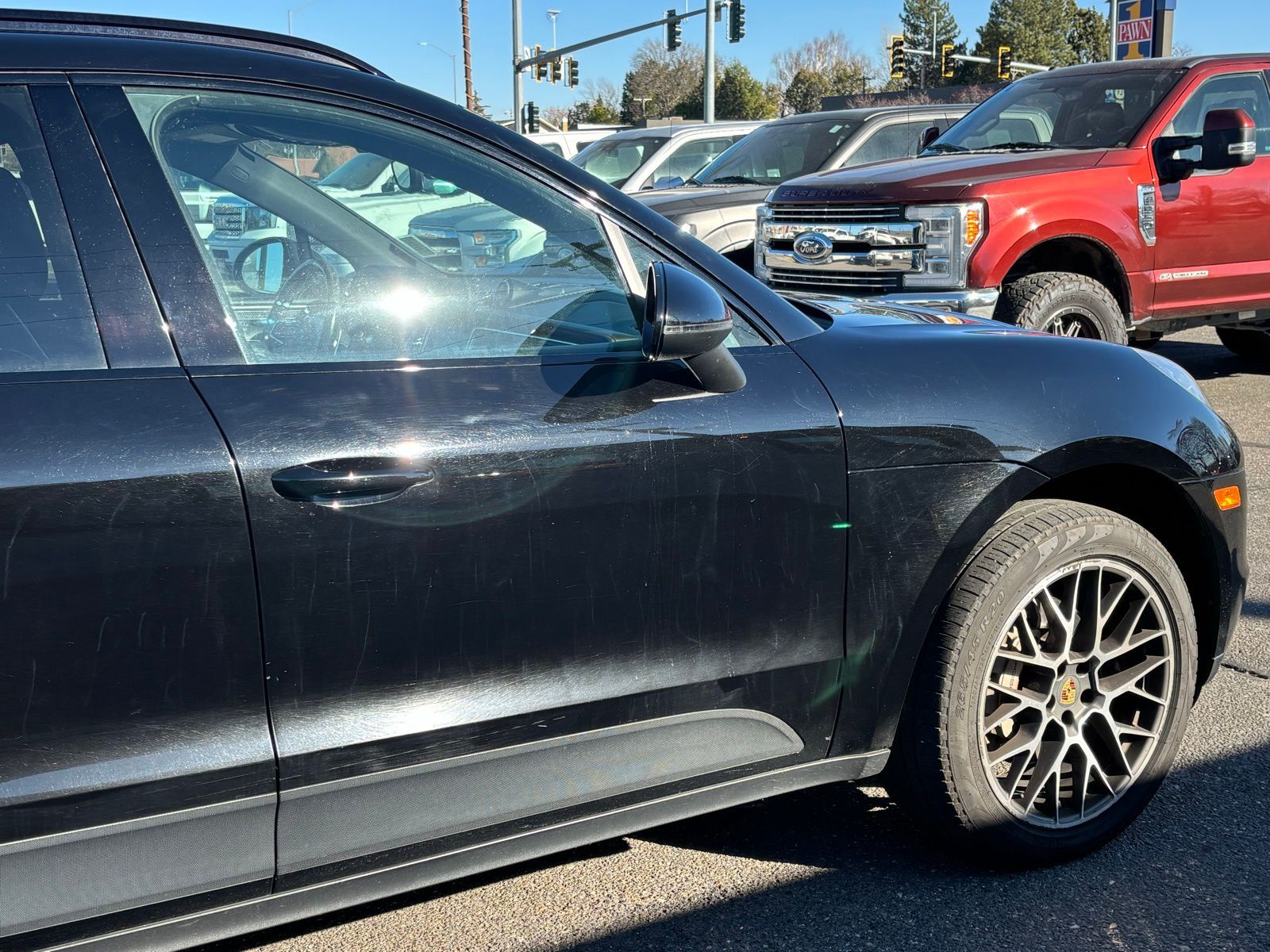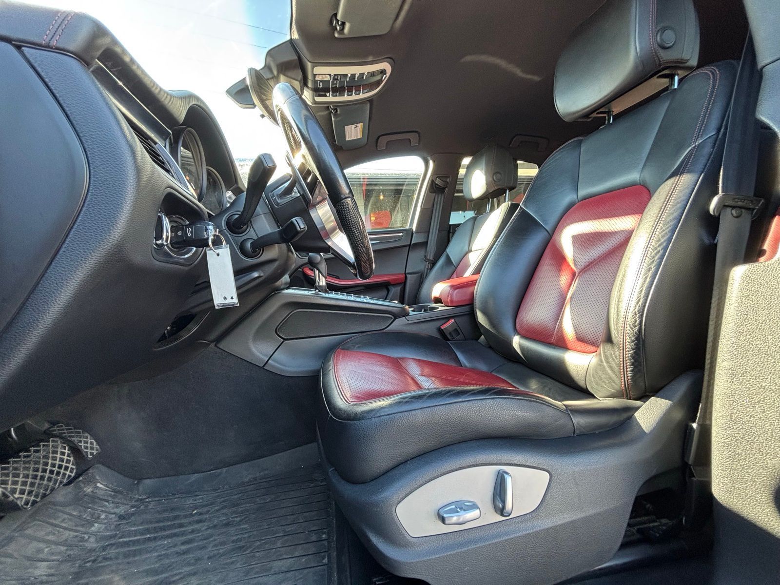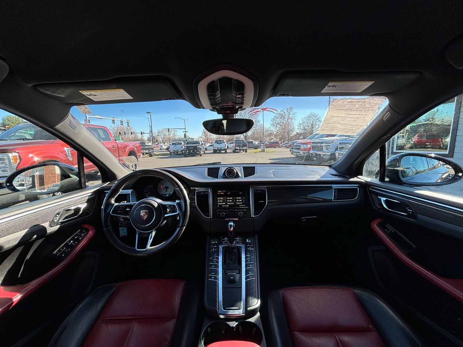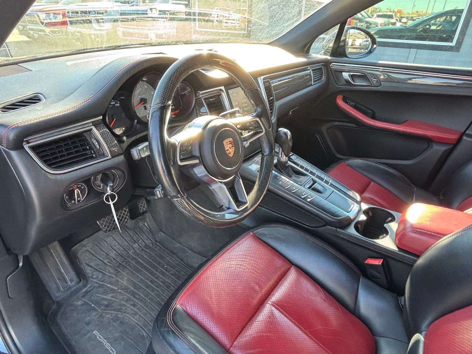 This Macan S is well equipped with premium features including the Black/Garnet Red leather interior package, carbon fiber interior trim, heated front seats, heated multifunction steering wheel, and the premium BOSE surround sound system. The aggressive stance is highlighted by the 20-inch RS Spyder Design wheels and high-gloss black exterior package, while the trailer hitch and roof rails add everyday versatility. With Porsche performance, luxury finishes, and distinctive styling, the Macan S stands out among luxury compact SUVs.