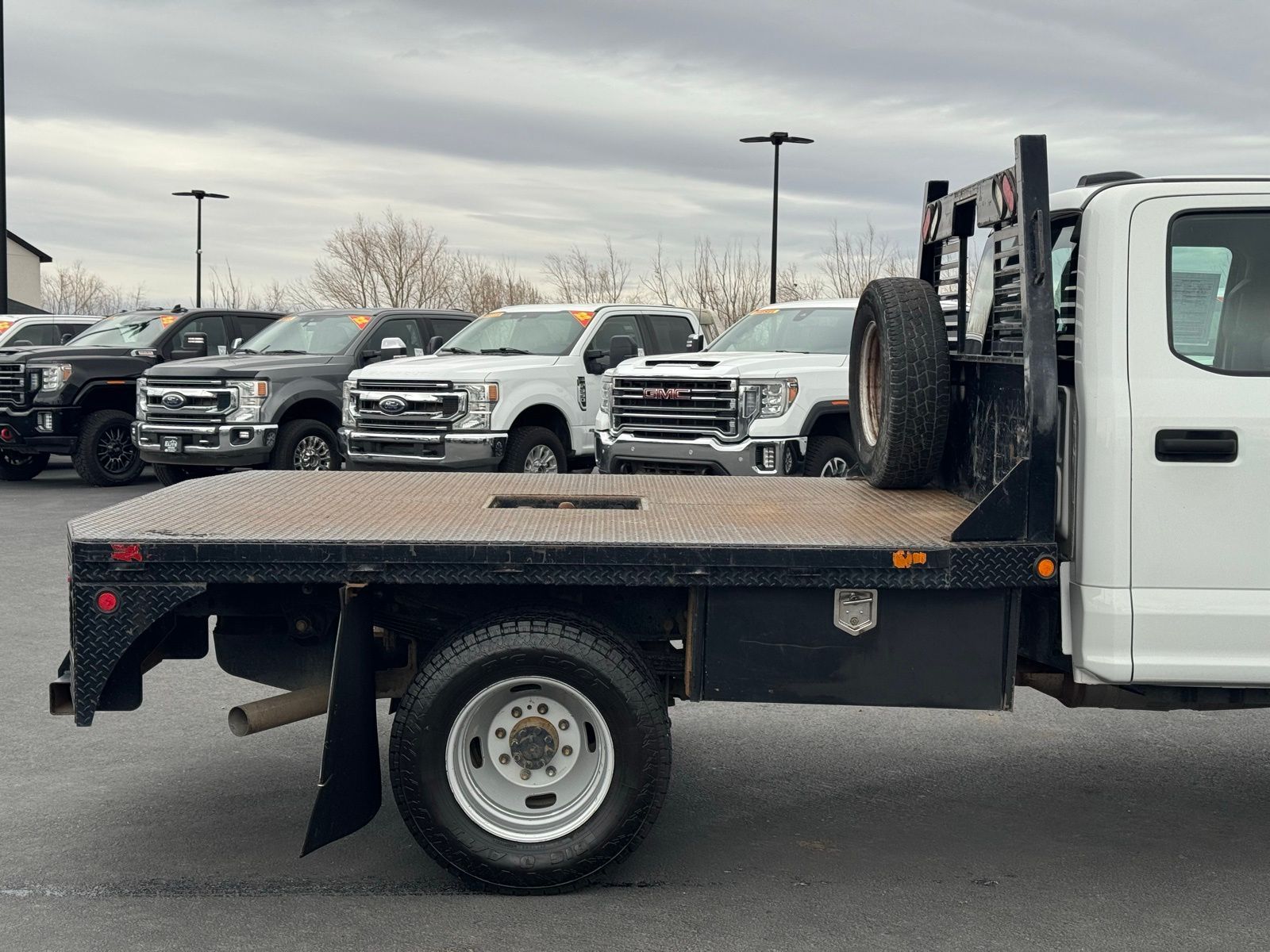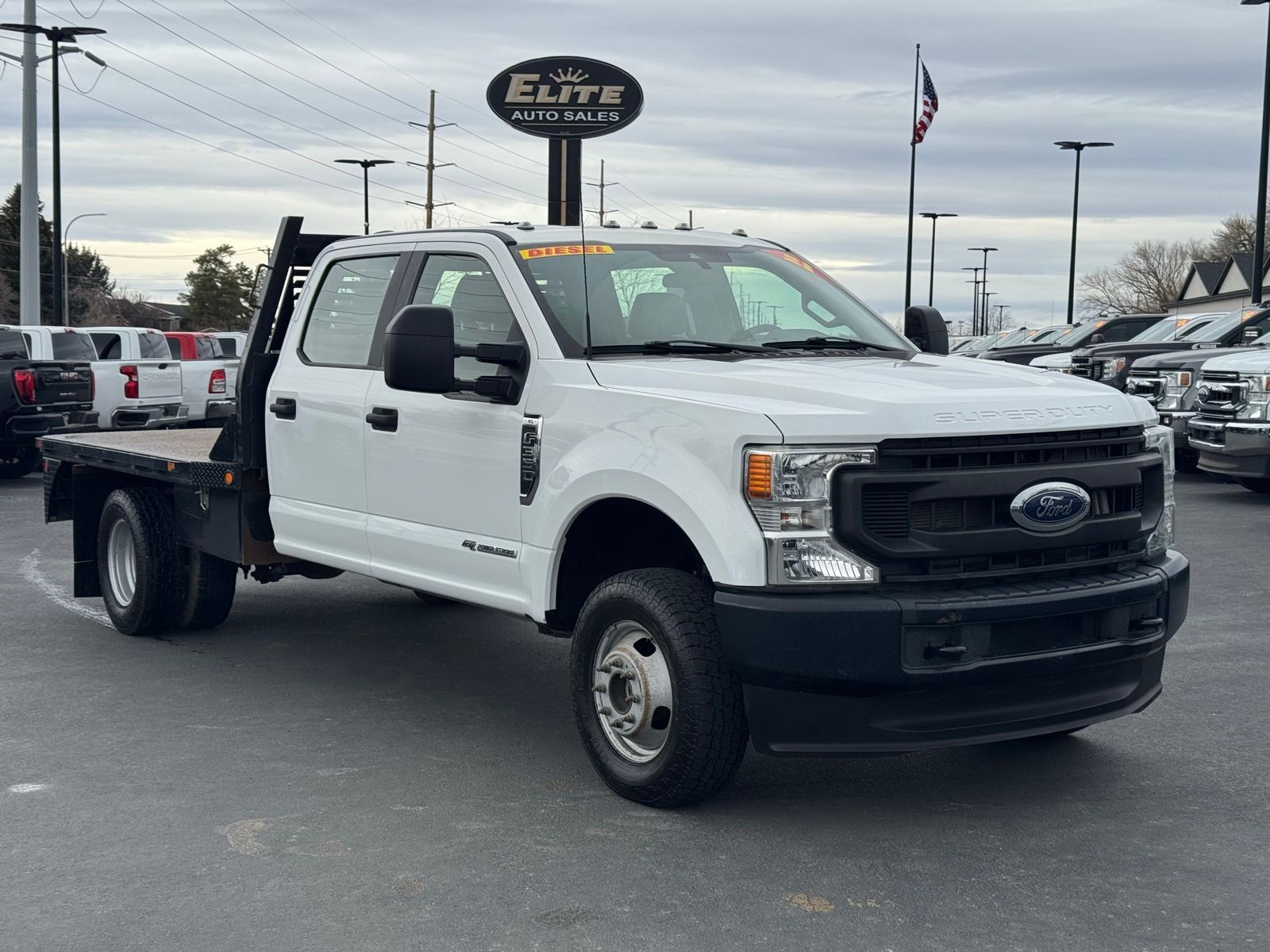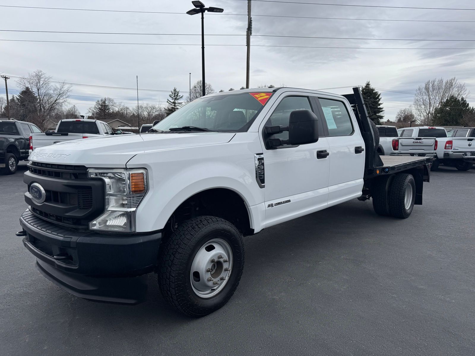 The 2021 Ford F-350 XL DRW 4x4 Crew Cab equipped with the 6.7L Power Stroke diesel is built for serious commercial use. Outfitted with a steel flatbed, dual rear wheels, and a 4.10 limited slip rear axle, this truck is configured for hauling equipment, materials, and heavy loads with confidence.