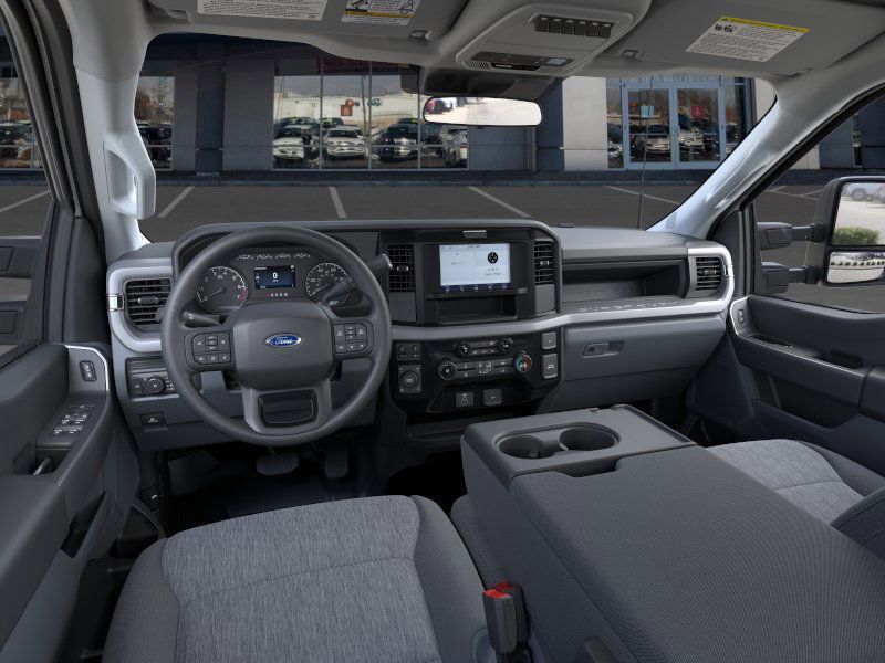 This 2026 Oxford White Ford F-250 SuperDuty XL 4WD is well equipped and includes these features and benefits: Ford Connectivity Package (1-Year Included), GVWR: 10,000 Lb Payload Package, Internet access capable: 5G Modem - Ford Connectivity Package, Order Code 600A (17'' Argent Painted Steel Wheels, HD Vinyl 40/20/40 Split Bench Seat, Radio: AM/FM Stereo with MP3 Player, and SYNC 4), XL Chrome Package (Bright Chrome Hub Covers and Center Ornaments, Chrome Front Bumper, Chrome Rear Step Bumper, and Halogen Fog Lamps), XL Driver Assist Package, 4WD, 4-Wheel Disc Brakes, 6 Speakers, ABS brakes, Air Conditioning, AM/FM radio, Brake assist, Compass, Delay-off headlights, Dual front impact airbags, Dual front side impact airbags, Electronic Stability Control, Emergency communication system: SYNC 4 911 Assist, Exterior Parking Camera Rear, Front anti-roll bar, Front Center Armrest w/Storage, Front reading lights, Fully automatic headlights, Heated door mirrors, Illuminated entry, Low tire pressure warning, Outside temperature display, Overhead airbag, Overhead console, Panic alarm, Passenger vanity mirror, Platform Running Boards, Power door mirrors, Power steering, Power windows, Pro Power Onboard - 400W, Rear reading lights, Rear step bumper, Remote keyless entry, Security system, Speed control, Split folding rear seat, Steering wheel mounted audio controls, Tachometer, Telescoping steering wheel, Tilt steering wheel, Traction control, Trailer Brake Controller, Trip computer, Turn signal indicator mirrors, Upfitter Switches (6), and Variably intermittent wipers.