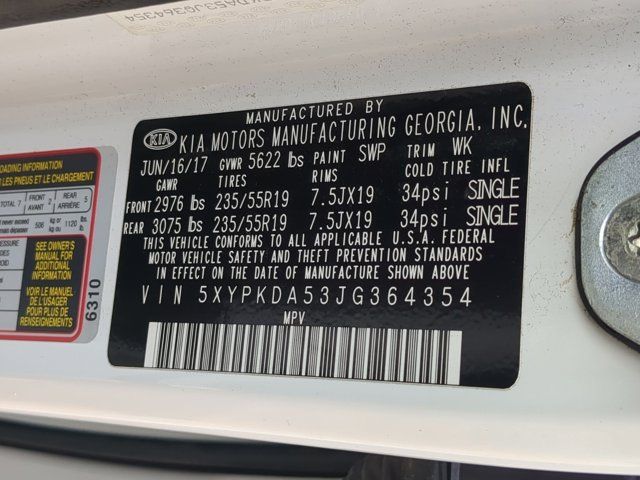 Navigation System,8 Speakers,AM/FM radio: SiriusXM,CD player,Radio: UVO eServices w/Premium Navigation,Air Conditioning,Automatic temperature control,Front dual zone A/C,Rear air conditioning,Rear window defroster,Memory seat,Power driver seat,Power steering,Power windows,Remote keyless entry,Steering wheel mounted audio controls,Four wheel independent suspension,Speed-sensing steering,Traction control,4-Wheel Disc Brakes,ABS brakes,Anti-whiplash front head restraints,Dual front impact airbags,Dual front side impact airbags,Emergency communication system: UVO3,Front anti-roll bar,Low tire pressure warning,Occupant sensing airbag,Overhead airbag,Rear anti-roll bar,Power moonroof,Power Liftgate,Brake assist,Electronic Stability Control,Exterior Parking Camera Rear,Delay-off headlights,Front fog lights,Fully automatic headlights,Panic alarm,Security system,Speed control,Bumpers: body-color,Heated door mirrors,Power door mirrors,Roof rack: rails only,Spoiler,Turn signal indicator mirrors,Apple CarPlay & Android Auto,Auto-dimming Rear-View mirror,Driver door bin,Driver vanity mirror,Front reading lights,Garage door transmitter: HomeLink,Illuminated entry,Outside temperature display,Overhead console,Passenger vanity mirror,Rear reading lights,Rear seat center armrest,Tachometer,Telescoping steering wheel,Tilt steering wheel,Trip computer,3rd row seats: split-bench,Front Bucket Seats,Front Center Armrest,Heated Front Bucket Seats,Leather Seat Trim,Power passenger seat,Split folding rear seat,Cargo Net,Passenger door bin,Alloy wheels,Wheels: 19 inch x 7.5 Machined Finish Alloy,Rain sensing wipers,Rear window wiper,Variably intermittent wipers,3.041 Axle Ratio,Bluetooth Wireless,USB Port(s),SNOW WHITE PEARL,CARGO NET,BLACK LEATHER SEAT TRIM,All Wheel Drive,Power Steering,ABS,4-Wheel Disc Brakes,Brake Assist,Aluminum Wheels,Tires - Front Performance,Tires - Rear Performance,Temporary Spare Tire,Sun/Moonroof,Generic Sun/Moonroof,Panoramic Roof,Heated Mirrors,Power Mirror(s),Integrated Turn Signal Mirrors,Power Folding Mirrors,Rear Defrost,Privacy Glass,Intermittent Wipers,Variable Speed Intermittent Wipers,Rain Sensing Wipers,Rear Spoiler,Remote Trunk Release,Power Liftgate,Power Door Locks,Automatic Headlights,Fog Lamps,AM/FM Stereo,Navigation System,Premium Sound System,Satellite Radio,MP3 Capability,Bluetooth Connection,Auxiliary Audio Input,Smart Device Integration,Requires Subscription,CD Player,MP3 Capability,Steering Wheel Audio Controls,Hard Disk Drive Media Storage,Bluetooth Connection,Power Driver Seat,Power Passenger Seat,Bucket Seats,Heated Front Seat(s),Driver Adjustable Lumbar,Seat Memory,Pass-Through Rear Seat,Rear Bench Seat,Adjustable Steering Wheel,Trip Computer,Power Windows,3rd Row Seat,Leather Steering Wheel,Keyless Entry,Power Door Locks,Keyless Start,Keyless Entry,Power Door Locks,Remote Trunk Release,Hands-Free Liftgate,Universal Garage Door Opener,Cruise Control,Climate Control,Multi-Zone A/C,A/C,A/C,Rear A/C,Leather Seats,Driver Vanity Mirror,Passenger Vanity Mirror,Driver Illuminated Vanity Mirror,Passenger Illuminated Visor Mirror,Auto-Dimming Rearview Mirror,Floor Mats,Keyless Start,Smart Device Integration,Mirror Memory,Seat Memory,Navigation System,Power Door Locks,Power Windows,Trip Computer,Security System,Immobilizer,Traction Control,Stability Control,Traction Control,Front Side Air Bag,Telematics,Requires Subscription,Rear Parking Aid,Blind Spot Monitor,Cross-Traffic Alert,Tire Pressure Monitor,Driver Air Bag,Passenger Air Bag,Front Head Air Bag,Rear Head Air Bag,Passenger Air Bag Sensor,Child Safety Locks,Back-Up Camera