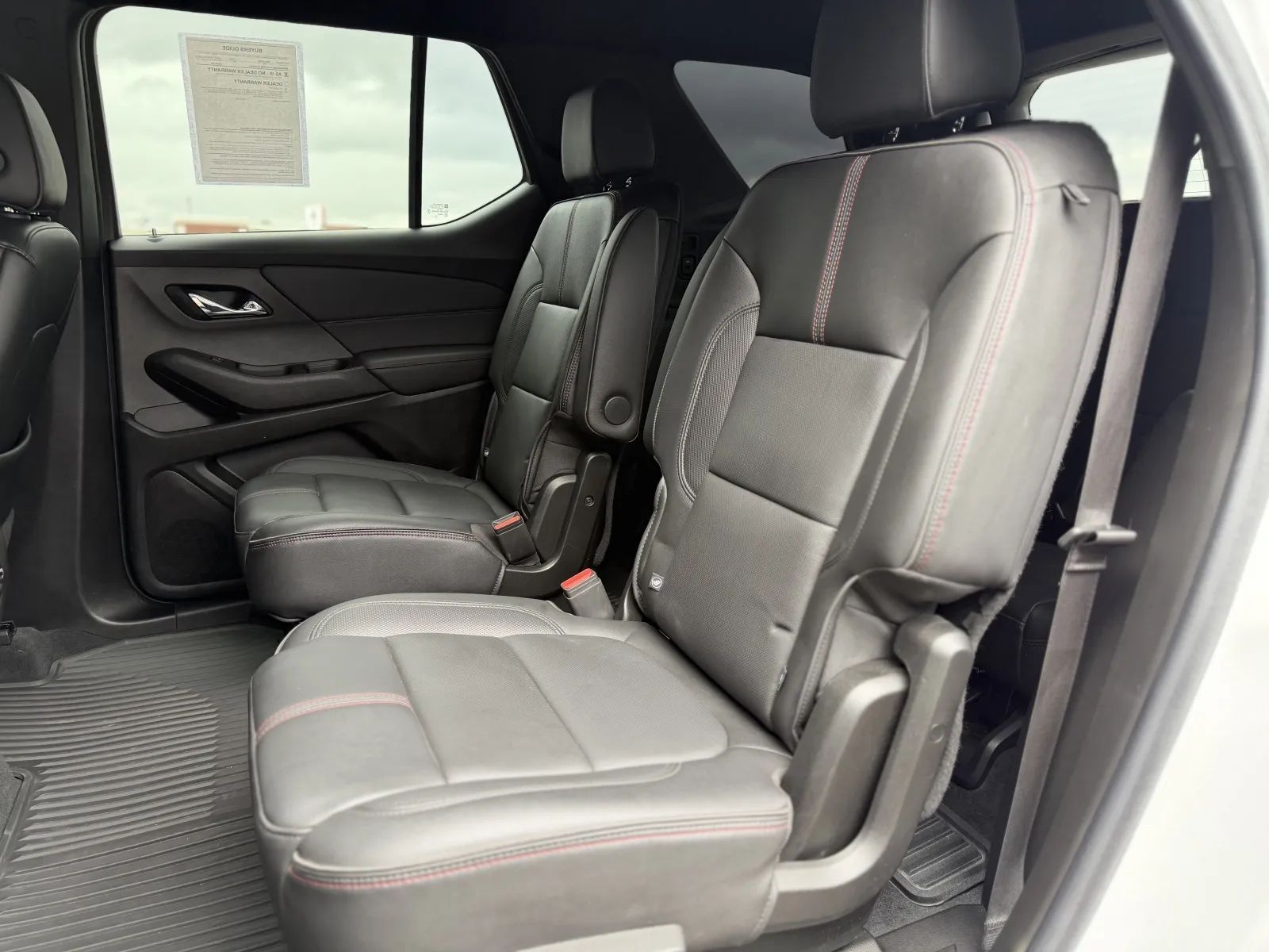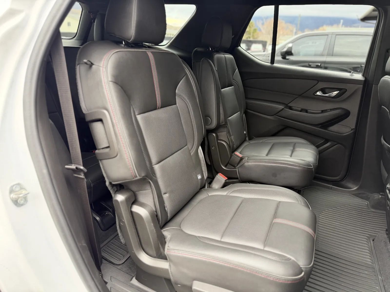 Front Pedestrian Automatic emergency braking, Front Automatic emergency braking, Lane keeping assist, Surround View Camera system, Check rear seat reminder, Pedestrian Detection Pre-collision warning system, Pedestrian Detection Rear pre-collision warning system, Audible Warning Pre-collision warning system, Visual Warning Pre-collision warning system, Sensor/alert Blind spot safety, Rear Cross traffic alert, Lane deviation sensors, Center Front airbags, Front Side airbags, Rear Side curtain airbags, Front Side curtain airbags, Third Row Side curtain airbags, Rear Parking sensors, 4-wheel ABS, Anti-lockout Power door locks, Auto-locking Power door locks, Rear Camera system washer, Programmable safety key, Auto Off Electronic parking brake, Ventilated Disc Rear brake, Alarm Anti-theft system, Braking assist, Ventilated Disc Front brake, Dual Front airbags, Vehicle Immobilizer Anti-theft system, Power brakes, LATCH System Child seat anchors, Electronic brakeforce distribution, Stability control, Traction control, In Dash Rearview monitor, Occupant Sensing Passenger Airbag deactivation, Front Seatbelt pretensioners, Front Seatbelt force limiters, Front Emergency locking retractors, Rear Seatbelt force limiters, Rear Emergency locking retractors, Roll stability control, Front Seatbelt warning sensor, Semi-automatic Adaptive stop and go cruise control, Leather-trimmed Upholstery, Adaptive cruise control, Proximity Entry System Multi-function remote, Heated steering wheel, Automatic Climate Control Rear air conditioning, Leather Steering wheel trim, Automatic Climate Control Front air conditioning, Dual Front air conditioning zones, 8 Driver seat power adjustments, Front Wireless charging station, Independently Controlled Rear air conditioning, Push-button start, Heated Driver seat, Leather Shift knob trim, Remote engine start, Heated Passenger seat, Garage Door Opener Universal remote transmitter, Camera-based Rearview mirror, Auto-dimming Rearview mirror, Variable/speed-proportional Power steering, Bucket Front seat, 6 Passenger seat power adjustments, Humidity/dewpoint sensors, Captains Chairs Rear seat, 40-60 Split Bench Third row seat, 115V Rear Power outlet(s), Carpet Floor mat material, Air filtration, Capless fuel filler system, Flat Rear seat folding, In Floor Storage, Flat Third row seat folding, Split Third row seat folding, USB Front Power outlet(s), USB Rear Power outlet(s), Third Row Floor mats, Rear Floor mats, Front Floor mats, Multi-function display, Rubber/vinyl Cargo area floor mat, Front Console With Armrest And Storage Center console, Compass, 10 Cupholders, USB Third Row Power outlet(s), External temperature display, Rear Outboard Seats Armrests, Perforated Upholstery accents, MPG Fuel economy display, Range Fuel economy display, Tilt Steering wheel, Front Reading lights, Tachometer Gauge, Door Courtesy lights, Metallic-tone Interior accents, Rear Reading lights, Lumbar Driver seat power adjustments, Lumbar Passenger seat power adjustments, Reclining Passenger seat power adjustments, Reclining Driver seat power adjustments, Height Driver seat power adjustments, 4.2 In. Instrument cluster screen size, Front Cupholders, Third Row Cupholders, Maintenance Due Warnings and reminders, Front Overhead console, Dual Illuminating Vanity mirrors, Rear Cupholders, Cargo area light, 2 One-touch windows, Panic Alarm Multi-function remote, Audio Steering wheel mounted controls, Carpet Floor material, Cruise Control Steering wheel mounted controls, Phone Steering wheel mounted controls, Multi-function Steering wheel mounted controls, Front Seatback Storage, Voice Control Steering wheel mounted controls, Single Rear air conditioning zones, Trunk Release Multi-function remote, Power Glass Moonroof / Sunroof, Painted Aluminum Alloy Wheels, LED Headlights, Fixed Glass Rear moonroof / sunroof, Power Operated Rear trunk/liftgate, Auto High Beam Dimmer Headlights, LED Daytime running lights, Dual Tip Exhaust, LED Taillights, Power Folding Side mirror adjustments, Safety Reverse Power windows, Power Side mirror adjustments, Heated Side mirrors, Front fog lights, Approach Lamps Exterior entry lights, Steel Spare wheel, Black Roof rails, Intermittent Rear wiper, Rear Window defogger, Variable Intermittent Front wipers, Rear privacy glass, Auto-on In Reverse Rear wiper, With Washer Rear wiper, Tire Pressure Monitoring System, Integrated Turn Signals Side mirrors, Roofline Rear spoiler, Active grille shutters, Solar-tinted glass, Auto On/off Headlights, Auto Delay Off Headlights, Temporary Spare tire size, Chrome Exhaust tip color, Wiper Activated Headlights, Fixed Liftgate window, Liftgate Rear trunk/liftgate, Black Rear bumper color, Black Window trim, Black Grille color, Black Body side moldings, Hotspot Wi-Fi, Hard Drive Navigation system, Touch Screen Display Navigation system, Voice Operated Navigation system, Bose Premium brand, Wireless Apple CarPlay Smartphone integration, Wireless Android Auto Smartphone integration, MyChevrolet With Connected Access Smart device app compatibility, Bluetooth Wireless data link, Voice Operated Hands-free phone call integration, Voice Operated Radio, Bluetooth Auxiliary audio input, Pandora Internet radio app, Engine Start Smart device app function, 9 Total speakers, 8 In. Infotainment screen size, Touch Screen Display Radio, 1 Subwoofer, With Read Function Electronic messaging assistance, Voice Operated Electronic messaging assistance, SiriusXM Satellite radio, USB Auxiliary audio input, IPod/iPhone Auxiliary audio input, OnStar Satellite communications, Voice Guided Directions Satellite communications, Lock Operation Smart device app function, Chevrolet Infotainment System Infotainment, Horn/light Operation Smart device app function, Maintenance Status Smart device app function, Roadside Assistance Driver assistance app, AM/FM Radio, Radio data system, Speed sensitive volume control, Google POIs Connected in-car apps, Google Search Connected in-car apps, A