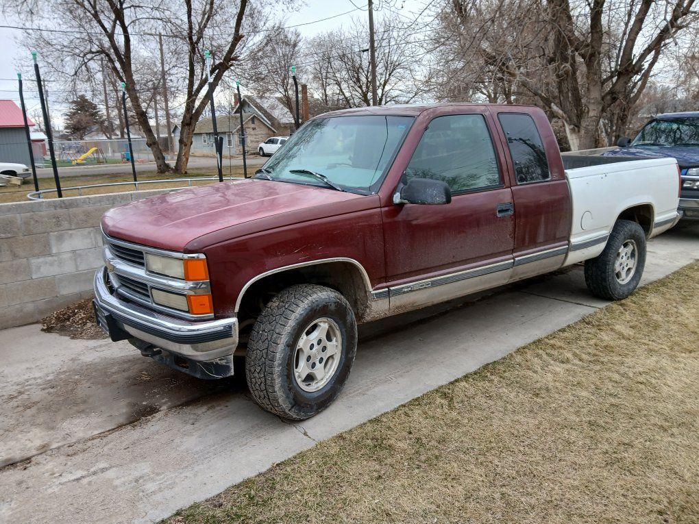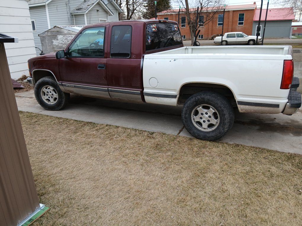 Burgundy maroon red has pretty munch all new parts replaced water pump little over a year ago power steering pump and lines a year ago roof top or top of pickup professionally painted a couple months ago put New starter in around three years new front new alternator and battery replced three four years ago the lowest I'll take 2.300 cash
