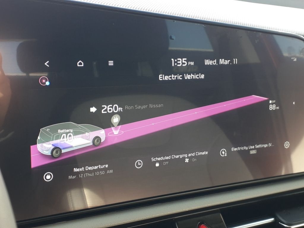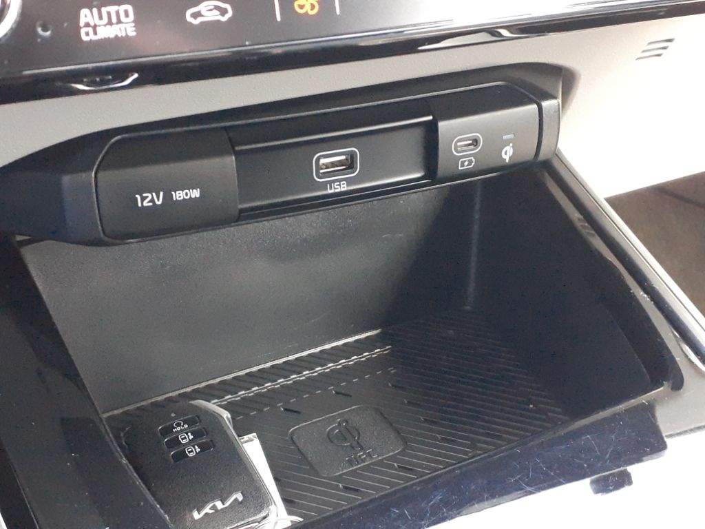Wave Preserve Package: Heated Rear Seats; Heat Pump,Carpet Floor Mats,Two-Level Cargo Tray,Two-Level Luggage Board,Cargo Net,Apple CarPlay & Android Auto smart device mirroring,Remote Smart Park Assist - Full version (RSPA) remote control parking,Highway Driving Assist (HDA 2) hands-on cruise control with lane change,Forward Collison-Avoidance Assist (FCA-JT: Cyc/Ped/Junction Turning) pedestrian impact prevention,Navigation-based Smart Cruise Control - Curve (NSCC-C) GPS linked cruise control,Rear mounted camera,Lane Keep Assist System (LKAS),Blind-Spot Collision-Avoidance Assist-Rear (BCA-R) active blind spot system,Rear Cross-Traffic Collision Avoidance (RCCA),Smart Cruise Control with Stop & Go (SCC w/S&G),Brake assist system,Kia Connect (includes 1 year free trial) selective service internet access,Cruise control with steering wheel mounted controls,Power liftgate rear cargo door,Ventilated driver and front passenger seats,Integrated navigation system with voice activation,Heated steering wheel,Heated driver and front passenger seats,Heated rear seats,Leatherette front seat upholstery,Primary monitor touchscreen,First-row sliding and tilting glass sunroof with express open/close activation sunshade,Driver seat power reclining, lumbar support, cushion tilt, fore/aft control and height adjustable control,Front wireless smart device charging,(FCA-JT) Forward Collison-Avoidance Assist - Cyc/Ped/Junction Turning) forward collision mitigation with left turn assist,Driver Attention Warning (DAW),Intelligent Speed Limit Assist (ISLA) traffic sign recognition with speed limiter feature,Digital Key 2.0 keyfob and smart device-as-key,Smart Key with hands-free access and push button start,Front windshield solar coating,SAE CCS DC fast charge connector,Bidirectional charging capability,Automatic brake hold,Kia Connect (includes 1 year free trial) vehicle tracker with vehicle slowdown,Bluetooth wireless audio streaming,Kia Connect (includes 1 year free trial) remote-activated interior climate preconditioning,Gage cluster display size: 10.25,Safe Exit Warning (SEW) external exit warning system,Dual-zone front climate control,Heat pump,Full gage cluster screen,High Beam Assist (HBA) auto high-beam headlights,350.000 kW,43.000 minutes,Immobilizer,Harman/kardon speakers,Kia Connect (includes 1 year free trial) real-time traffic,Kia Connect (includes 1 year free trial) vehicle integrated emergency SOS system,Bluetooth handsfree wireless device connectivity,One-pedal regenerative brakes