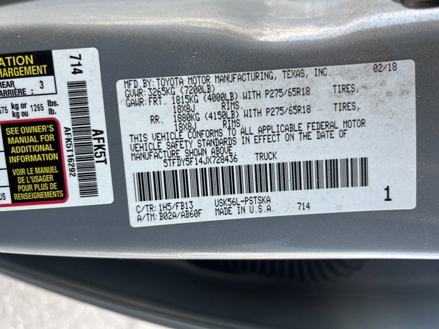 Cement 2018 Toyota Tundra SR5 4WD 6-Speed Automatic Electronic with Overdrive 5.7L 8-Cylinder SMPI DOHC 4WD, Black w/Leather Seat Trim (LE), ABS brakes, Active Cruise Control, Electronic Stability Control, Heated door mirrors, Illuminated entry, Low tire pressure warning, Remote keyless entry, Traction control.Recent Arrival!Awards:* 2018 KBB.com 10 Most Awarded Brands * 2018 KBB.com Best Resale Value AwardsSALE********SALEPRICE REDUCED*****SALESALE*****