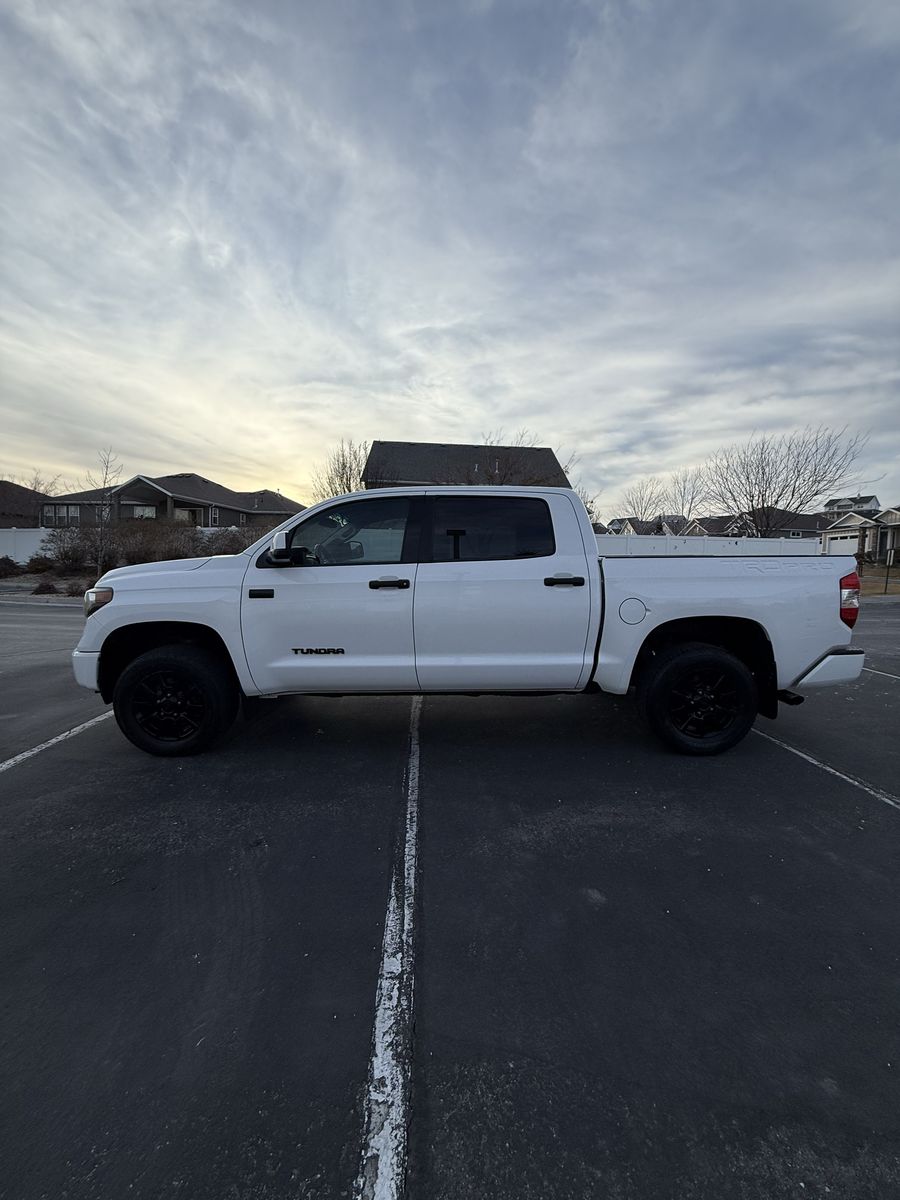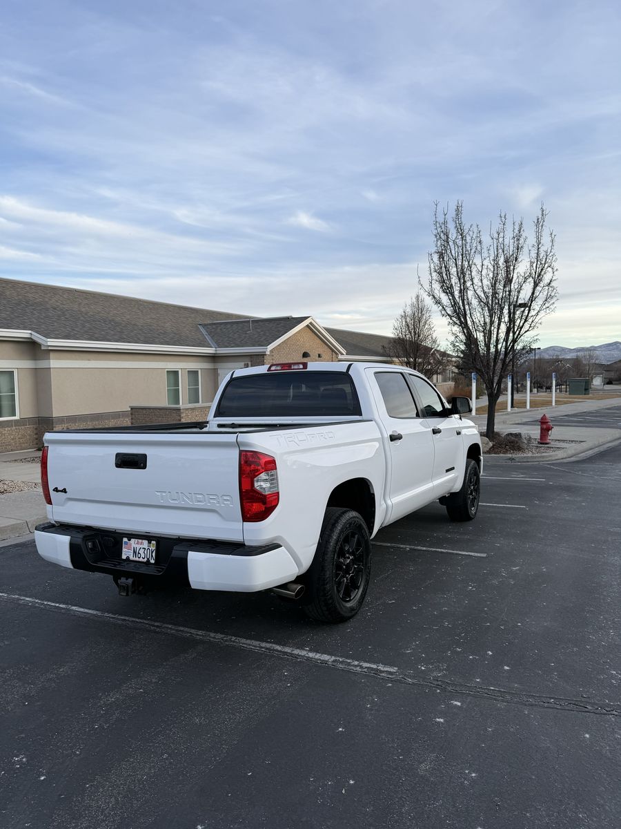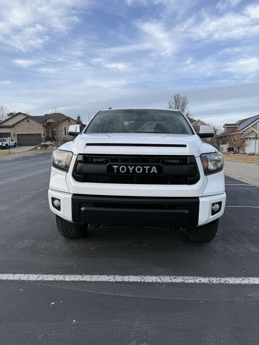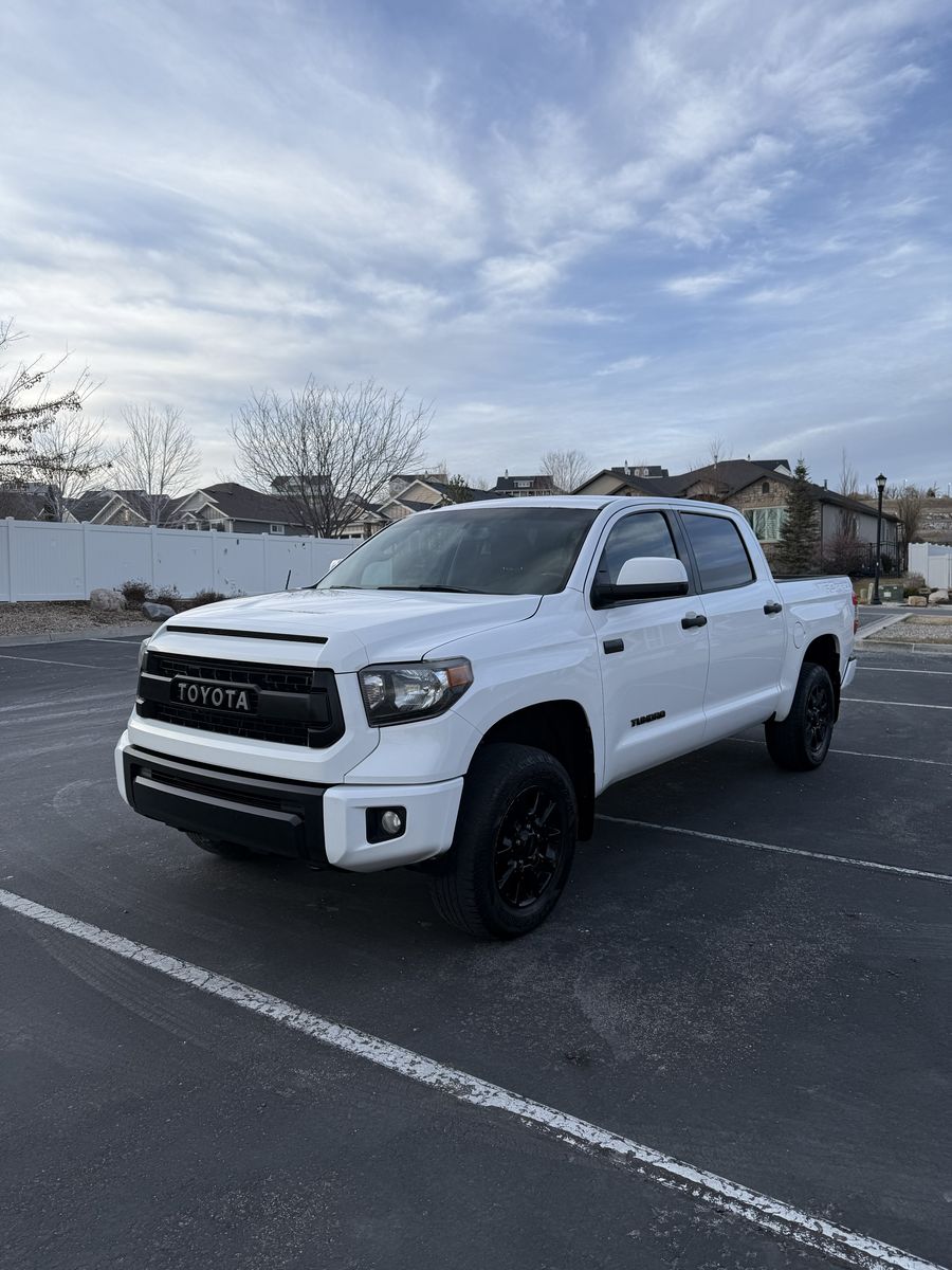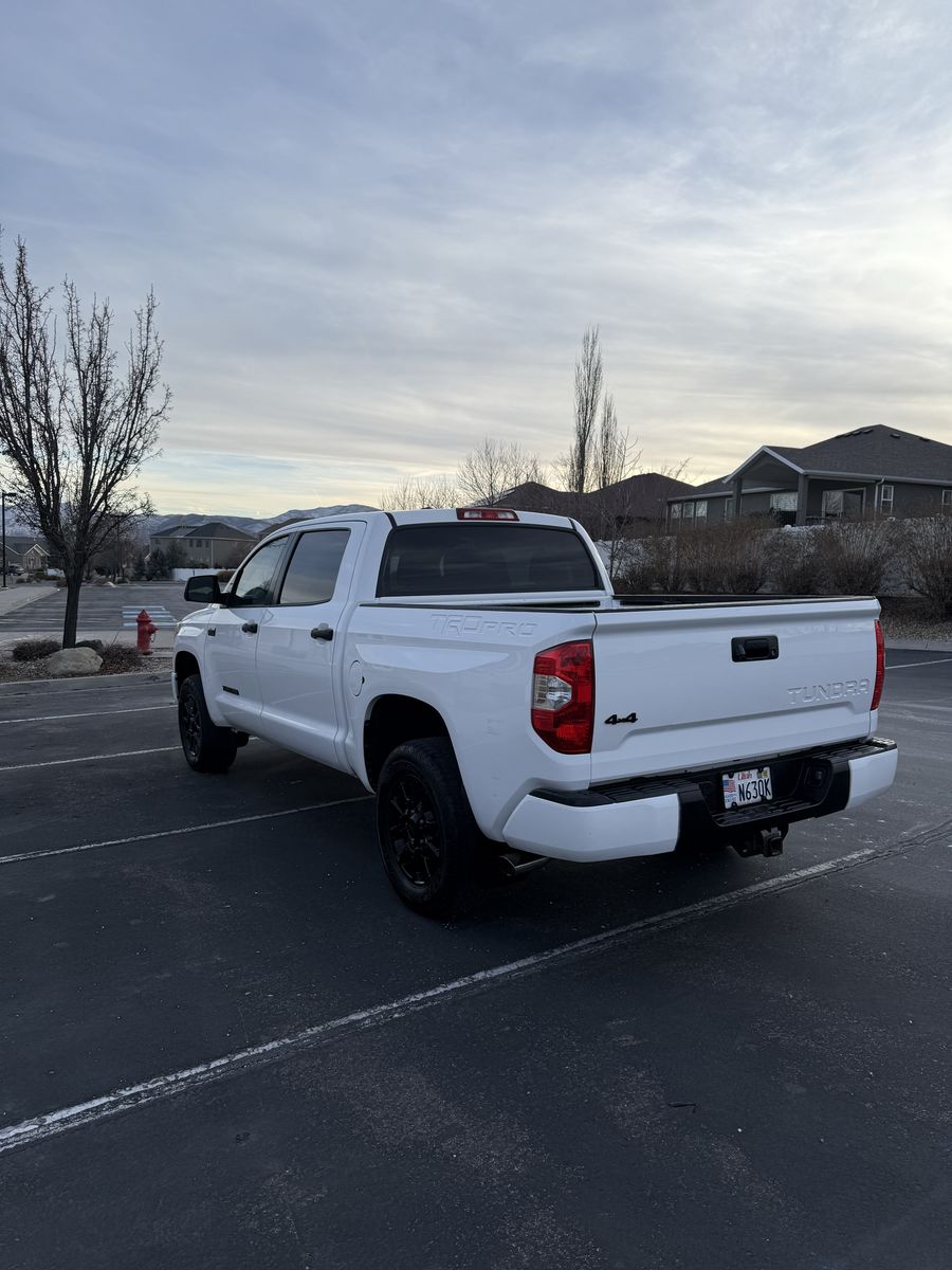 Selling my 2015 Toyota Tundra TRD Pro CrewMax in white. This is the rare and highly desirable TRD Pro (Red Pro Package) with upgraded suspension, TRD-tuned shocks, factory rock skid plate underneath, and leveling kit from the Pro package.