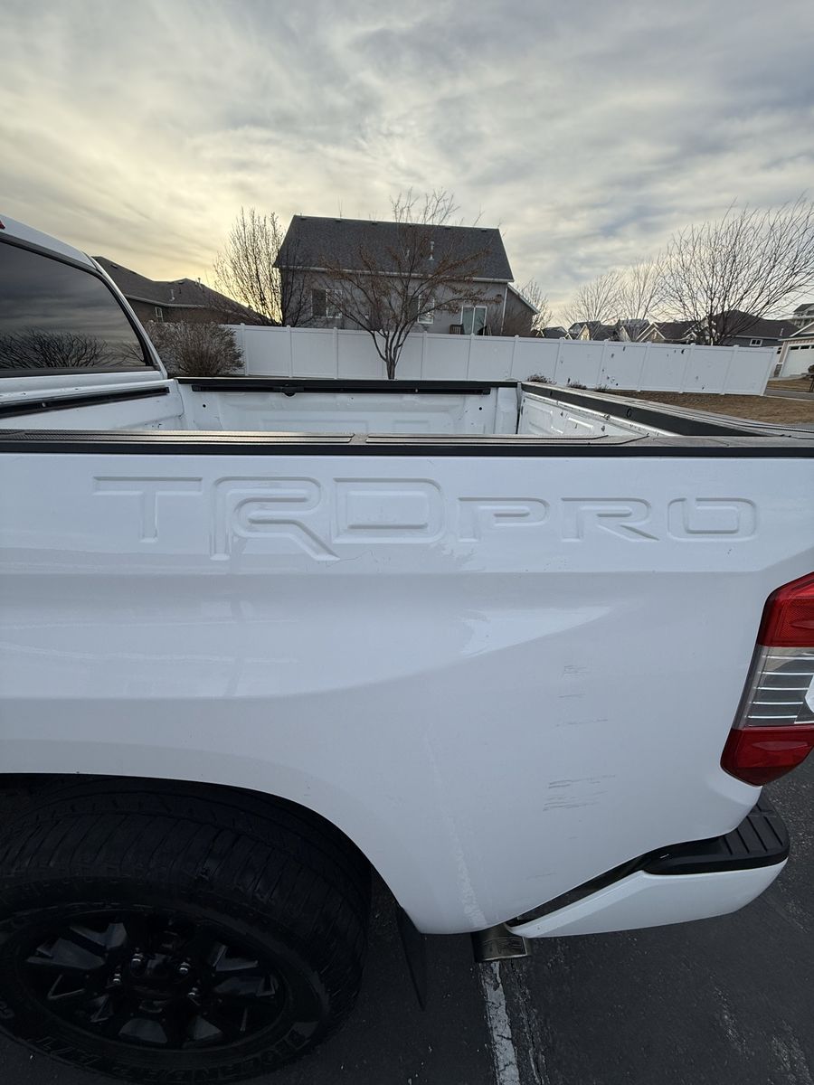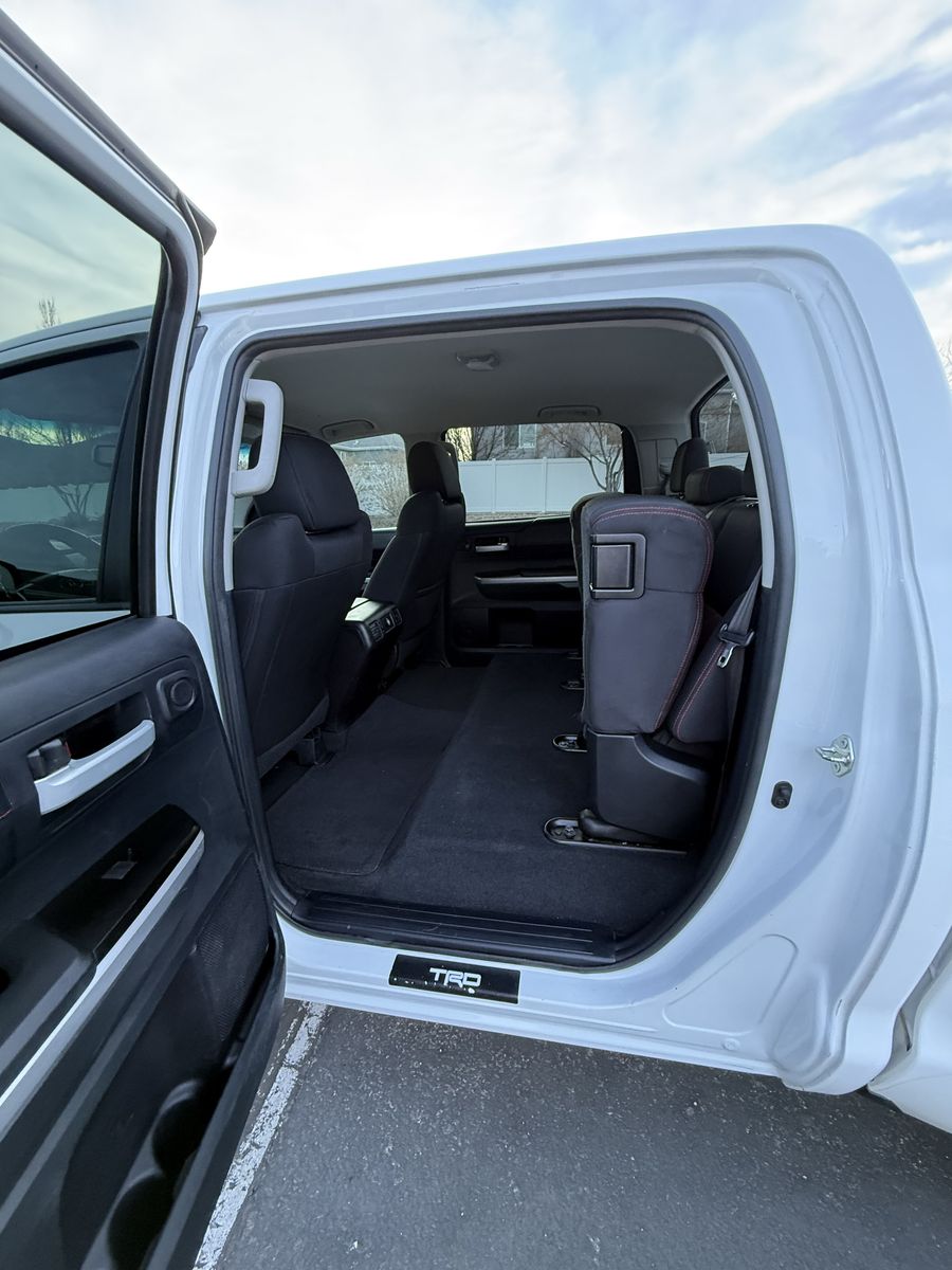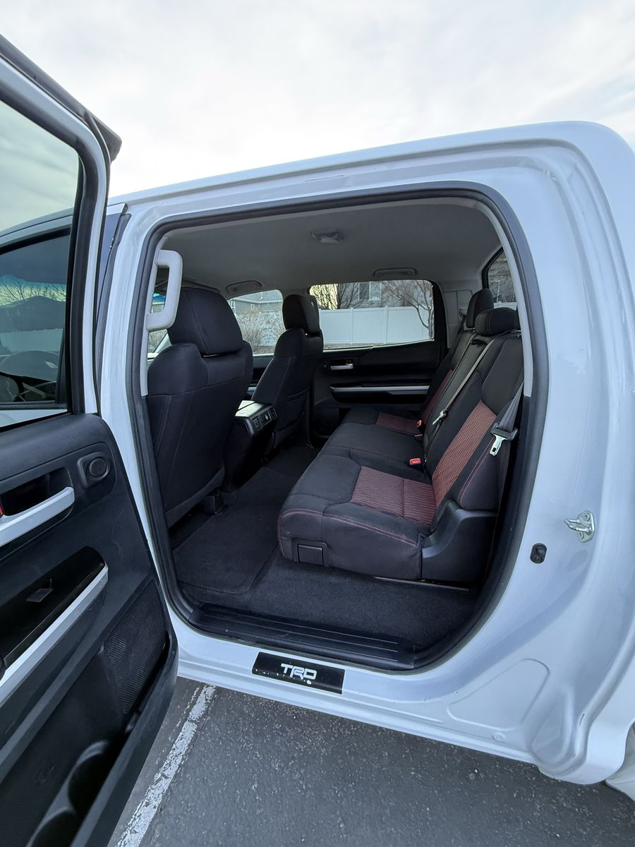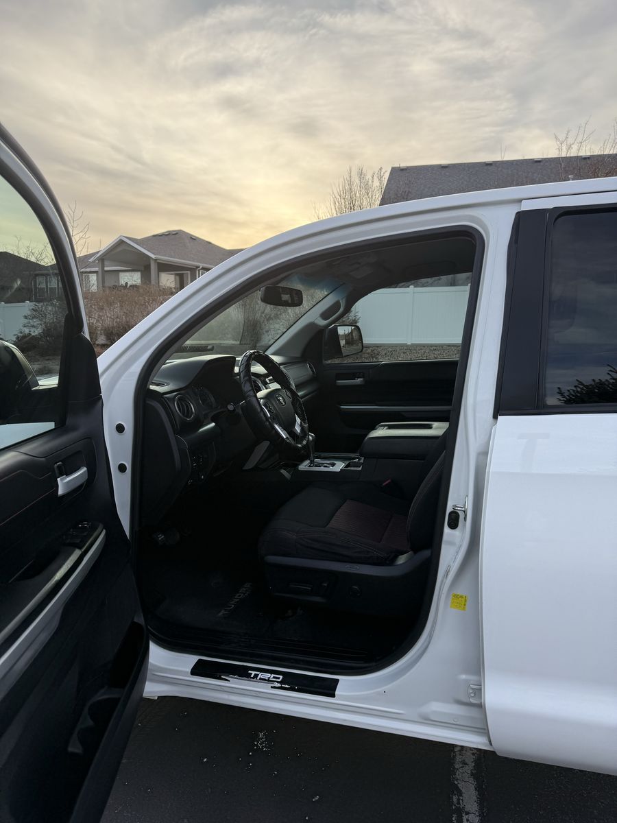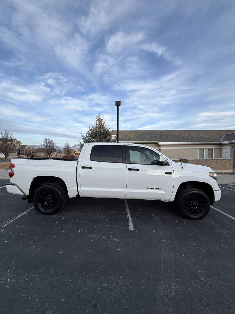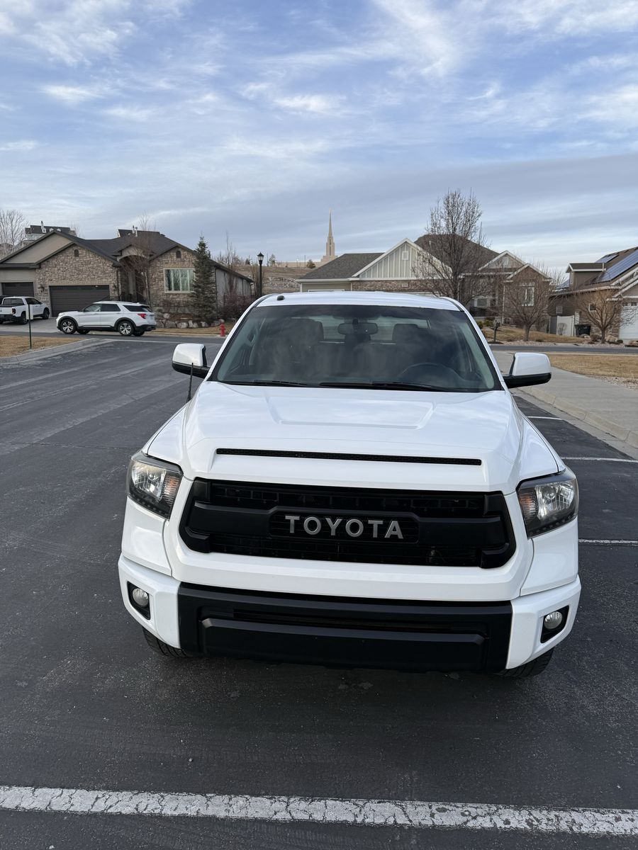 Selling my 2015 Toyota Tundra TRD Pro CrewMax in white. This is the rare and highly desirable TRD Pro (Red Pro Package) with upgraded suspension, TRD-tuned shocks, factory rock skid plate underneath, and leveling kit from the Pro package.