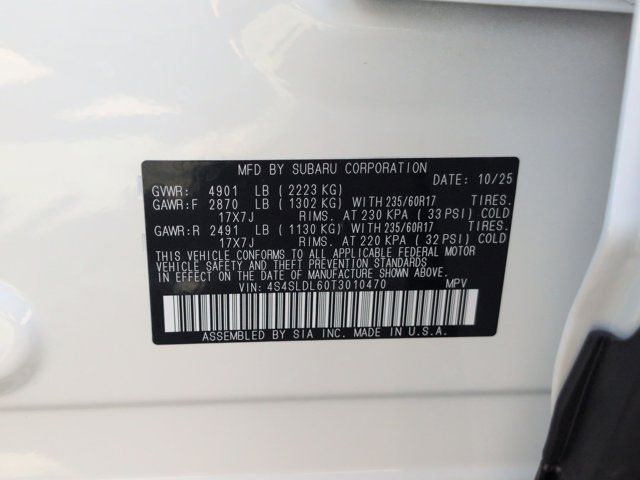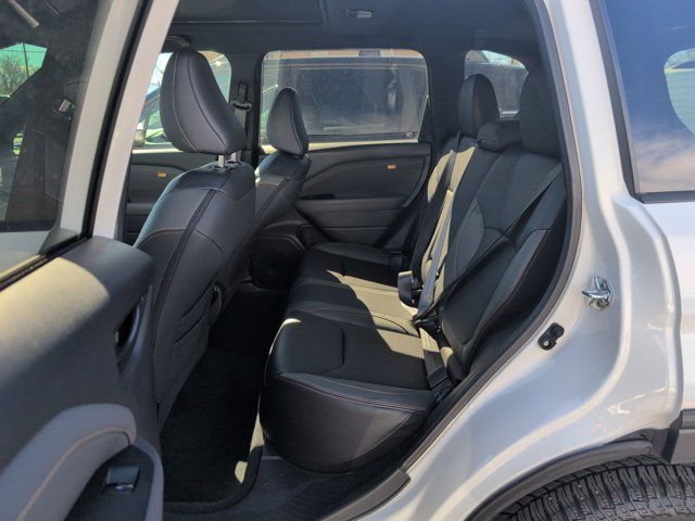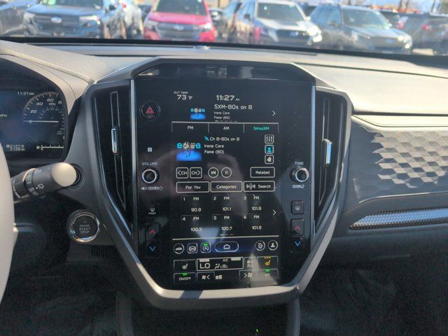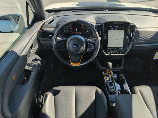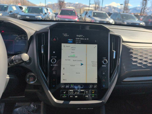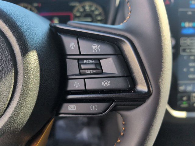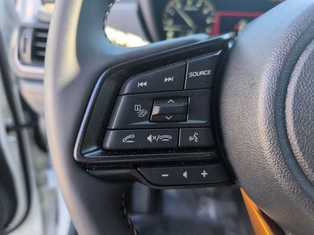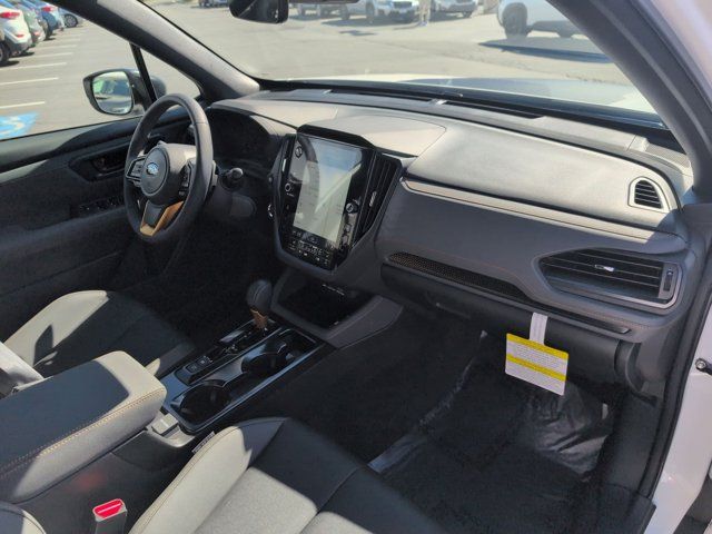 HARMAN/KARDON SPEAKER SYSTEM & POWER REAR GATE -inc: Power Rear Gate automatic close and height memory hand pressure sensing automatic close and illuminated close and lock switch Radio: Subaru 11.6 Multimedia Navigation System valet mode integrated center information display AM/FM stereo HD Radio multitouch gesture high resolution display screen voice activated controls voice activated navigation Bluetooth audio streaming and hands-free phone connectivity w/SMS text messaging (refer to Subaru.com for cellphone compatibility) TomTom navigation software w/what3words iPod control capability smartphone integration: Android Auto and Apple CarPlay w/full screen view and wireless connection USB and Over The Air (OTA) audio system update USB and Map Over The Air (MOTA) TomTom navigation system update s) steering wheel controls harman/Kardon speaker system w/11 speakers and 576 watt equivalent maximum output amplifier 3.5mm auxiliary input jack and ro,AUTO-DIMMING MIRROR W/COMPASS & HOMELINK -inc: Part number H501SAN000,SPLASH GUARDS -inc: Part number J101SSL300,CRYSTAL WHITE PEARL,GRAY TEXTURED STARTEX UPHOLSTERY -inc: silver and copper stitching and embossed Subaru Wilderness logo on head restraints,TRAILER HITCH - WILDERNESS -inc: Part number L101SSL001,AUTO-DIMMING EXTERIOR MIRROR W/APPROACH LIGHT -inc: Part number J201SFN001,All Wheel Drive,Power Steering,ABS,4-Wheel Disc Brakes,Brake Assist,Brake Actuated Limited Slip Differential,Aluminum Wheels,Tires - Front All-Terrain,Tires - Rear All-Terrain,Conventional Spare Tire,Sun/Moonroof,Generic Sun/Moonroof,Panoramic Roof,Heated Mirrors,Power Mirror(s),Integrated Turn Signal Mirrors,Rear Defrost,Privacy Glass,Intermittent Wipers,Variable Speed Intermittent Wipers,Rain Sensing Wipers,Rear Spoiler,Power Door Locks,Daytime Running Lights,Automatic Headlights,Headlights-Auto-Leveling,LED Headlights,Automatic Highbeams,Fog Lamps,AM/FM Stereo,Satellite Radio,MP3 Capability,Steering Wheel Audio Controls,Bluetooth Connection,Auxiliary Audio Input,HD Radio,Smart Device Integration,Requires Subscription,MP3 Capability,Bluetooth Connection,Power Driver Seat,Bucket Seats,Heated Front Seat(s),Driver Adjustable Lumbar,Pass-Through Rear Seat,Rear Bench Seat,Adjustable Steering Wheel,Trip Computer,Power Windows,WiFi Hotspot,Keyless Entry,Power Door Locks,Keyless Entry,Power Door Locks,Keyless Start,Cruise Control,Adaptive Cruise Control,Climate Control,Multi-Zone A/C,A/C,Premium Synthetic Seats,Driver Vanity Mirror,Passenger Vanity Mirror,Driver Illuminated Vanity Mirror,Passenger Illuminated Visor Mirror,Floor Mats,Cargo Shade,Keyless Start,Smart Device Integration,Power Door Locks,Power Windows,Trip Computer,Security System,Immobilizer,Cruise Control Steering Assist,Traction Control,Stability Control,Traction Control,Front Side Air Bag,Front Collision Mitigation,Driver Monitoring,Telematics,Requires Subscription,Blind Spot Monitor,Lane Departure Warning,Lane Keeping Assist,Lane Departure Warning,Evasion Assist,Cross-Traffic Alert,Rear Collision Mitigation,Tire Pressure Monitor,Driver Air Bag,Passenger Air Bag,Front Head Air Bag,Rear Head Air Bag,Passenger Air Bag Sensor,Knee Air Bag,Child Safety Locks,Back-Up Camera