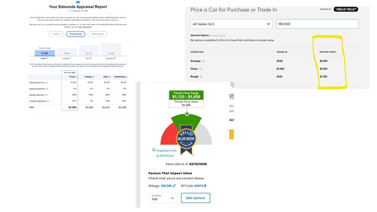 Viewings and transaction discussions will ~~only~~ take place in person. The last photo of this listing shows the Edmunds Appraisal Report which tells us it’s worth $1,750. However, we will entertain all reasonable offers from serious buyers.