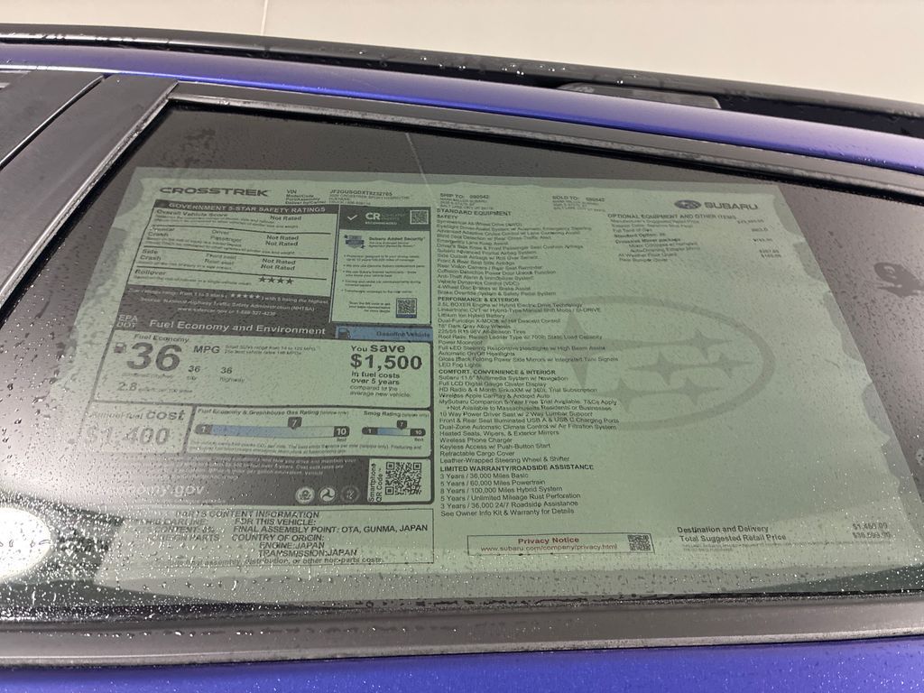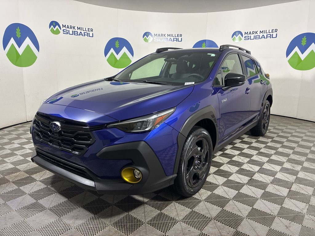 Mark Miller Subaru is the leading Subaru dealership in Utah. Our large inventory and dedicated sales teams has made us the go to destination for the Subaru brand in Utah. Our Promise Price is the best way to buy a Subaru in Utah. Come experience the Mark Miller Subaru difference today! ** This 2026 Sapphire Blue Pearl Subaru Crosstrek Hybrid Sport AWD is well equipped and includes these features and benefits: 2.5L 4-Cylinder DOHC 16V, 4-Wheel Disc Brakes, 6 Speakers, ABS brakes, Air Conditioning, Alloy wheels, AM/FM radio: SiriusXM, Anti-whiplash front head restraints, Auto High-beam Headlights, Automatic temperature control, Brake assist, Bumpers: body-color, Compass, Driver door bin, Driver vanity mirror, Dual front impact airbags, Dual front side impact airbags, Electronic Stability Control, Emergency communication system: MySubaru Companion (5-years free), Exterior Parking Camera Rear, Four wheel independent suspension, Front anti-roll bar, Front Bucket Seats, Front Center Armrest, Front dual zone A/C, Front fog lights, Front reading lights, Fully automatic headlights, Heated door mirrors, Heated Front Bucket Seats, Heated front seats, Illuminated entry, Knee airbag, Leather Shift Knob, Leather steering wheel, Low tire pressure warning, Navigation System, Occupant sensing airbag, Outside temperature display, Overhead airbag, Overhead console, Panic alarm, Passenger door bin, Passenger vanity mirror, Power door mirrors, Power driver seat, Power moonroof, Power steering, Power windows, Radio data system, Radio: Subaru 11.6'' Multimedia Navigation System, Rear anti-roll bar, Rear seat center armrest, Rear side impact airbag, Rear window defroster, Rear window wiper, Remote keyless entry, Security system, Speed control, Speed-sensing steering, Split folding rear seat, Spoiler, Sport Cloth Upholstery, Steering wheel mounted audio controls, Tachometer, Telescoping steering wheel