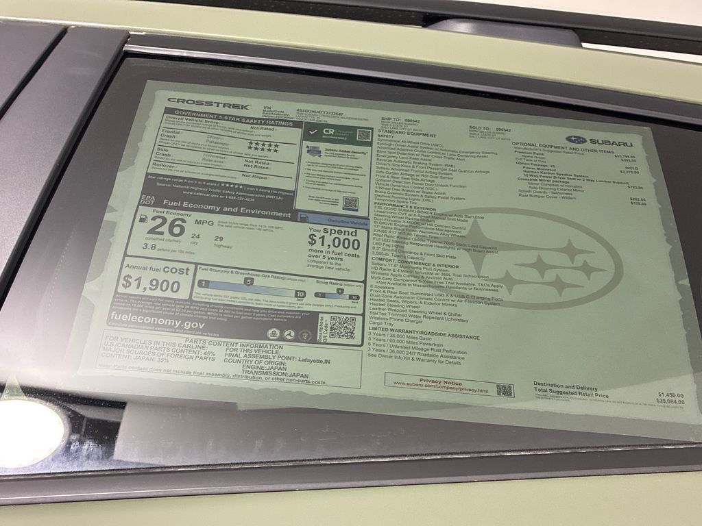 Mark Miller Subaru is the leading Subaru dealership in Utah. Our large inventory and dedicated sales teams has made us the go to destination for the Subaru brand in Utah. Our Promise Price is the best way to buy a Subaru in Utah. Come experience the Mark Miller Subaru difference today! ** This 2026 Alpine Green Subaru Crosstrek Wilderness AWD is well equipped and includes these features and benefits: 4-Wheel Disc Brakes, 6 Speakers, ABS brakes, Air Conditioning, Alloy wheels, AM/FM radio: SiriusXM with 360L, Anti-whiplash front head restraints, Auto High-beam Headlights, Automatic temperature control, Brake assist, Bumpers: body-color, Driver door bin, Driver vanity mirror, Dual front impact airbags, Dual front side impact airbags, Electronic Stability Control, Emergency communication system: MySubaru Companion (5-years free), Exterior Parking Camera Rear, Four wheel independent suspension, Front anti-roll bar, Front Bucket Seats, Front Center Armrest, Front dual zone A/C, Front fog lights, Front reading lights, Fully automatic headlights, Heated door mirrors, Heated Front Bucket Seats, Heated front seats, Heated steering wheel, Illuminated entry, Knee airbag, Leather Shift Knob, Leather steering wheel, Low tire pressure warning, Occupant sensing airbag, Outside temperature display, Overhead airbag, Overhead console, Panic alarm, Passenger door bin, Passenger vanity mirror, Power door mirrors, Power steering, Power windows, Radio data system, Radio: Subaru 11.6'' Multimedia Plus System, Rear anti-roll bar, Rear seat center armrest, Rear side impact airbag, Rear window defroster, Rear window wiper, Remote keyless entry, Security system, Speed control, Speed-sensing steering, Split folding rear seat, Spoiler, Steering wheel mounted audio controls, Tachometer, Telescoping steering wheel, Tilt steering wheel, Traction control, Trip computer, Turn signal indicator mirrors, Variably intermittent wipers, Wheels: 17''