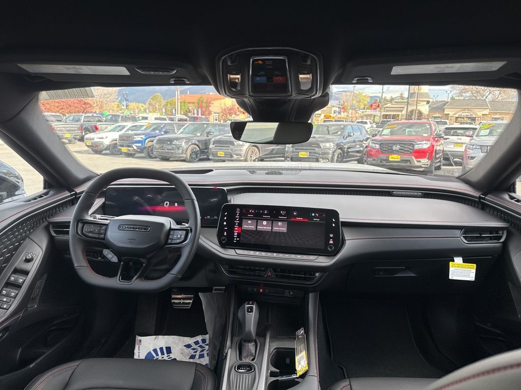 AWD, Black Artificial Leather, 12.3'' Touchscreen Display, 16'' Color Driver Display, 18 High Performance Alpine Speakers with Subwoofer, 18'' x 8.5'' Aluminum Wheels, 2-Way Manual Adjust Front Head Restraints, 20'' x 9'' Aluminum Wheels, 4-Way Manual Adjust Front Passenger Seat, 4-Wheel Disc Brakes, 4G LTE Wi-Fi Hot Spot, 6 Speakers, 800 Amp Maintenance Free Battery, 9 Speaker Alpine Audio with Subwoofer, ABS brakes, Active Noise Control System, Air Conditioning, Alexa Built-in, Alloy wheels, AM/FM radio: SiriusXM w/360L, Apple CarPlay/Android Auto, Attitude Adjustment Lighting, Auto-Dimming Rear-View Mirror, Automatic High-Beam Headlamp Control, Automatic temperature control, Black Color Multi-Function Mirrors, Black Seats, Blacktop Package, Brake assist, Bright Pedals, Bumpers: body-color, Cloth Sport Seats, Compass, Connected Travel and Traffic Services, Connectivity - US/Canada, Dark Exterior Badging, Delay-off headlights, Disassociated Touchscreen Display, Driver door bin, Driver vanity mirror, Dual front impact airbags, Dual front side impact airbags, Dual Rear Exhaust with Black Tips, Electronic Stability Control, Emergency communication system: Dodge Connect, Enhanced Security Alarm, Exterior Mirrors Logo Lamps, Exterior Mirrors with Memory, Four wheel independent suspension, Front anti-roll bar, Front Bucket Seats, Front Center Armrest, Front Cubby Bin with Light, Front dual zone A/C, Front License Plate Bracket, Front reading lights, Full Glass Roof, Fully automatic headlights, Glove Box Lamp, GPS Navigation, HD Radio, Heads-Up Display, Heated door mirrors, Heated Exterior Mirrors, Illuminated Door Pull Handles, Illuminated entry, Integrated Center Stack Radio, Integrated Voice Command with Bluetooth, Knee airbag, Leather Shift Knob, Leatherette Seats, LED Footwell Lighting, LED Map Pockets, Low Back Bucket Seats, Low tire pressure warning, Manufacturer's Statement of Origin, Map-in-Cluster Display, Occupant sensing airbag, Outside temperature display, Overhead airbag, Overhead console, Panic alarm, ParkSense Front and Rear Park Assist with Stop, ParkView Rear Back-Up Camera, Passenger door bin, Passenger vanity mirror, Performance Pages, Performance Shift Indicator, Power Adjust Mirrors, Power door mirrors, Power Hatch, Power steering, Power Tilt/Telescope Steering Column, Power windows, Power Windows Global Down w/Key Fob, Premium LED Low-High Reflective Headlamps, Quick Order Package 21A R/T Plus, Radio data system, Radio, Driver Seat, Mirrors and Steering Column Memory, Radio: Uconnect 5 Navigation with 12.3'' Display, Radio: Uconnect 5 with 12.3'' Display, Rain Sensitive Windshield Wipers, Rear anti-roll bar, Rear Door Puddle Lamps, Rear Hatch Cargo Cover, Rear reading lights, Rear seat center armrest, Rear window defroster, Remote keyless entry, Security system, Side Distance Warning, Speed control, Split folding rear seat, Sport steering wheel, Sport Suspension, Steering Wheel Mount Paddle Shifters, Steering wheel mounted audio controls, Surround View Camera System, Tachometer, Telescoping steering wheel, Tilt steering wheel, Traction control, Traffic Sign Information, Trip computer, Universal Garage Door Opener, Variably intermittent wipers, Wheels: 20'' x 9'' Black Aluminum, Windshield Wiper De-Icer, Wireless Apple CarPlay, Wireless Charging Pad, Wireless Google Android Auto, AWD, Black Artificial Leather.