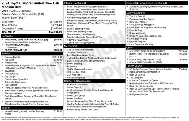 2024 Toyota Tundra Limited Silver 4WD 10-Speed Automatic 3.4L V6