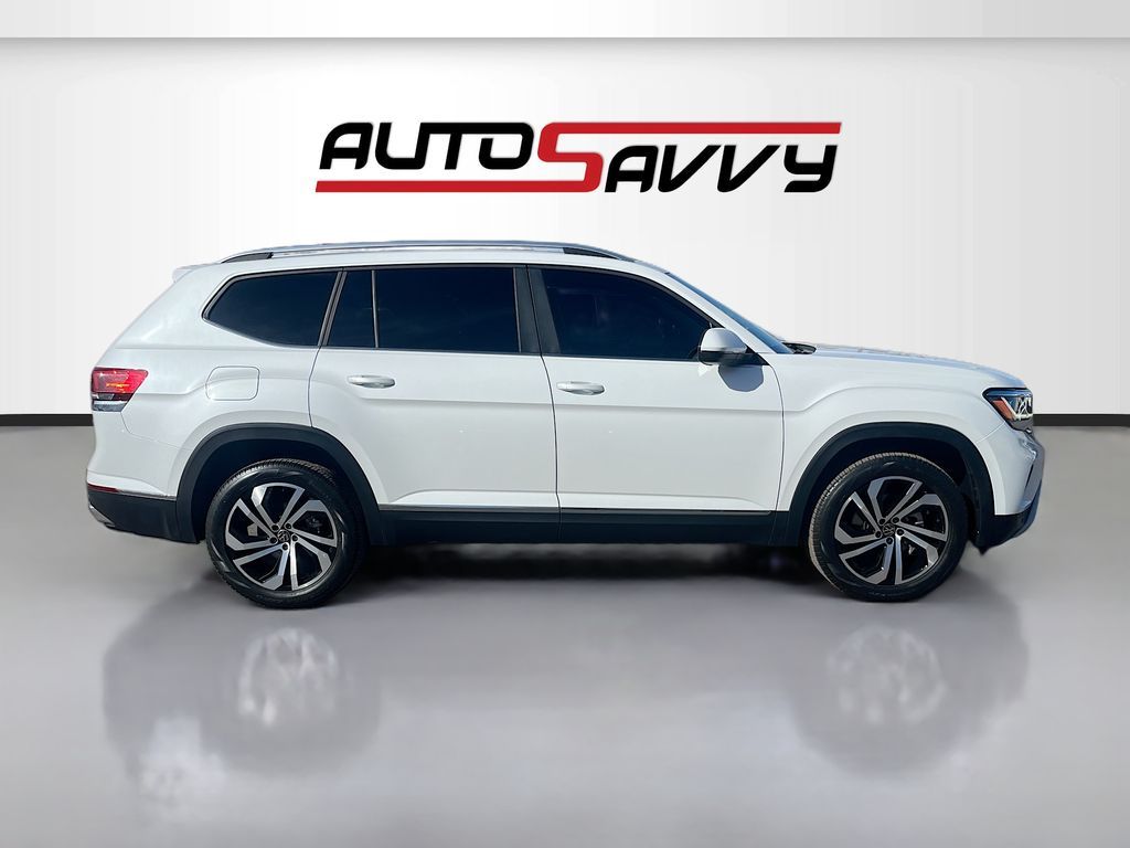 Explore the 2023 Volkswagen Atlas 3.6L V6 SEL at AutoSavvy Las Vegas, a perfect blend of luxury and performance. This Sport Utility vehicle, gleaming in Opal White, is powered by a potent 3.6L V-6 engine with 276 horsepower, coupled with an all-wheel-drive system for superior handling. With only 24,949 miles, this Atlas offers low-mileage reliability. The interior boasts V-Tex leatherette upholstery in Titan Black, a panoramic sunroof, and advanced tech features like a navigation system and digital cockpit. Stay seamlessly connected with Apple CarPlay and Android Auto, while enjoying the comfort of heated seats and a heated steering wheel. Safety is paramount with Adaptive Cruise Control, Blind Spot Monitor, and Automatic Emergency Braking. The current status of the title is branded, reflecting AutoSavvy's commitment to transparency and quality assurance. This vehicle is Savvy Certified, offering peace of mind with our comprehensive inspection process and a 4-month/4,500 Mile Warranty. Every vehicle in our inventory undergoes meticulous checks to meet our high standards, ensuring you drive away with confidence. Visit AutoSavvy Las Vegas today to experience the exceptional value and quality of the 2023 Volkswagen Atlas 3.6L V6 SEL. Discover the AutoSavvy difference and drive home in a vehicle that seamlessly combines state-of-the-art technology, luxurious comfort, and reliable performance.